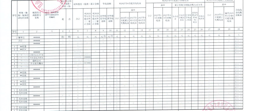 農(nóng)村集體資產(chǎn)投資(借貸)收益清繳進(jìn)度明細(xì)表等202506