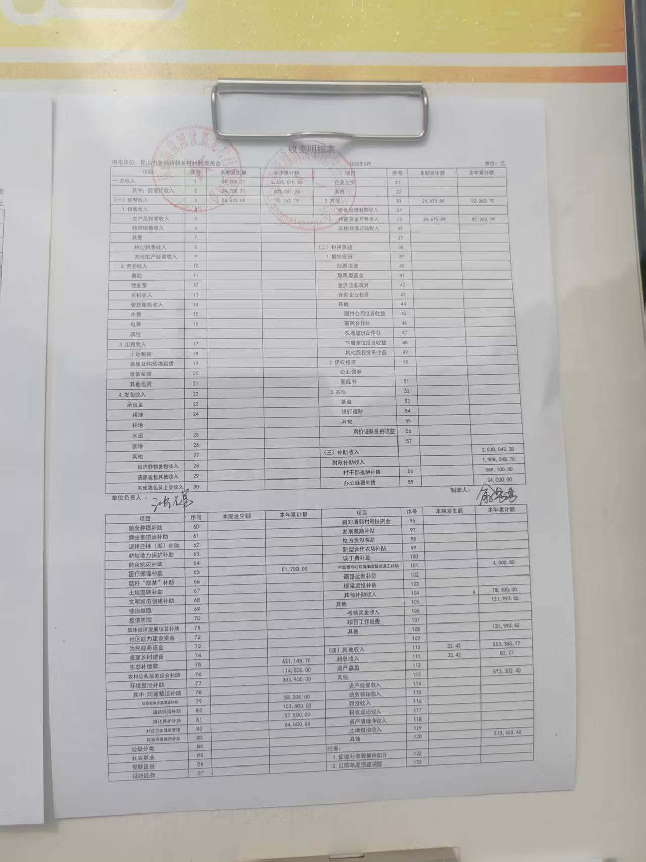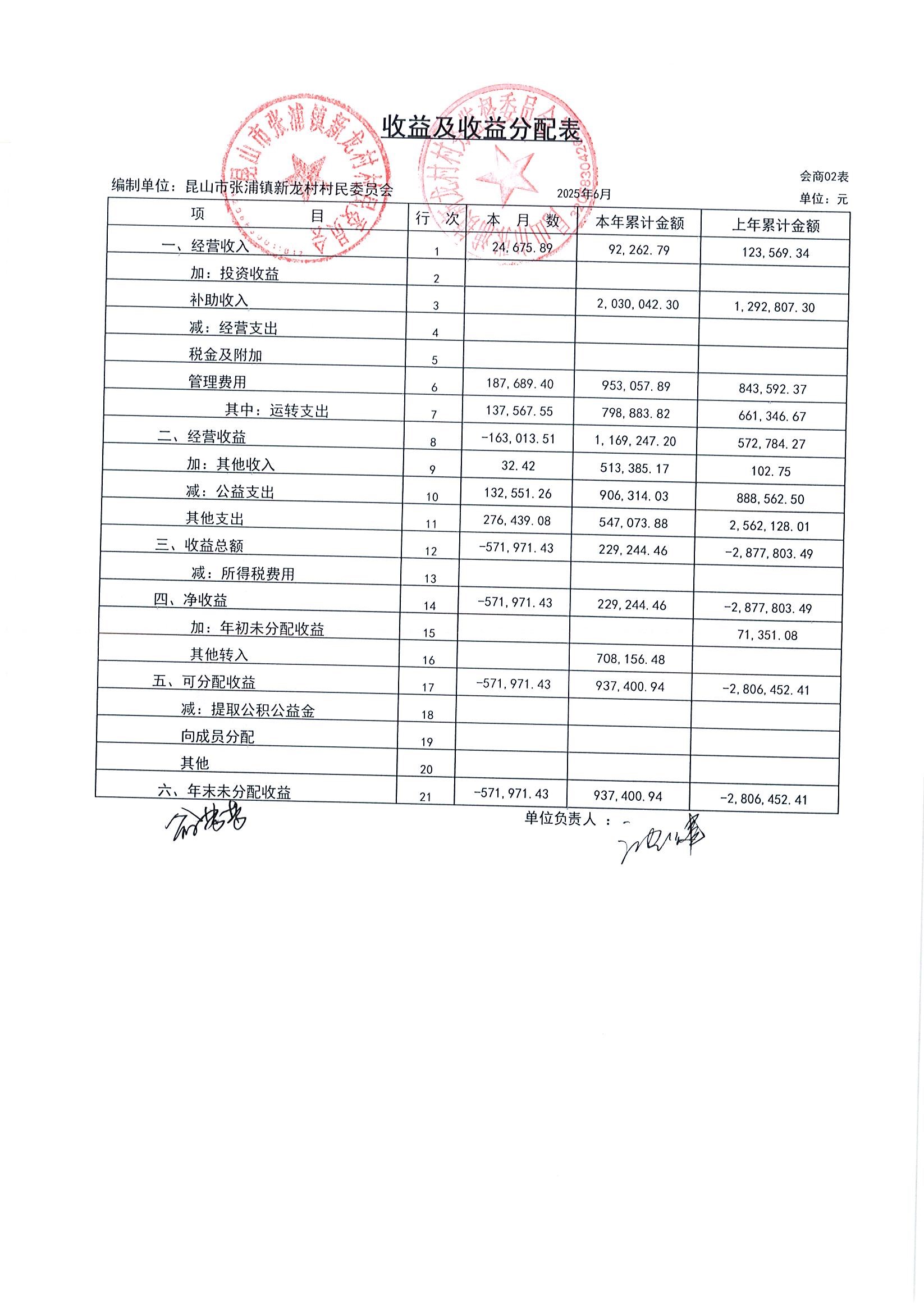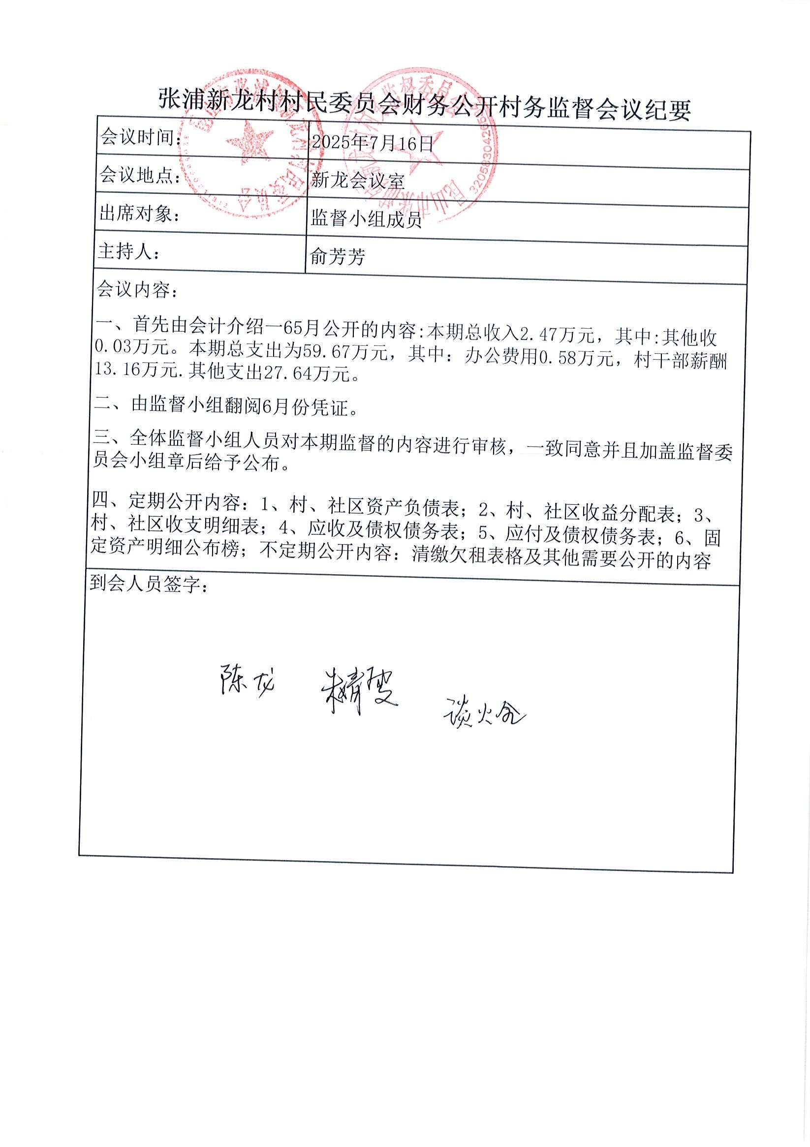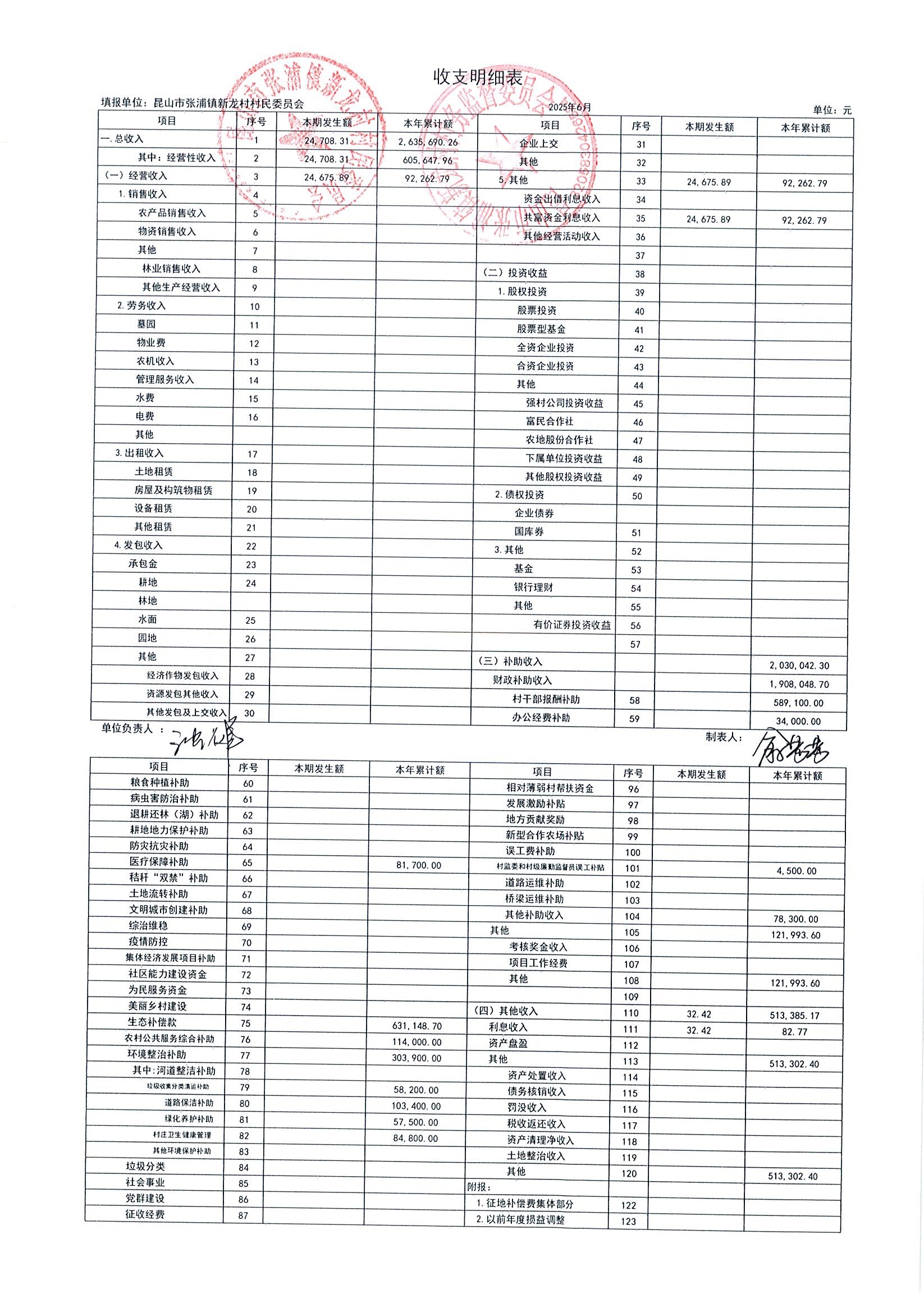 2025年張浦鎮(zhèn)新龍村村民委員會6月財務公開