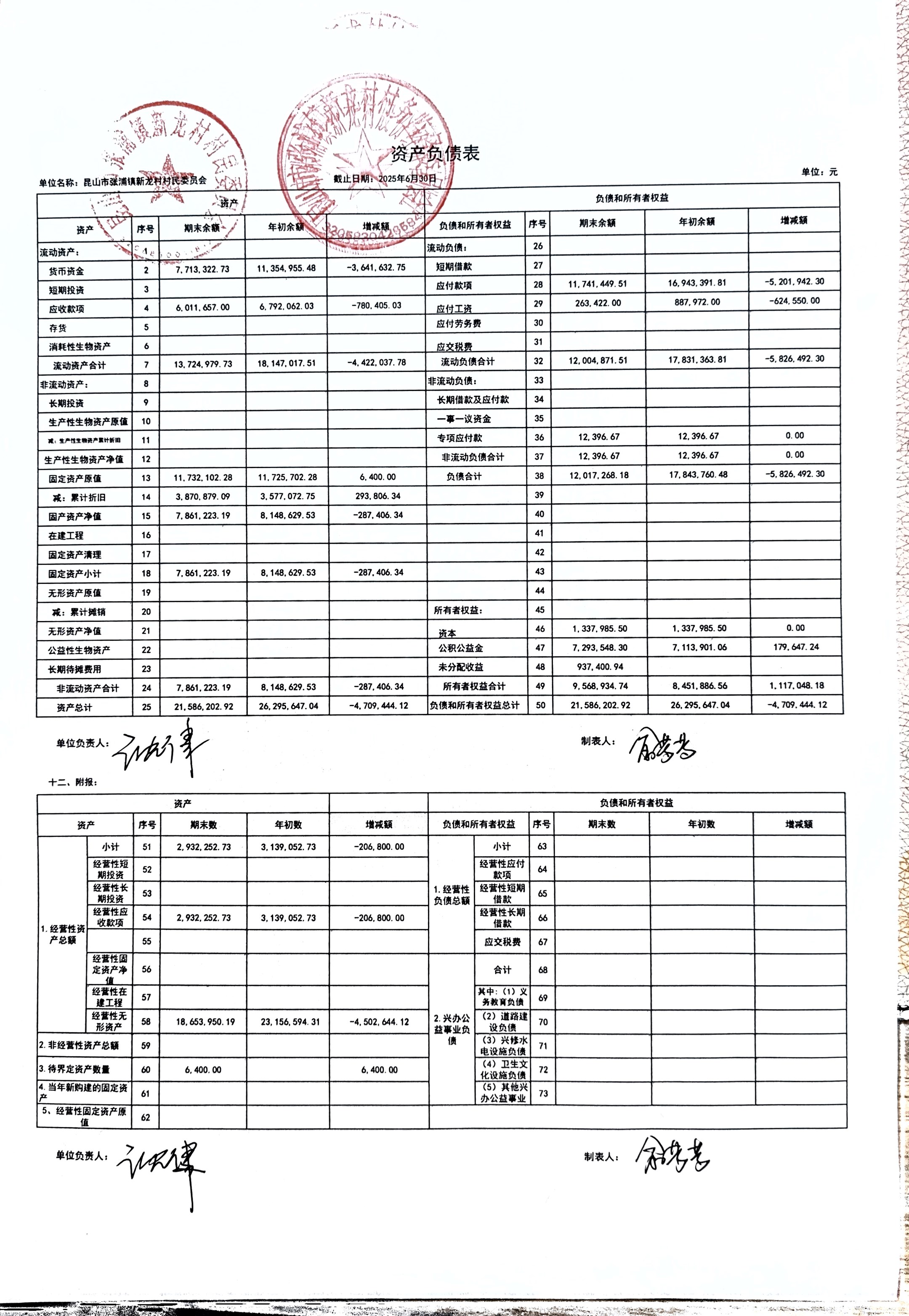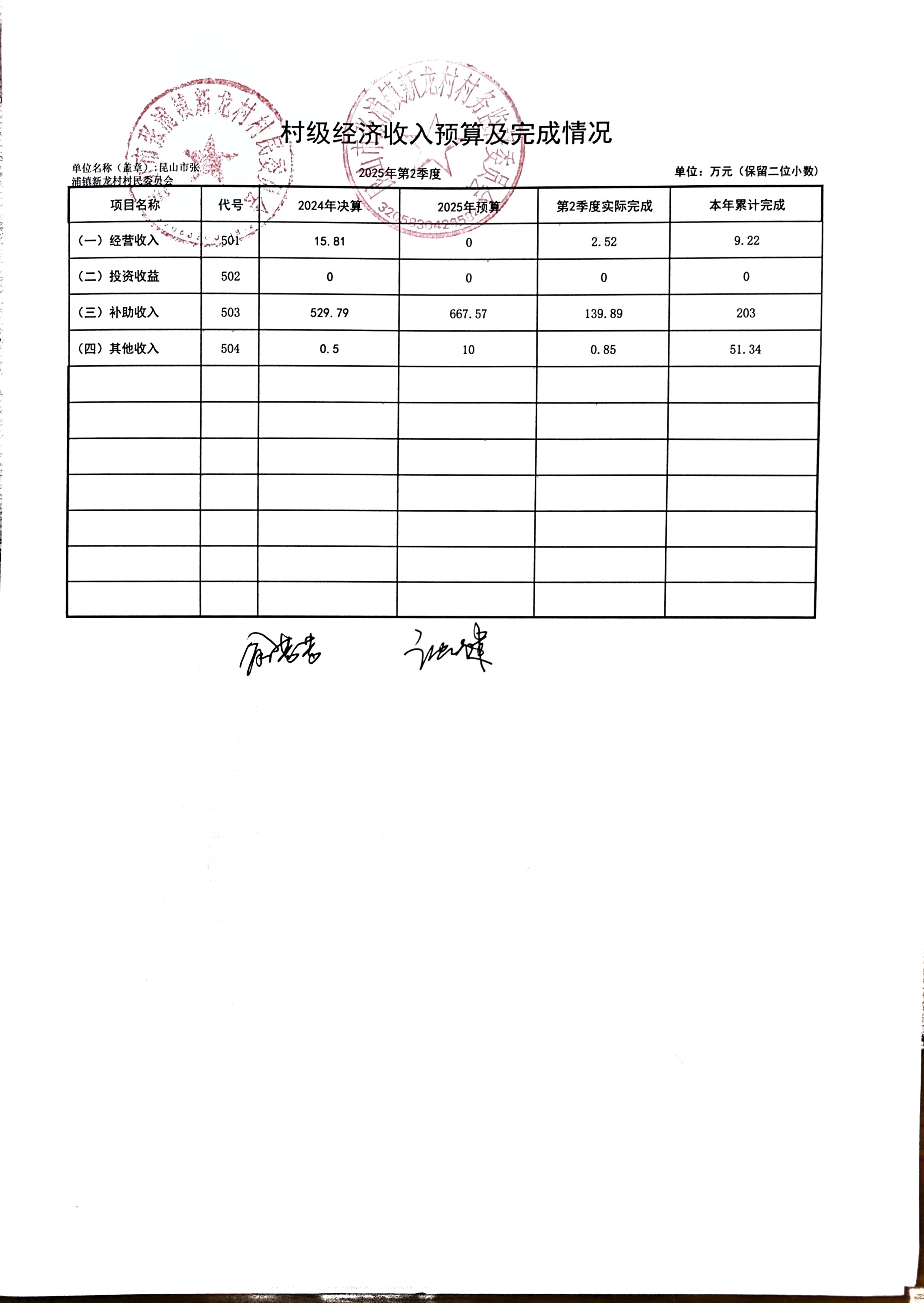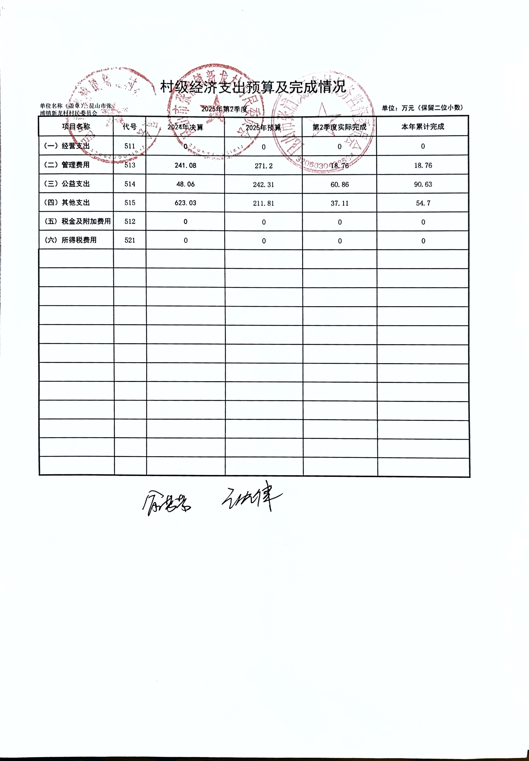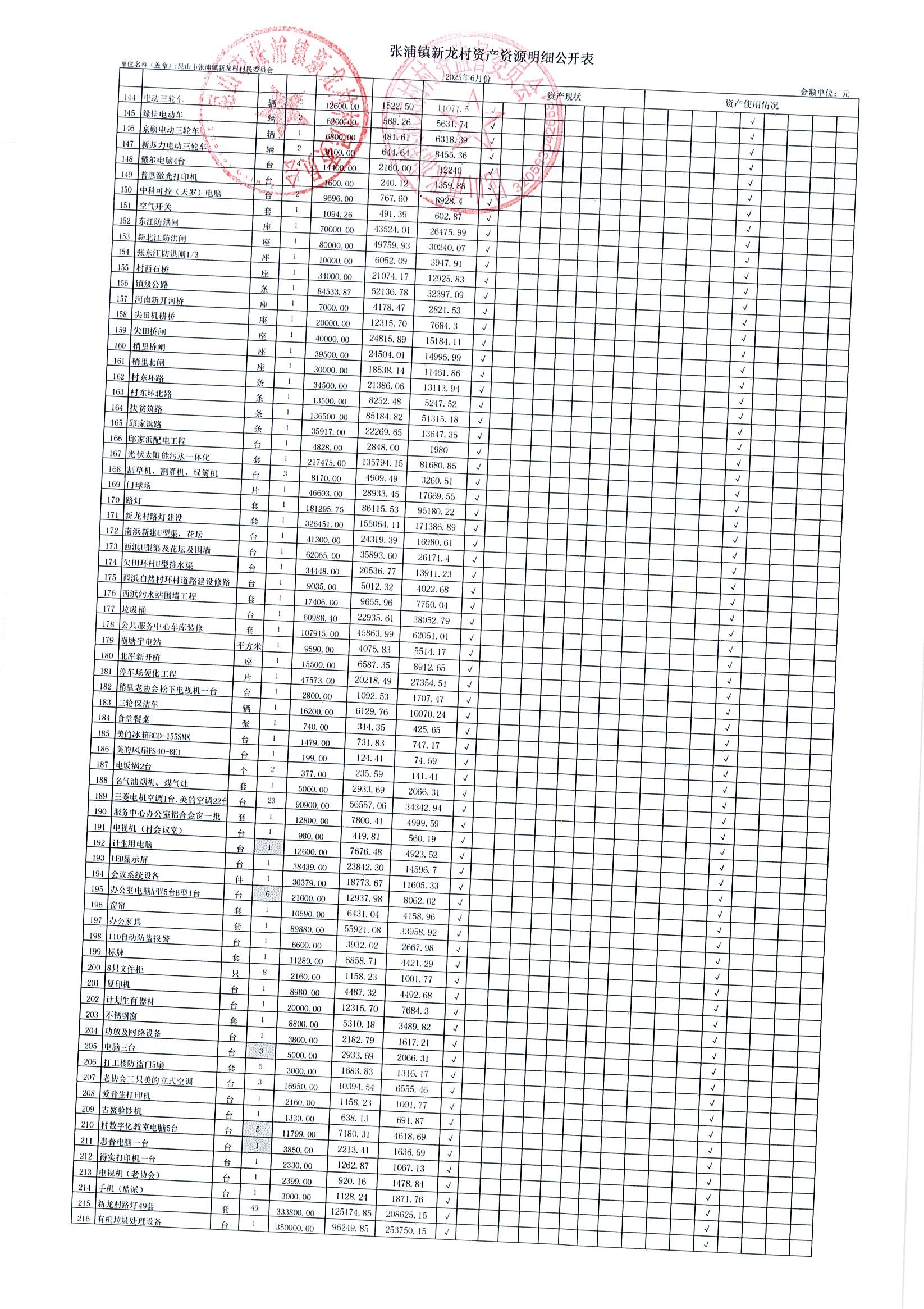 2025年張浦鎮(zhèn)新龍村村民委員會6月財務公開