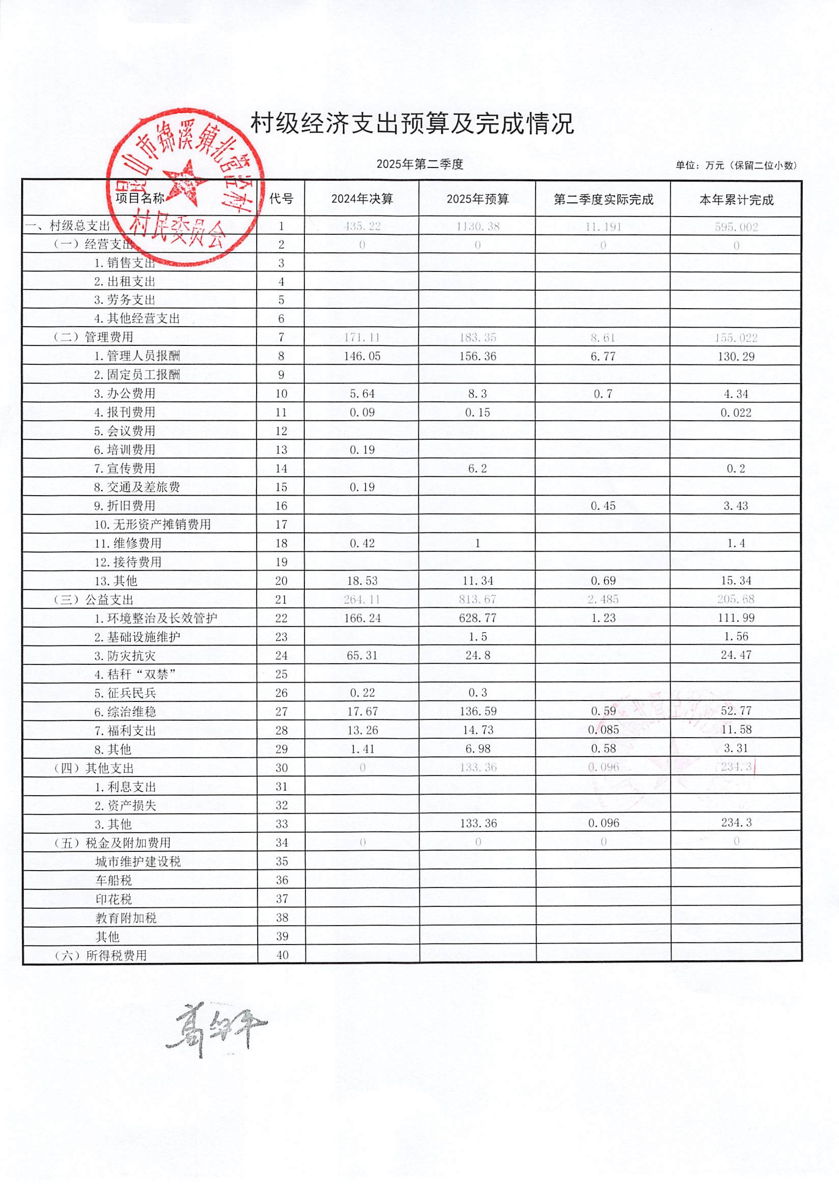 2025年6月份村級經(jīng)濟(jì)支出預(yù)算及完成情況(村委會)