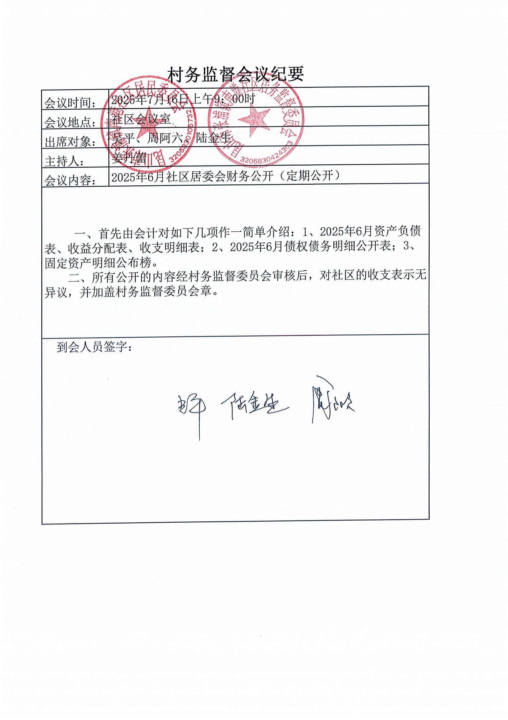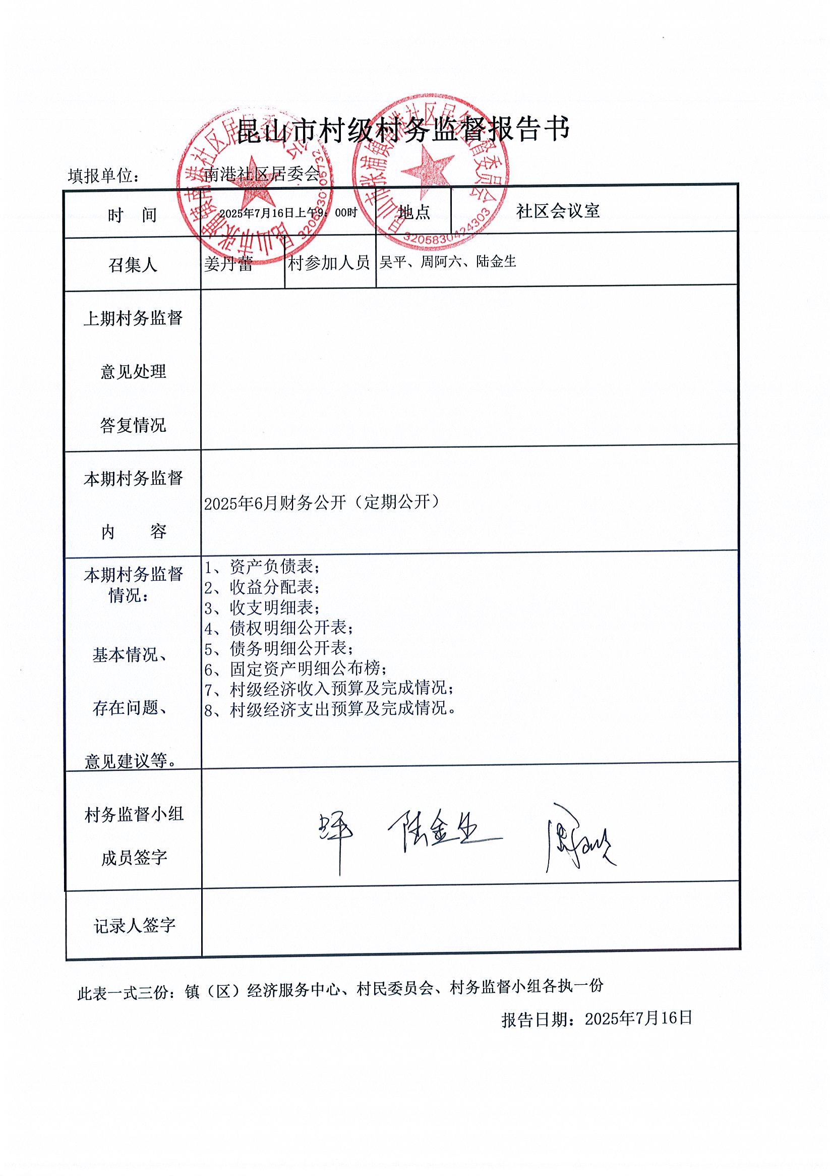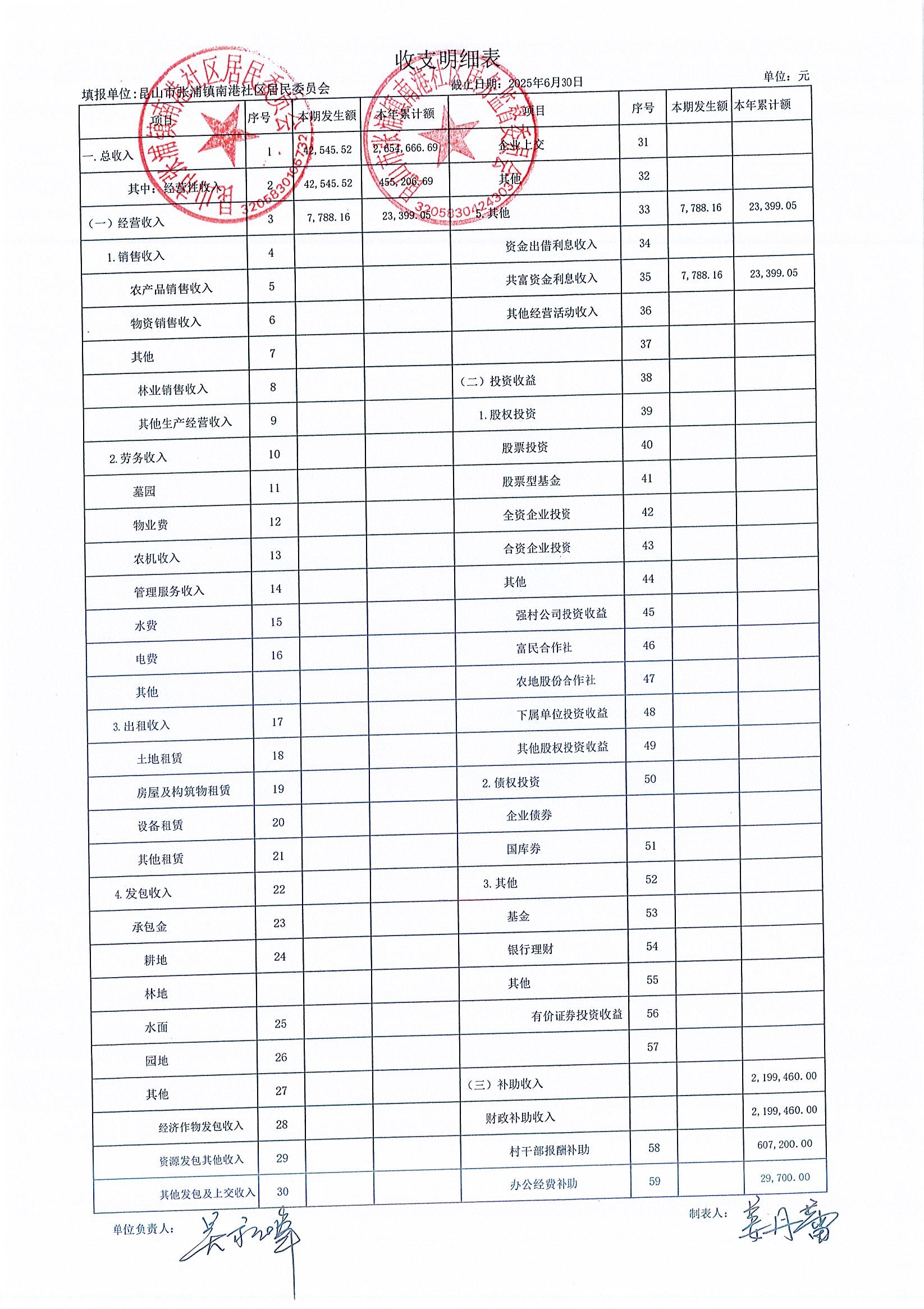 南港社區(qū)居委會(huì)2025年6月財(cái)務(wù)公開(kāi)(定期公開(kāi))