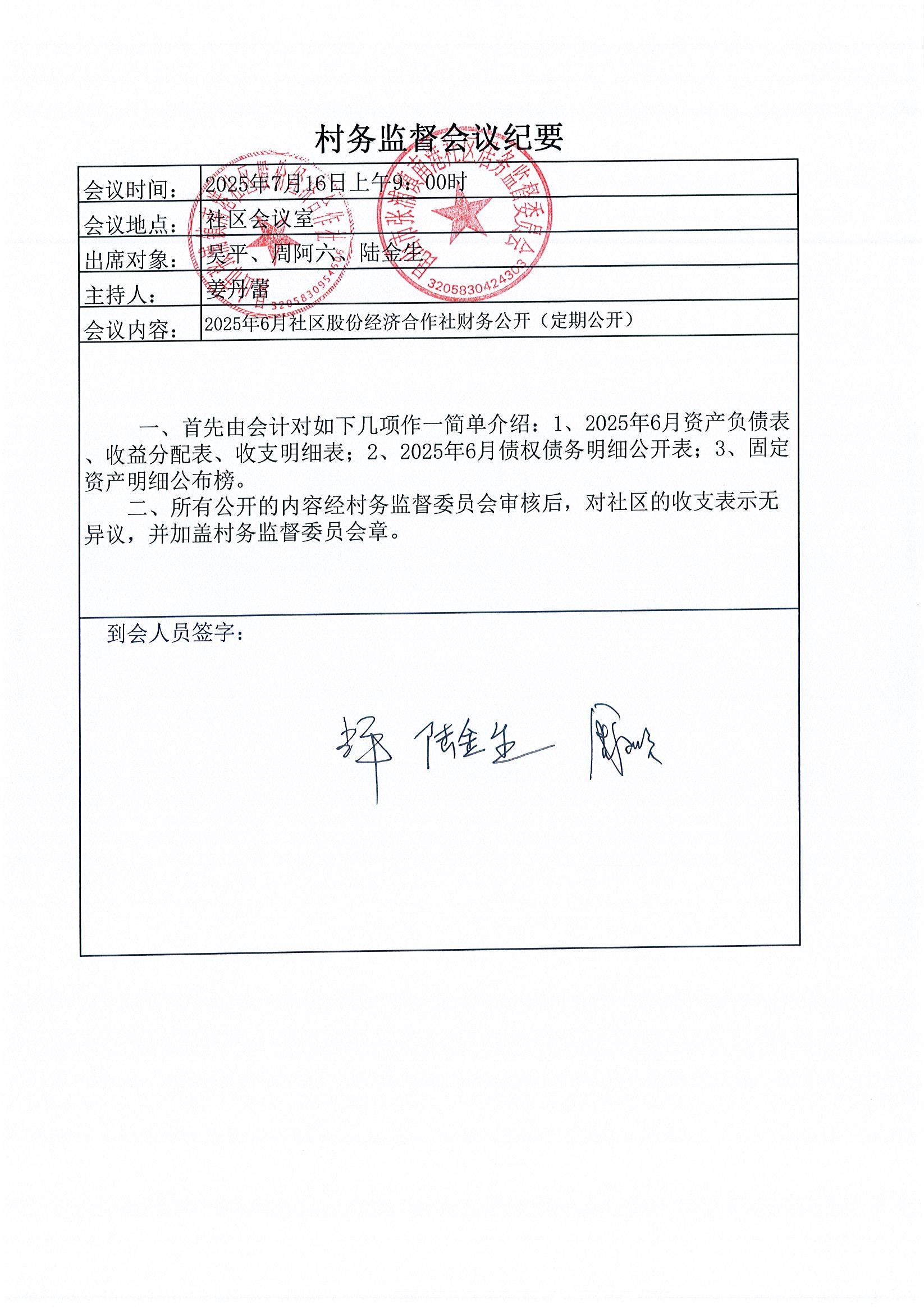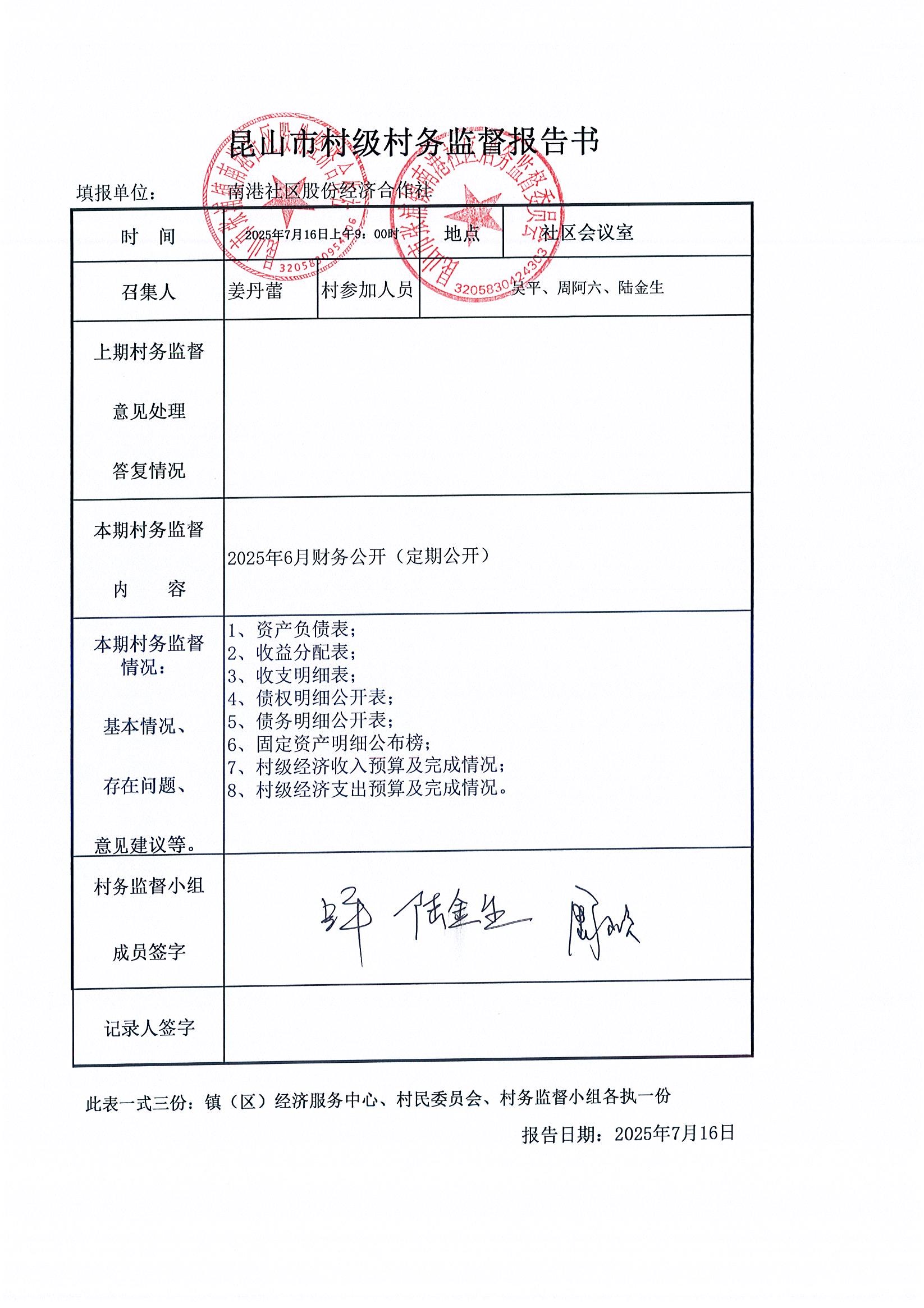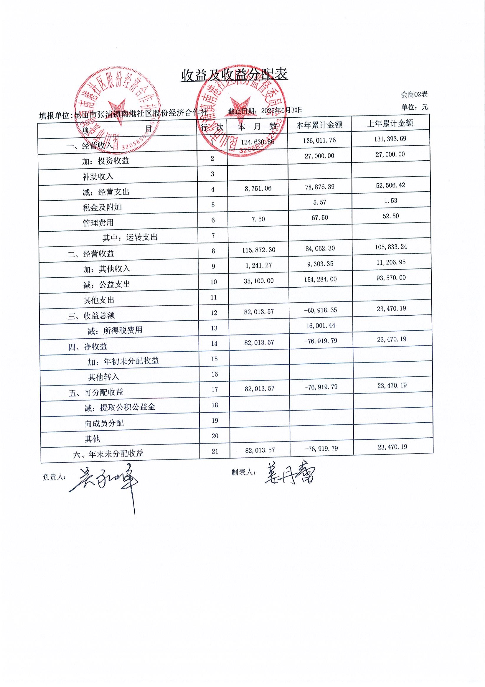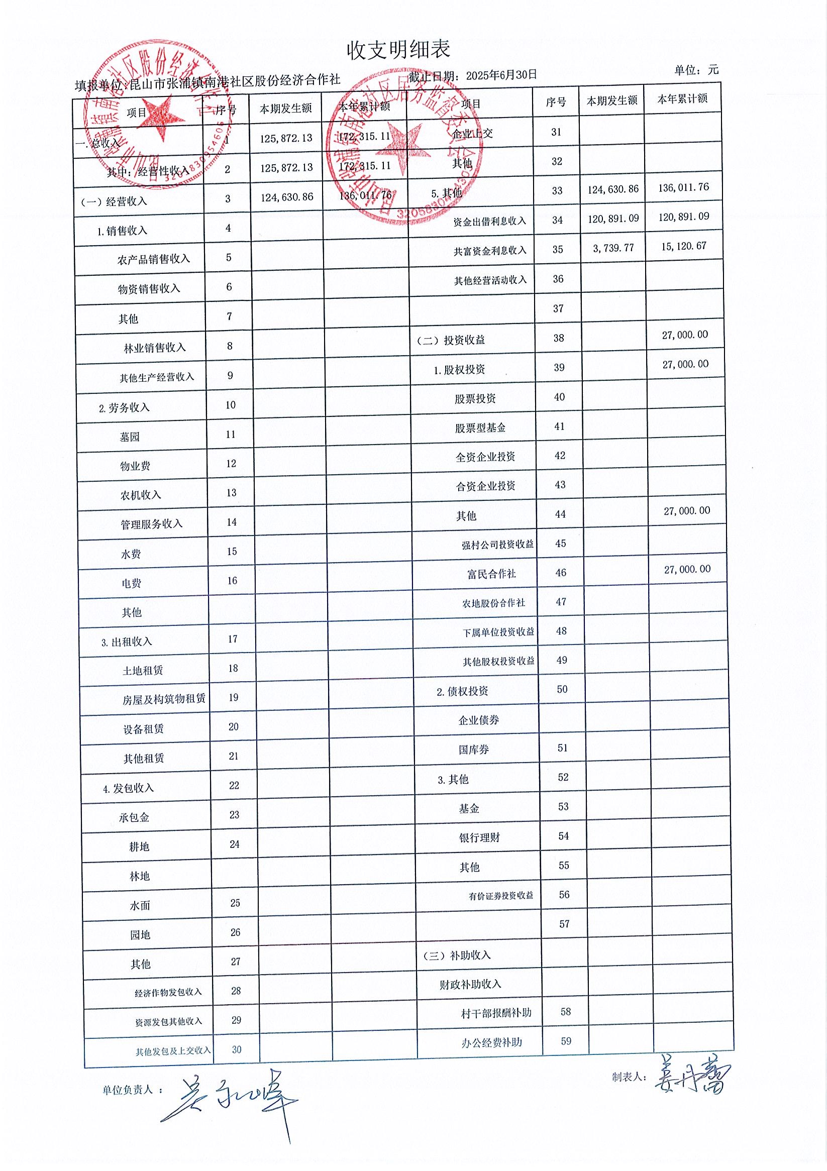 南港社區(qū)股份經(jīng)濟合作社2025年6月財務(wù)公開(定期公開)