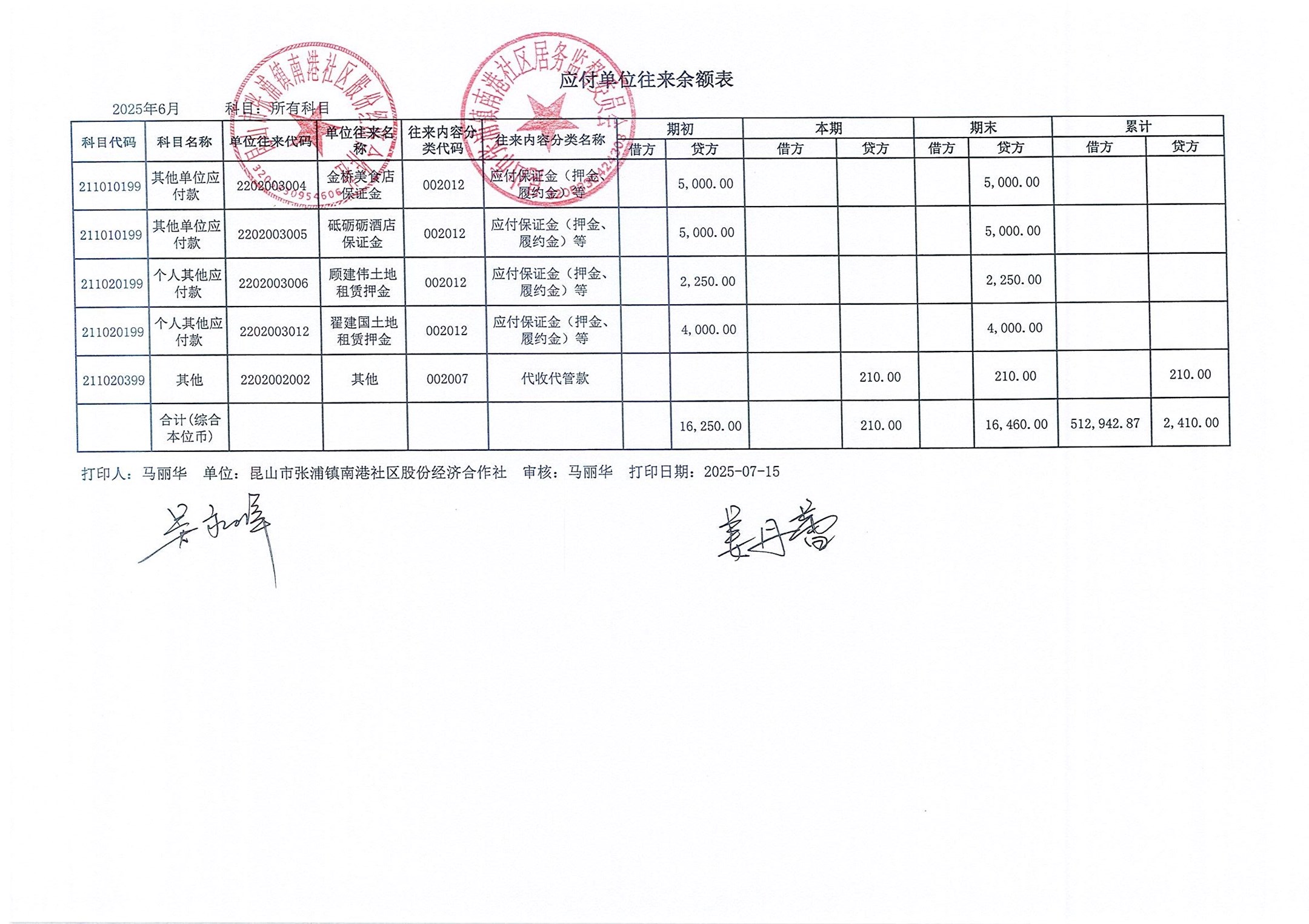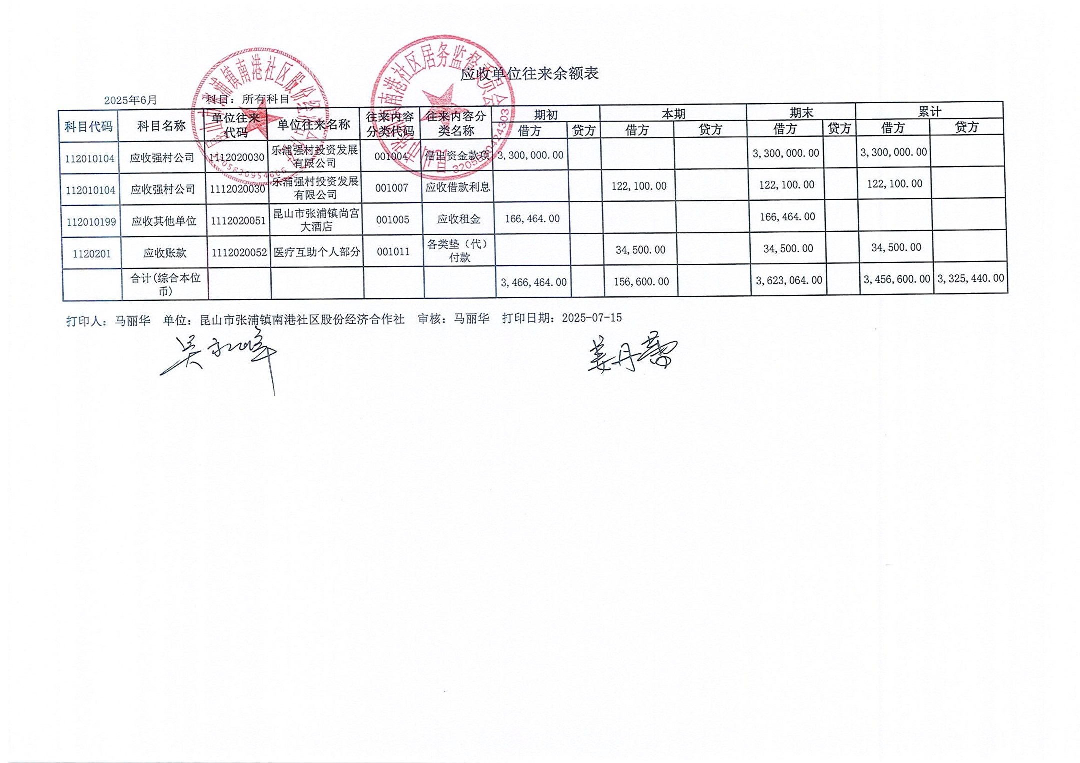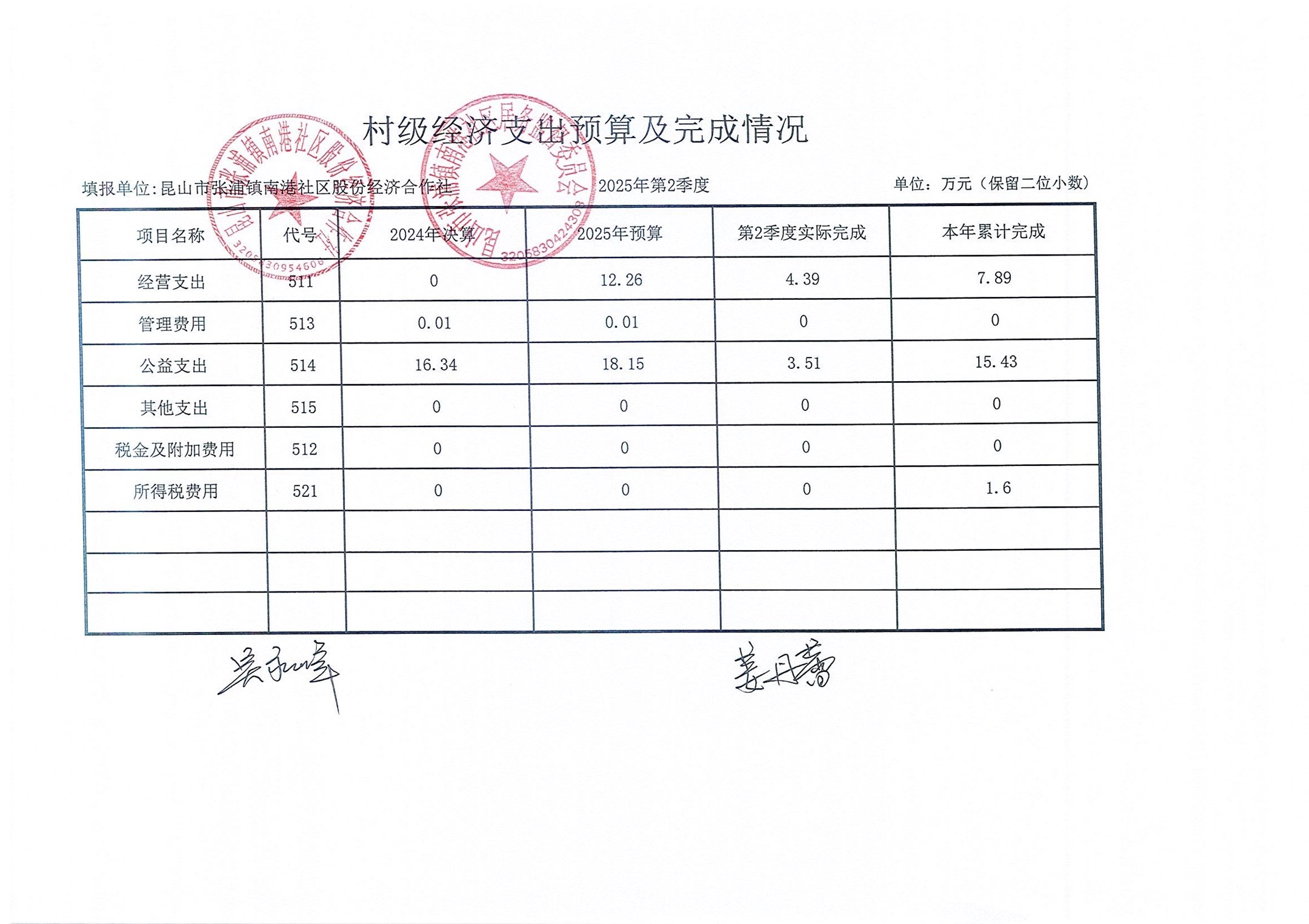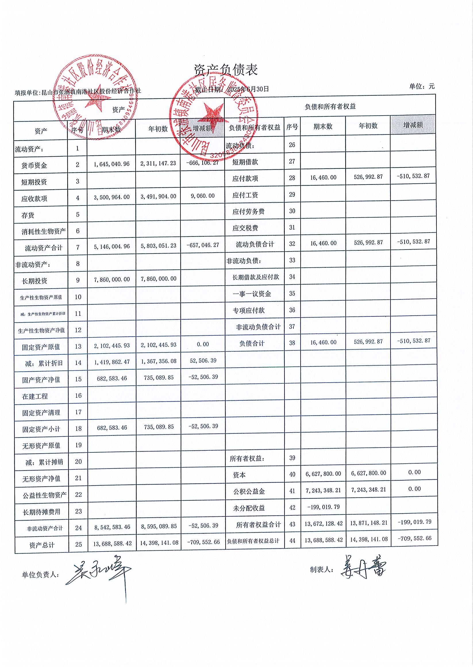 南港社區(qū)股份經(jīng)濟合作社2025年6月財務(wù)公開(定期公開)