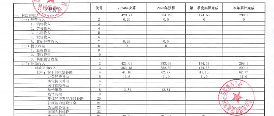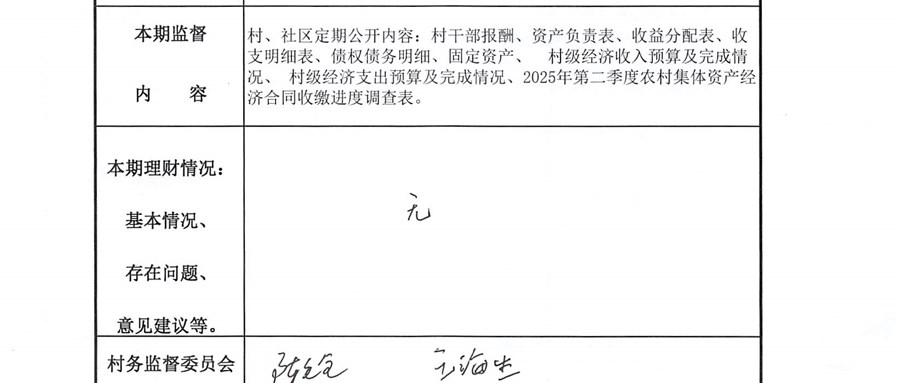 南前村村委會(huì)第二季度財(cái)務(wù)公開