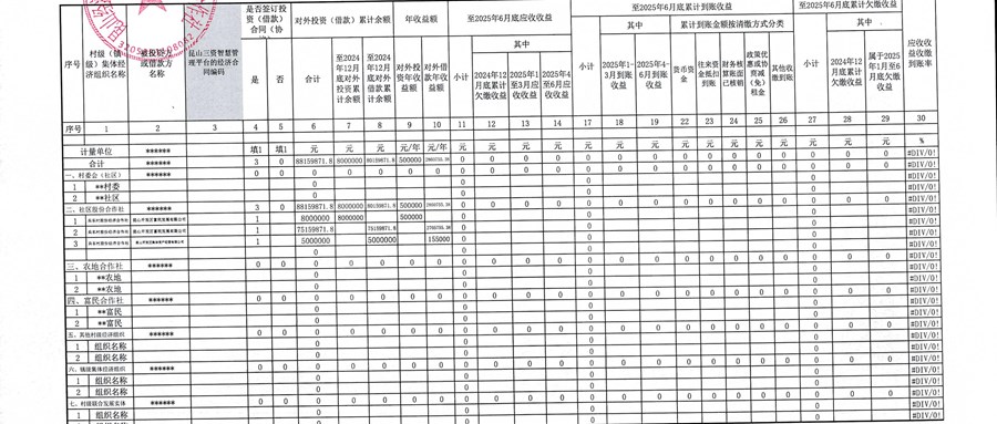 2025年二季度農村集體資產經濟合同收繳進度公示