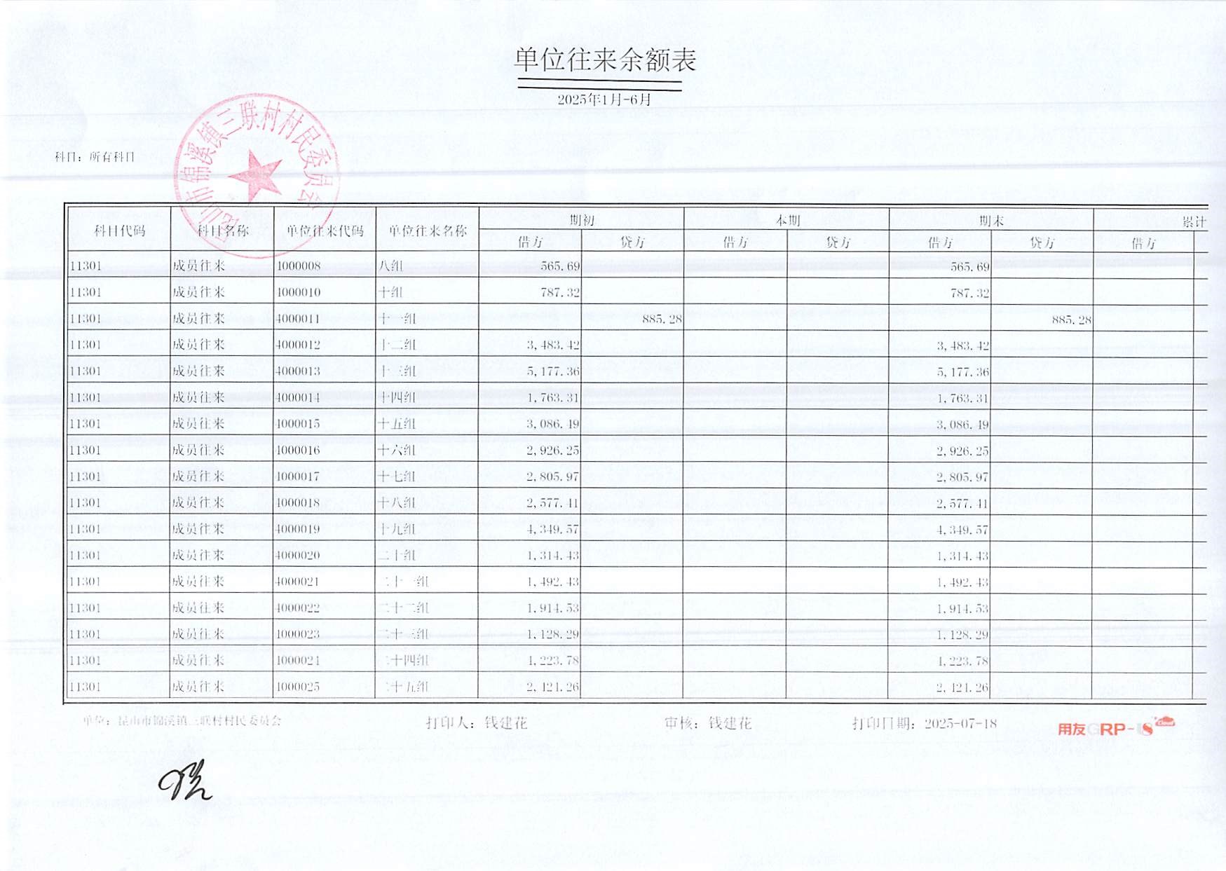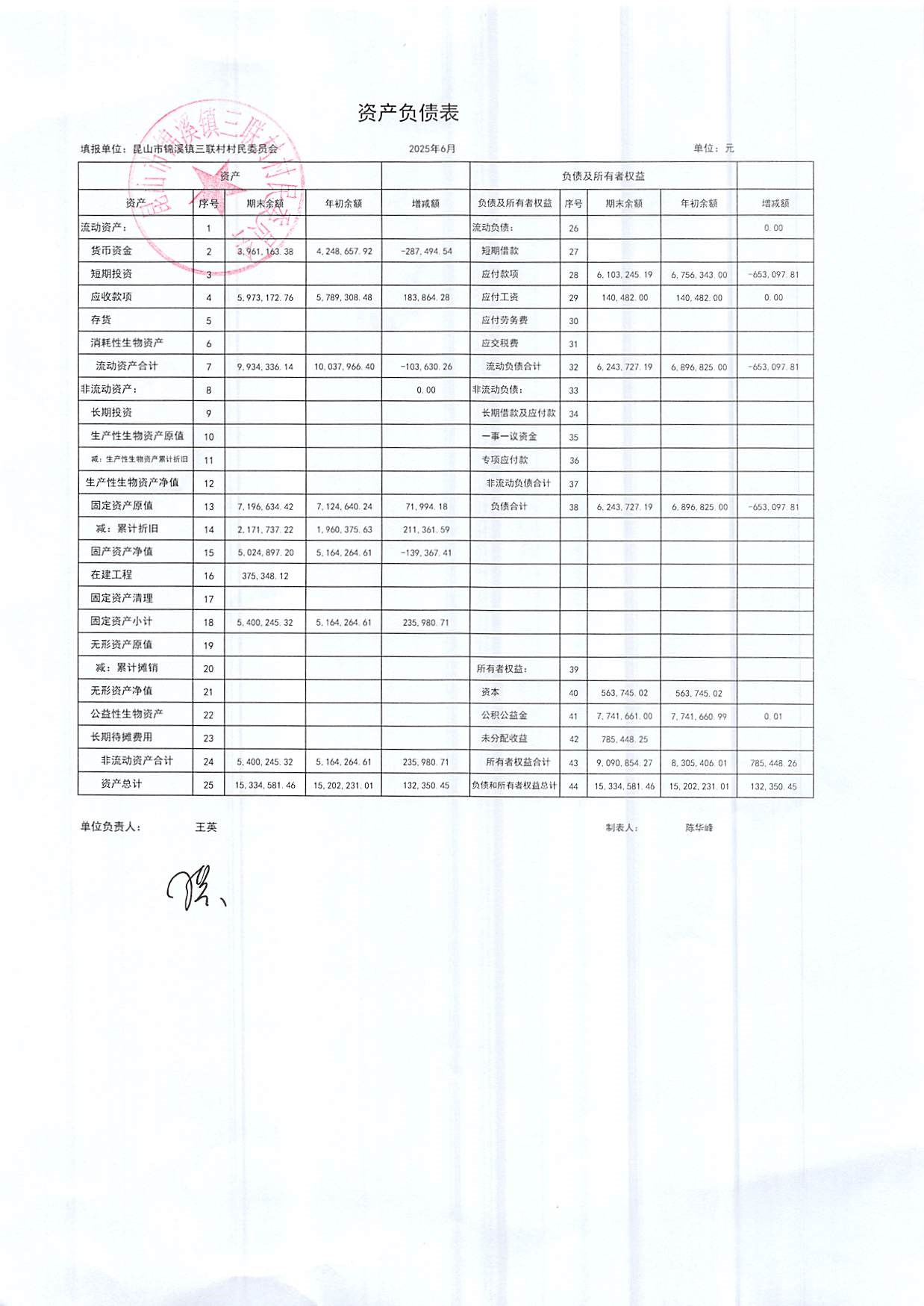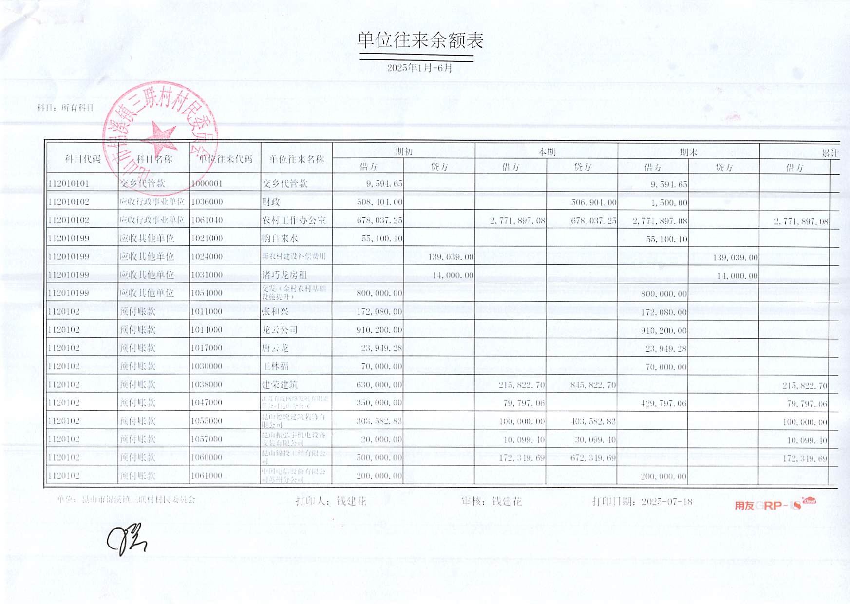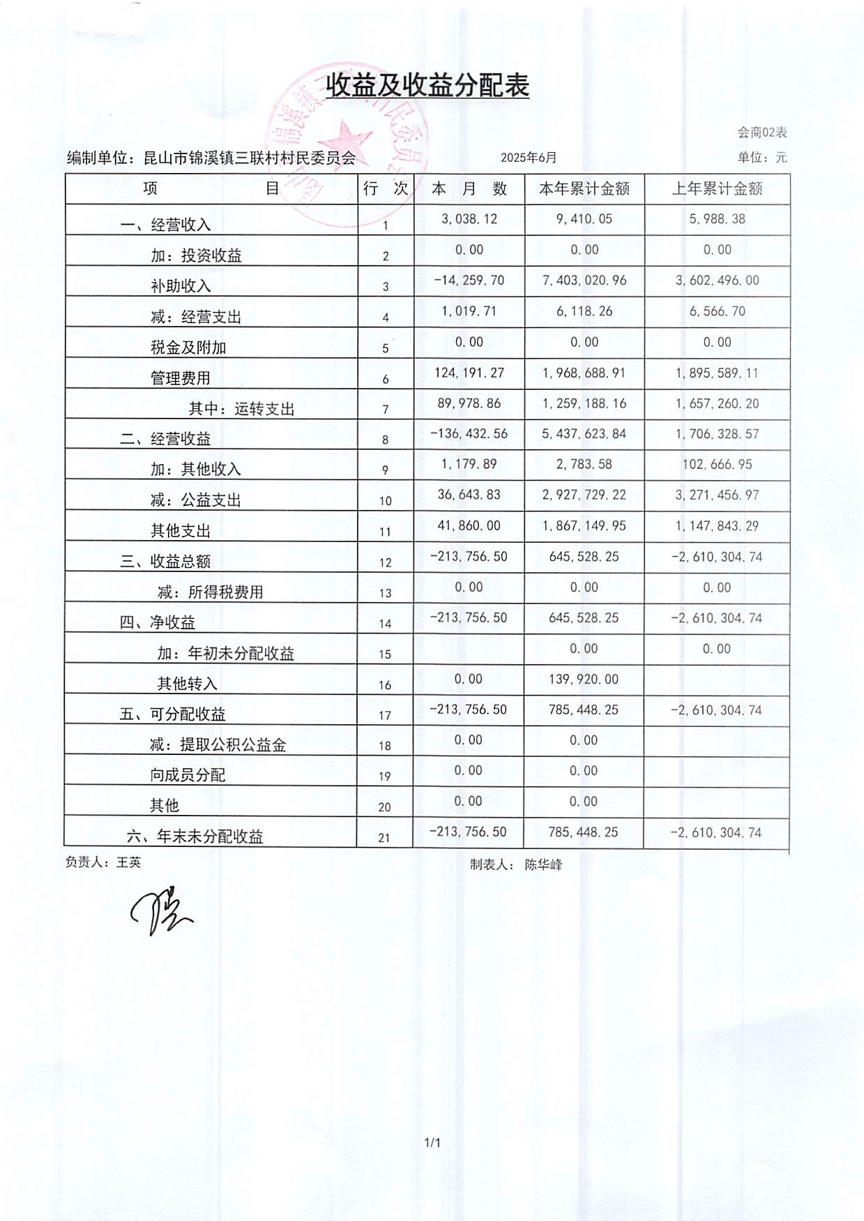 2025年三聯(lián)村村委會6月份財務(wù)公開
