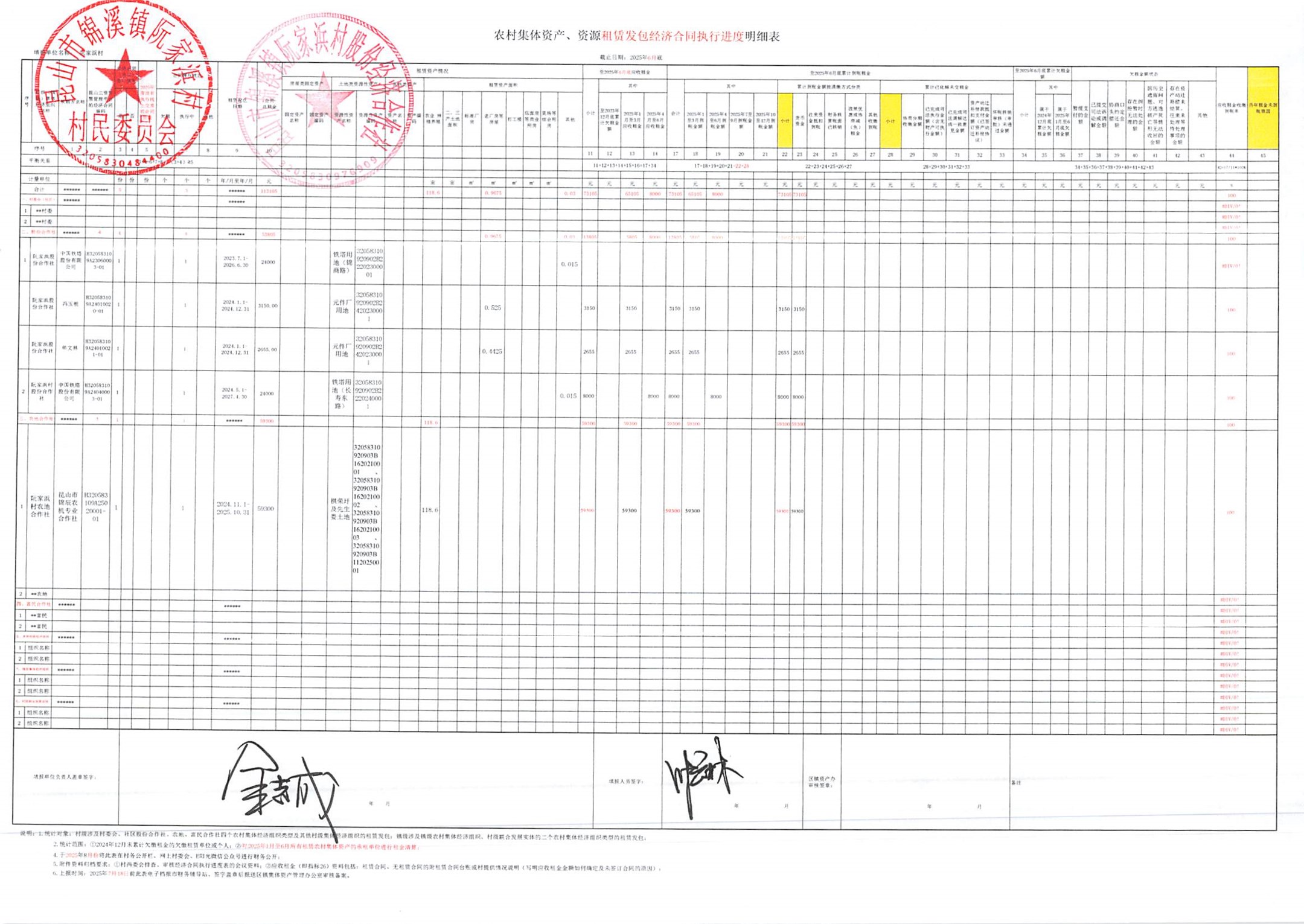 2025年6月份農(nóng)村集體資產(chǎn)、資源租賃發(fā)包經(jīng)濟合同執(zhí)行進度明細表