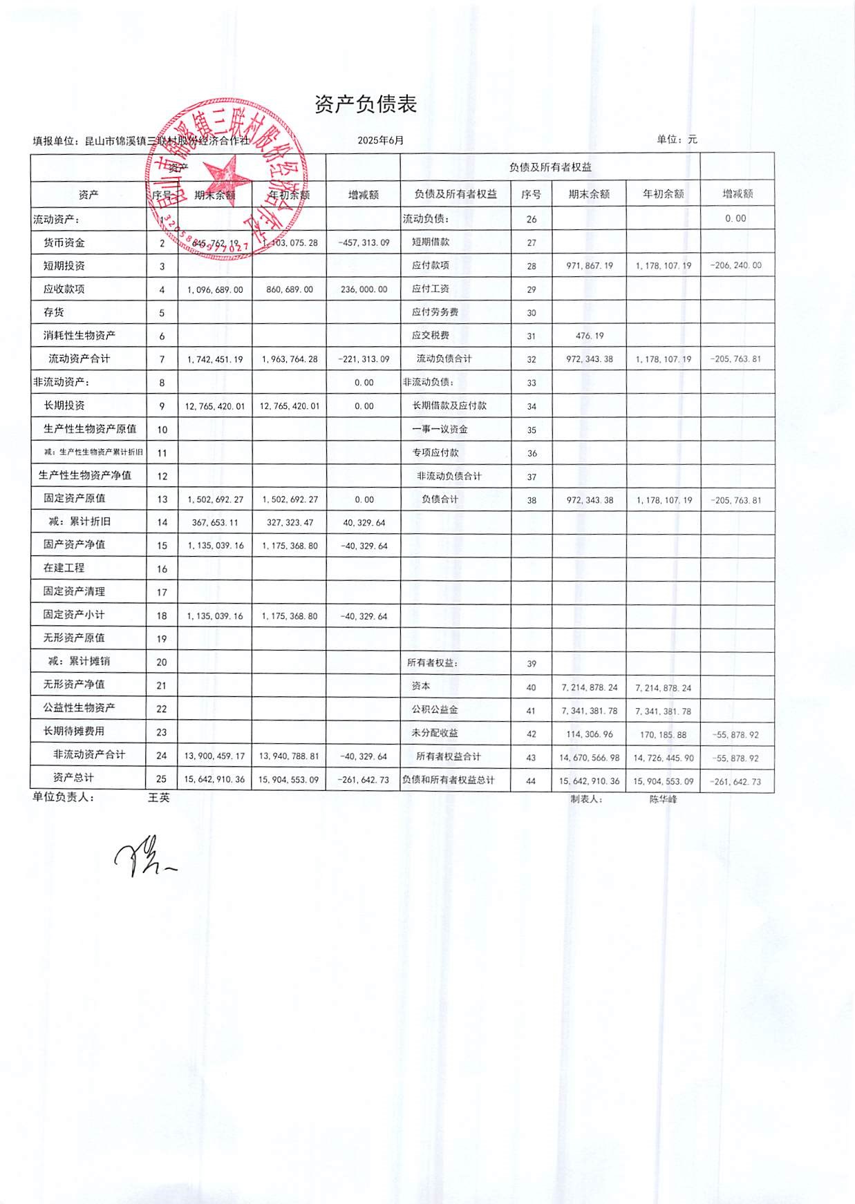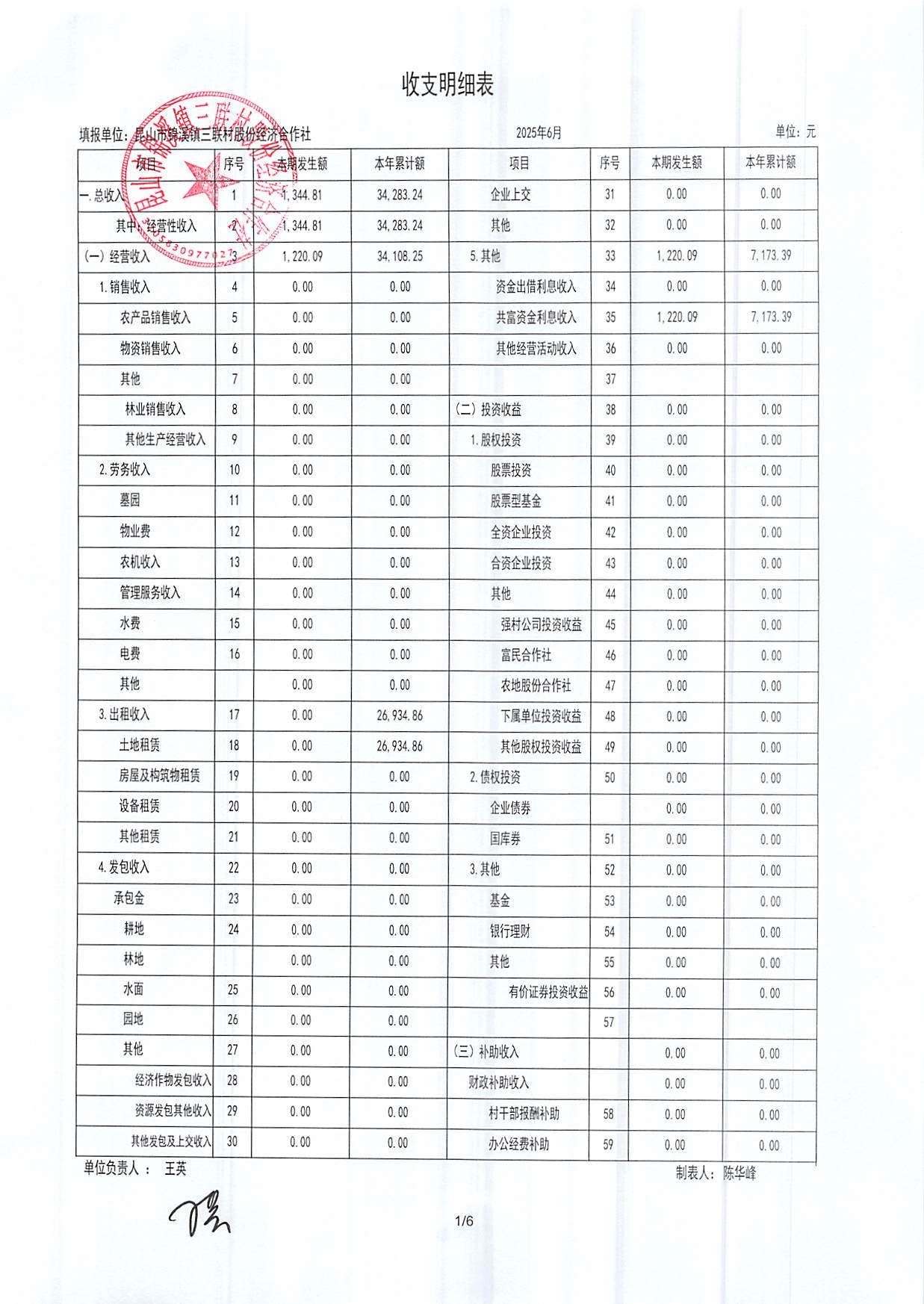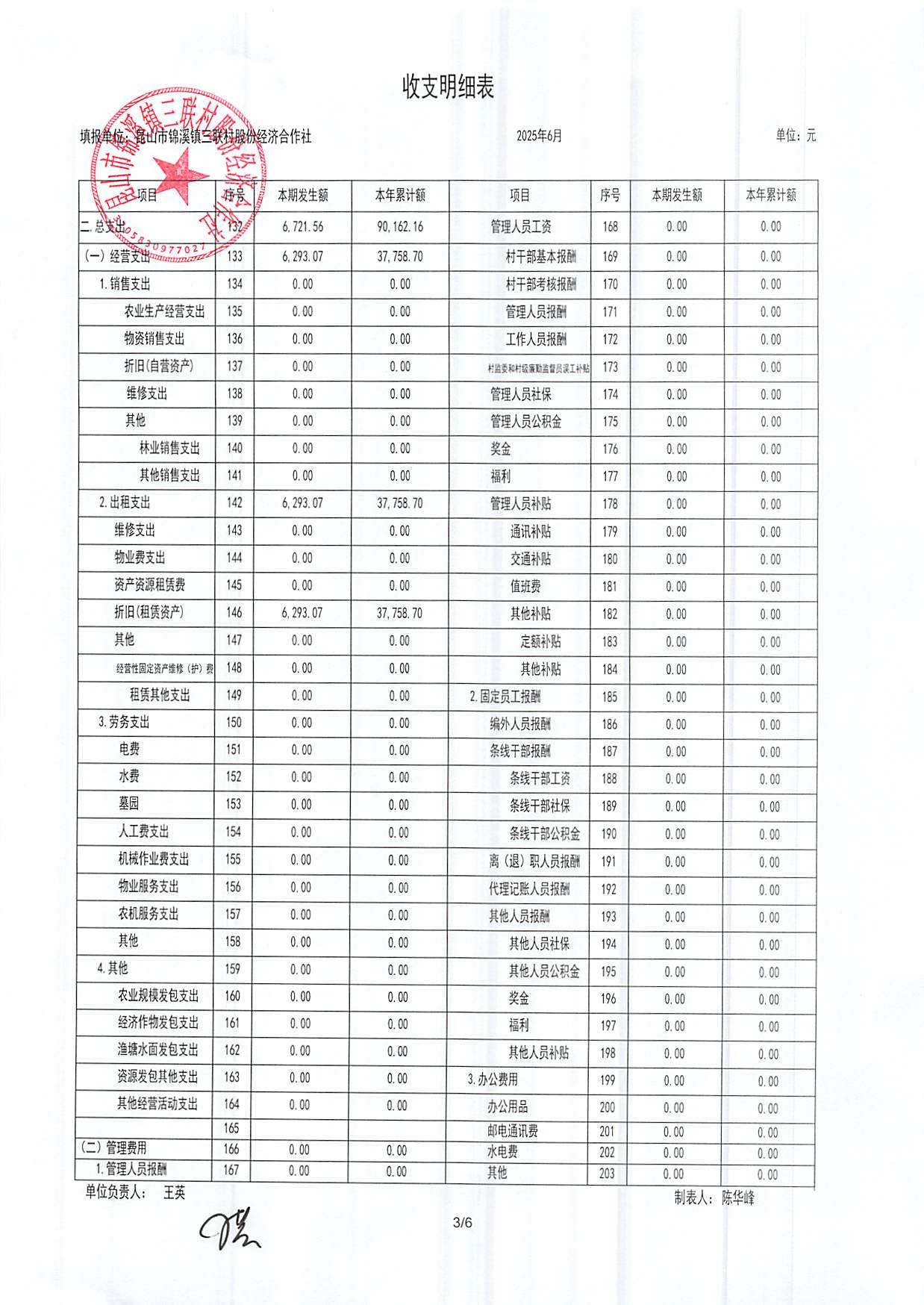 2025年三聯(lián)村股份經(jīng)濟(jì)合作社6月份財(cái)務(wù)公開(kāi)