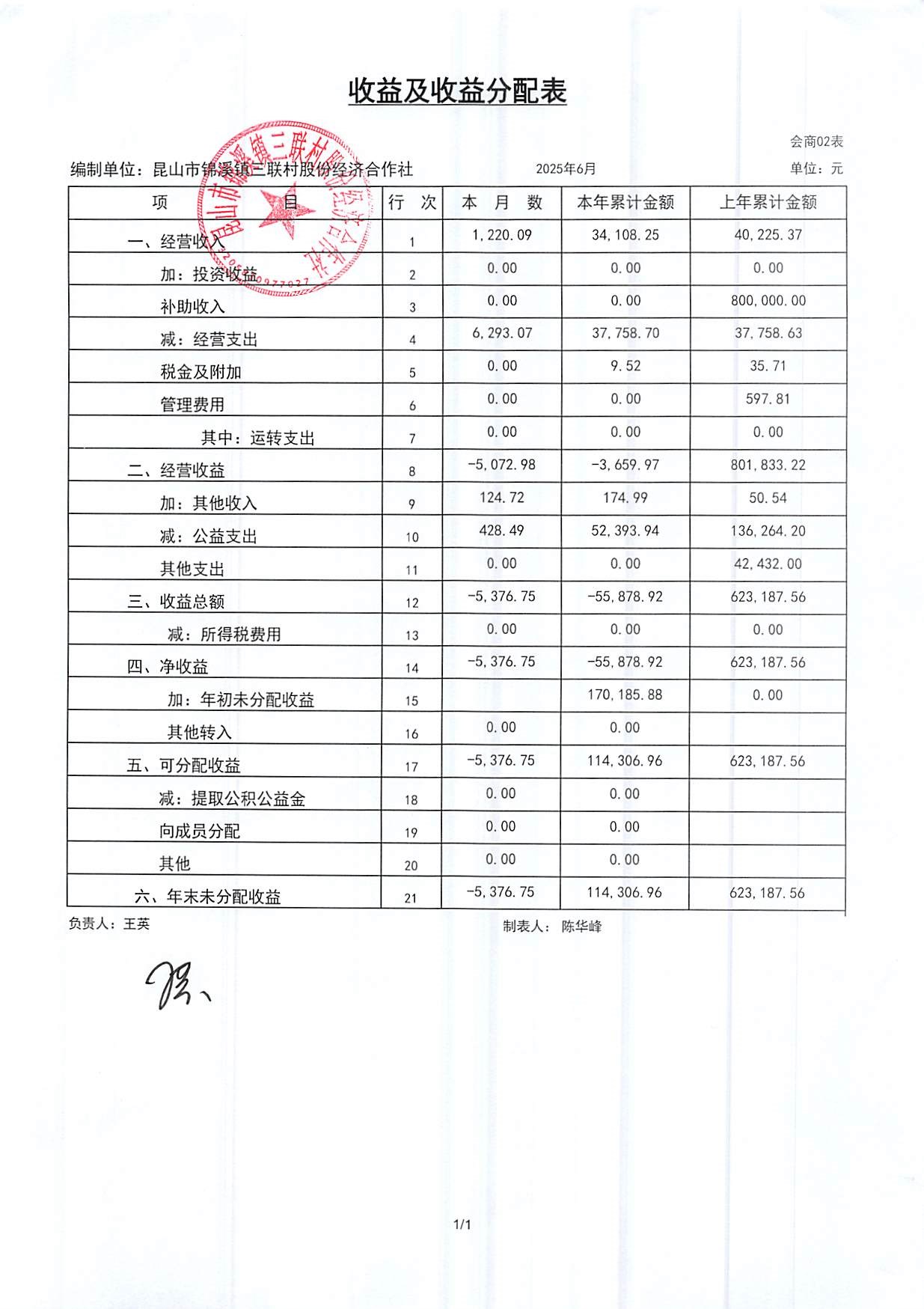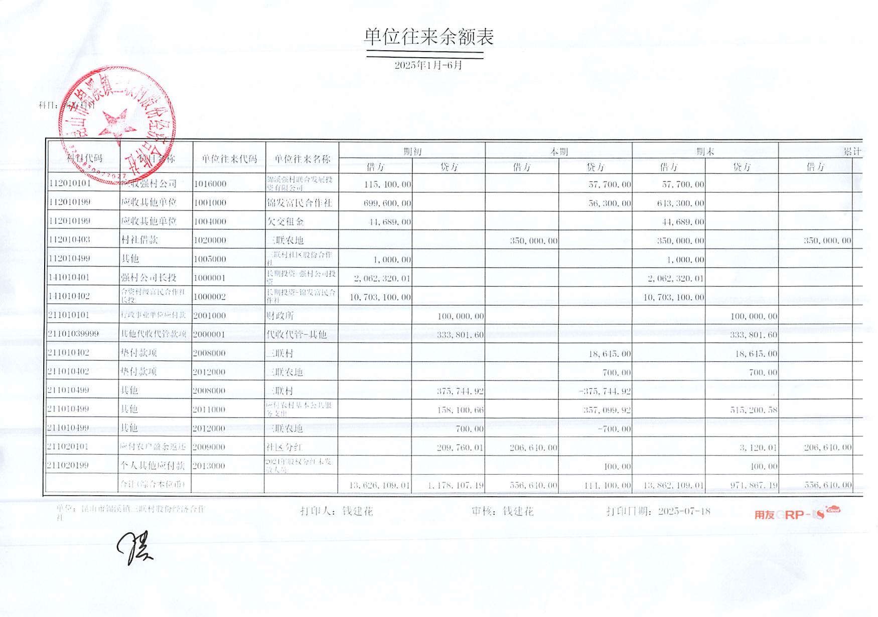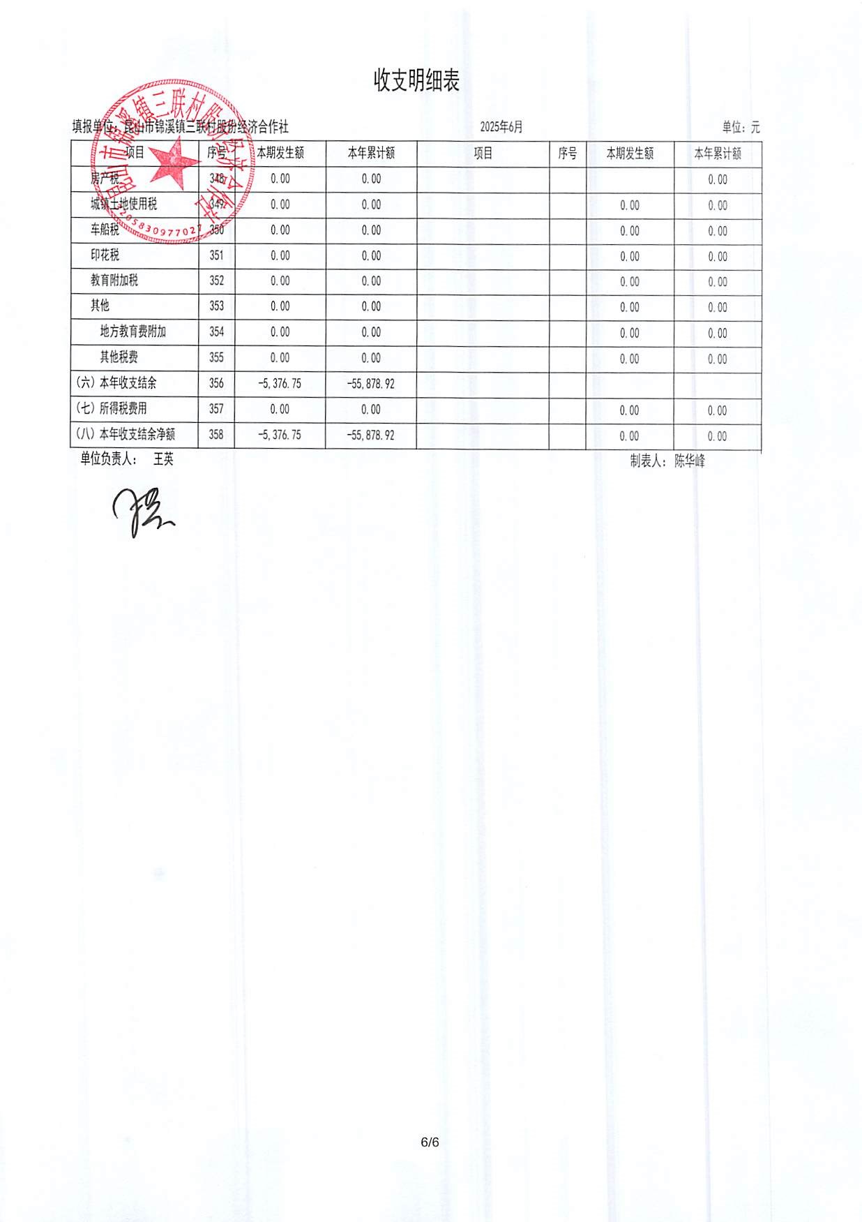 2025年三聯(lián)村股份經(jīng)濟(jì)合作社6月份財(cái)務(wù)公開(kāi)