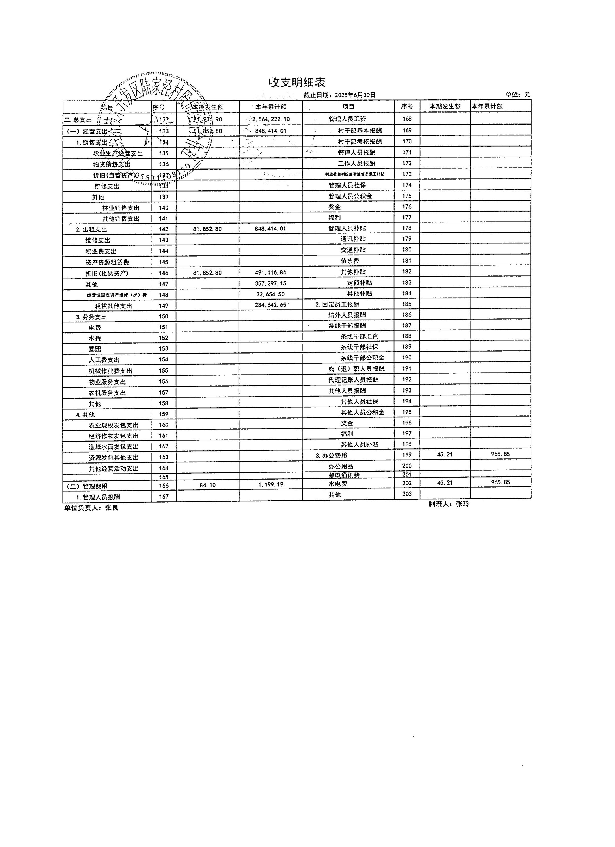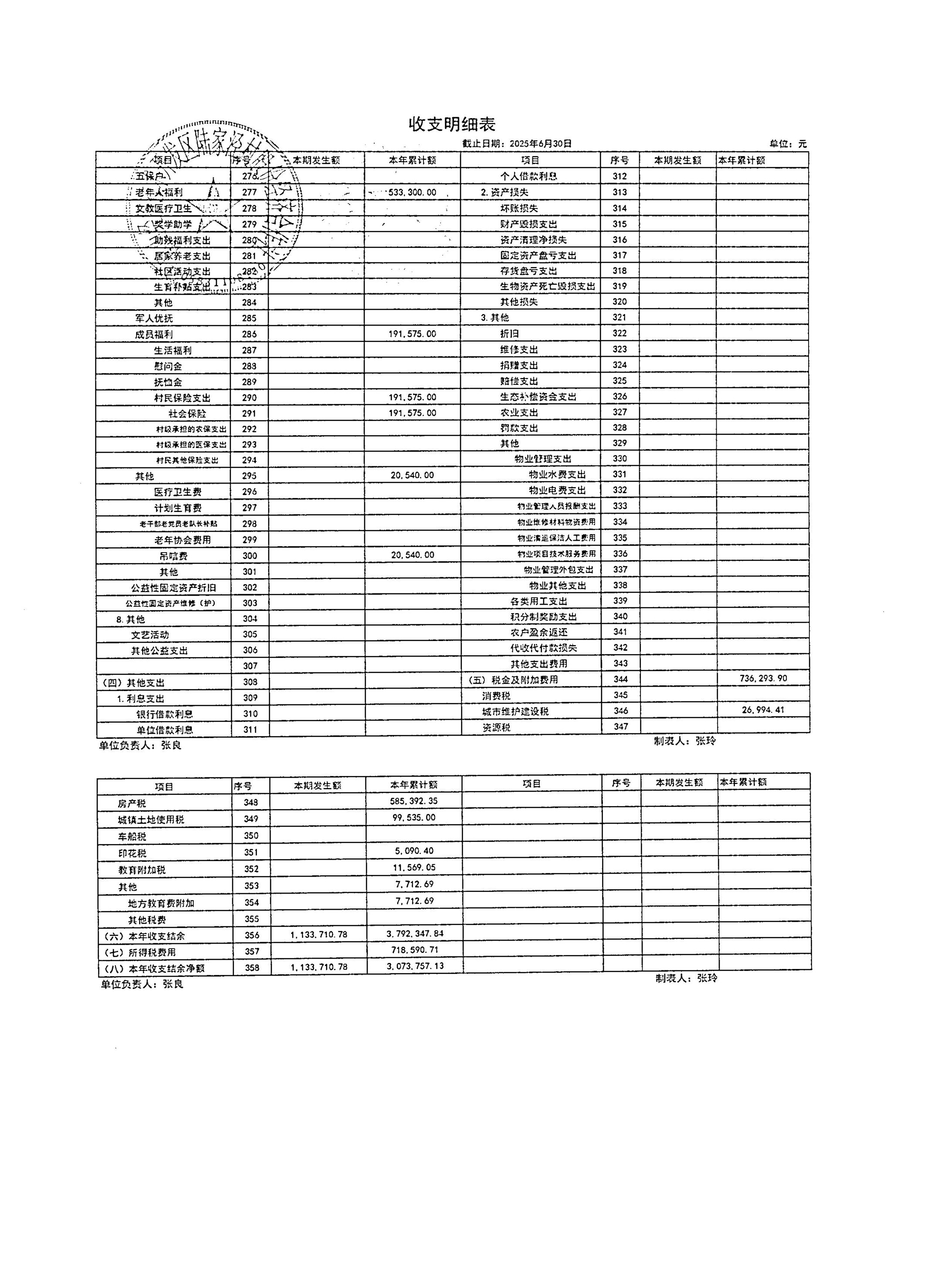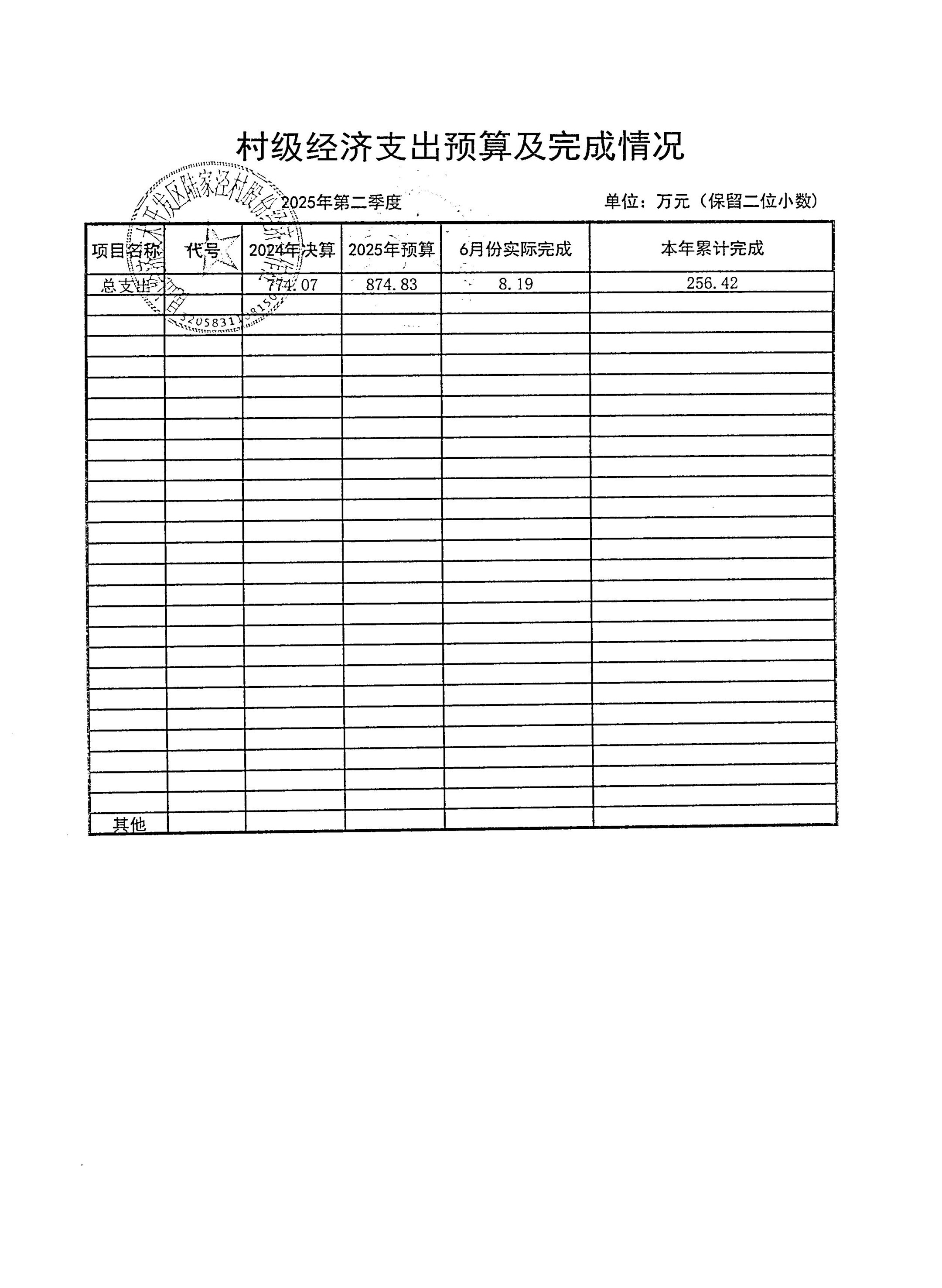 2025年7月陸家涇村財務公開