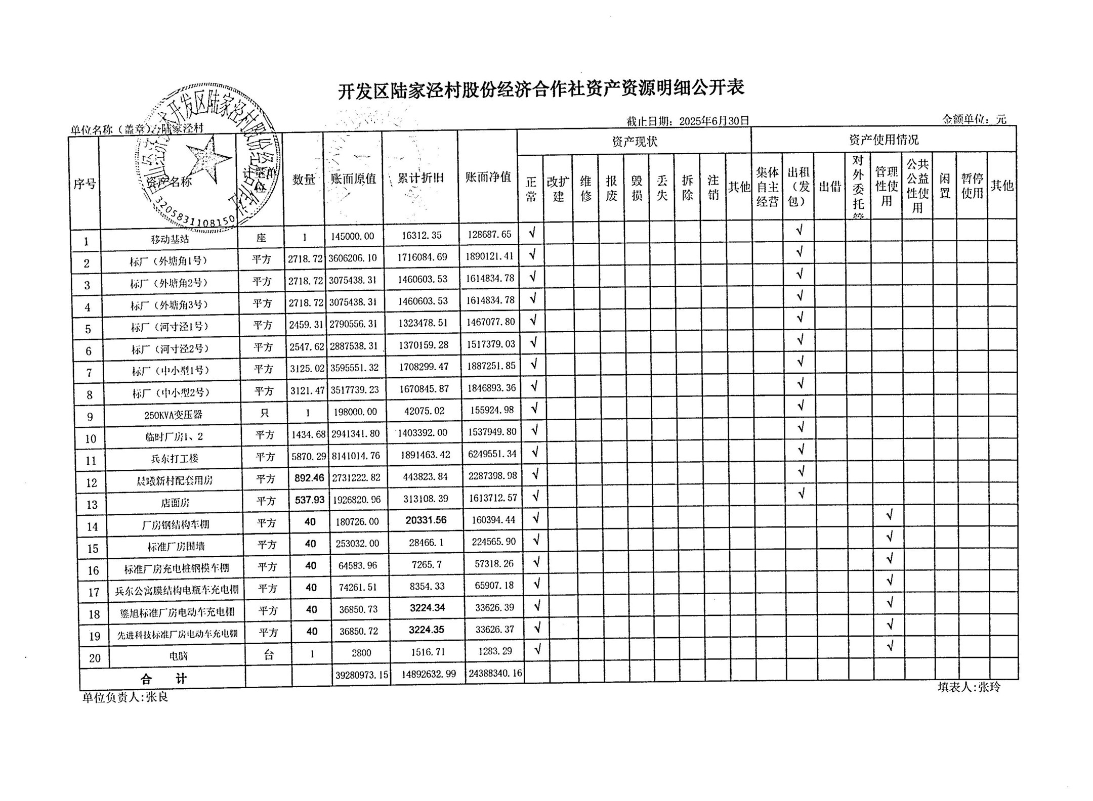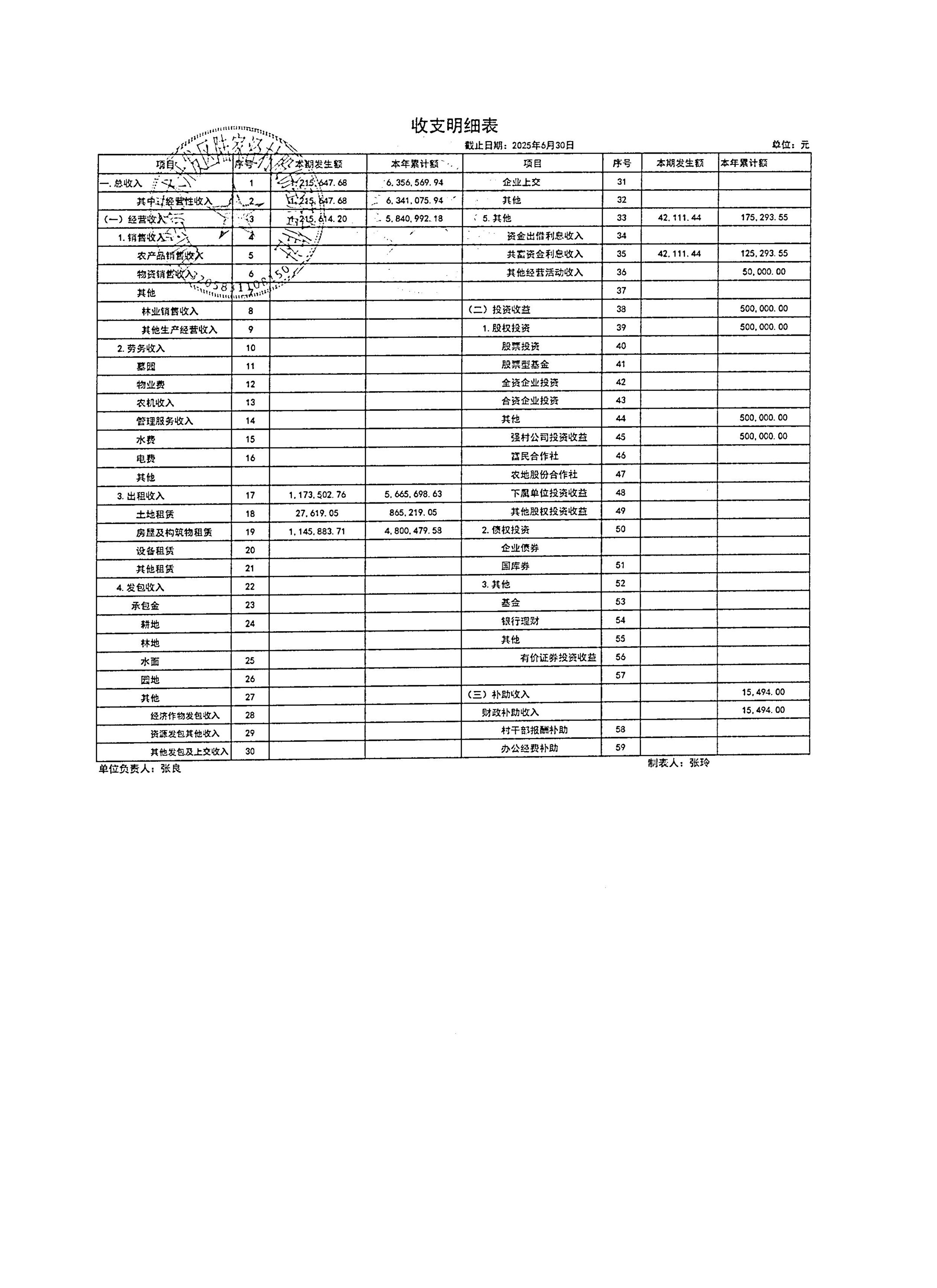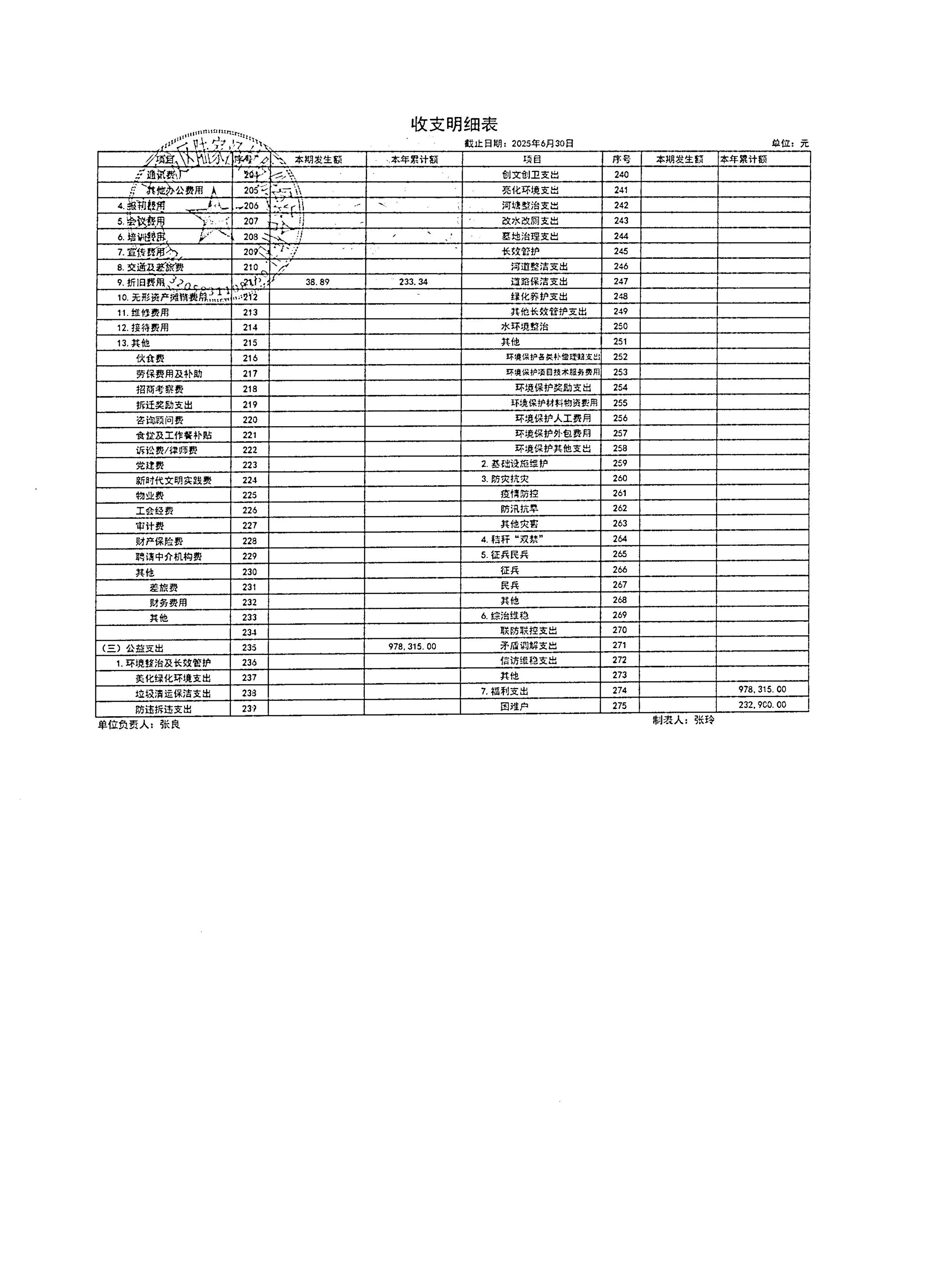 2025年7月陸家涇村財務公開