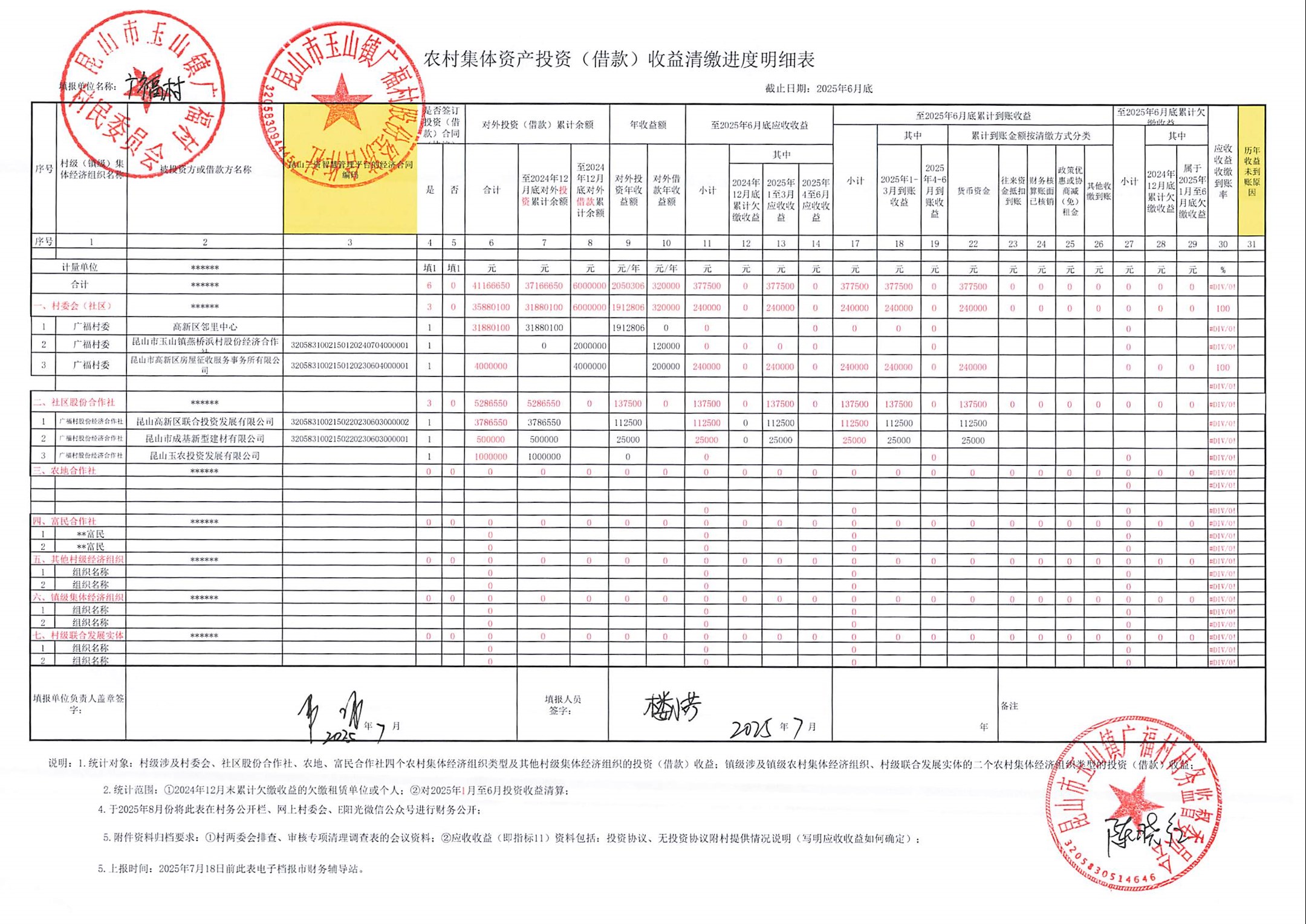 2025年農(nóng)村集體資產(chǎn)經(jīng)濟合同收繳進度調查表及公示照片(第二季度)