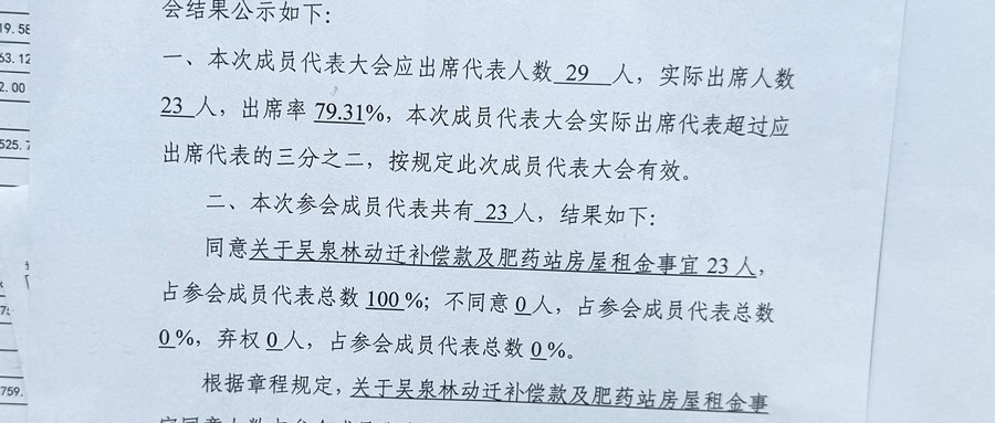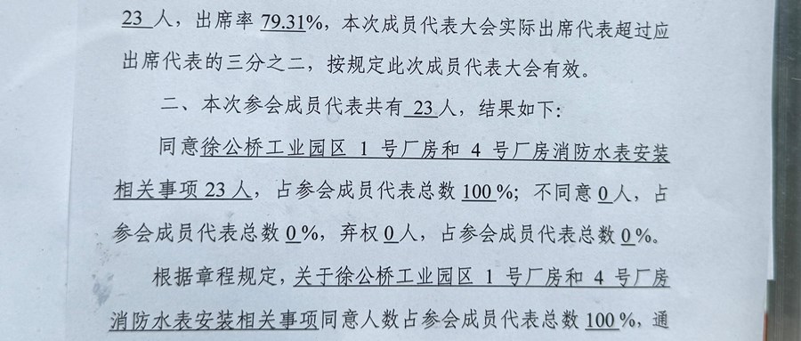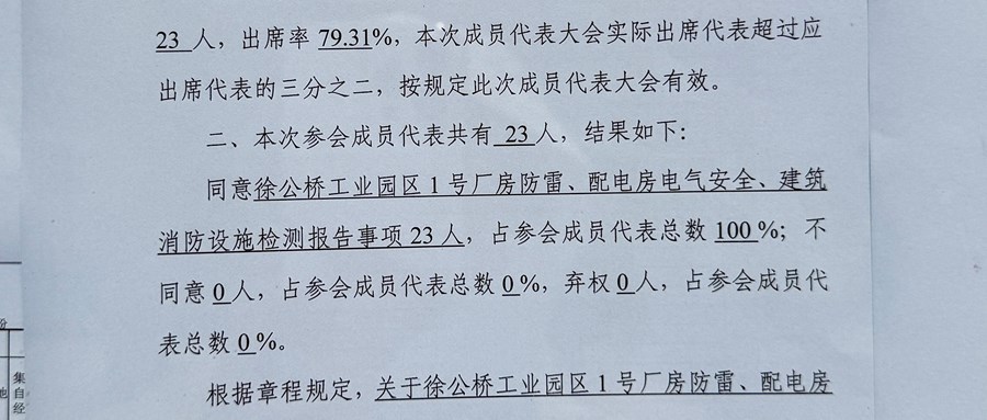 1.審議關于集體資產(chǎn)動遷補償款相關事項; 2.審議關于吳泉林動遷補償款及肥藥站房屋租金事宜; 3.審議關于鄉(xiāng)村醫(yī)療互助項目相關事項; 4.審議關于徐公橋工業(yè)園區(qū)1號廠房防雷、配電房電氣安全、建筑消防設施檢測報告事項; 5.審議關于徐公橋工業(yè)園區(qū) 1 號廠房和 4 號廠房消防水表安裝相關事項。