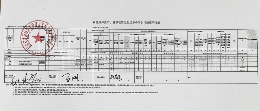 2025年星浜村股份經(jīng)濟合作社第2季度農(nóng)村集體資產(chǎn)、資源租賃發(fā)包經(jīng)濟合同執(zhí)行進度明細表