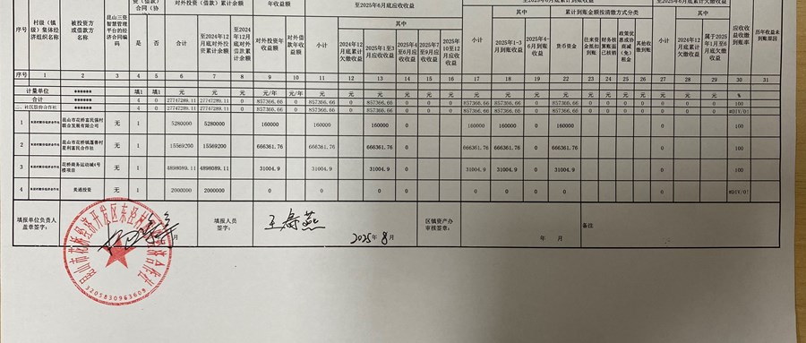 2025年東涇合作社農(nóng)村集體資產(chǎn)經(jīng)濟(jì)合同收繳進(jìn)度、投資收益進(jìn)度調(diào)查表-第二季度
