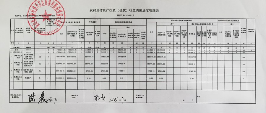 2025年集善村農(nóng)村集體資產(chǎn)投資收益清教欠租表(第二季度)