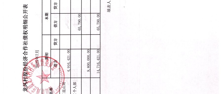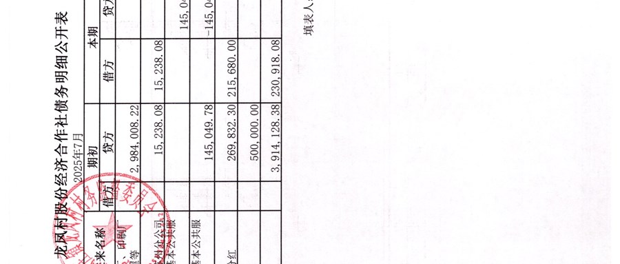 龍鳳村股份經(jīng)濟(jì)合作社2025年8月份財(cái)務(wù)公開