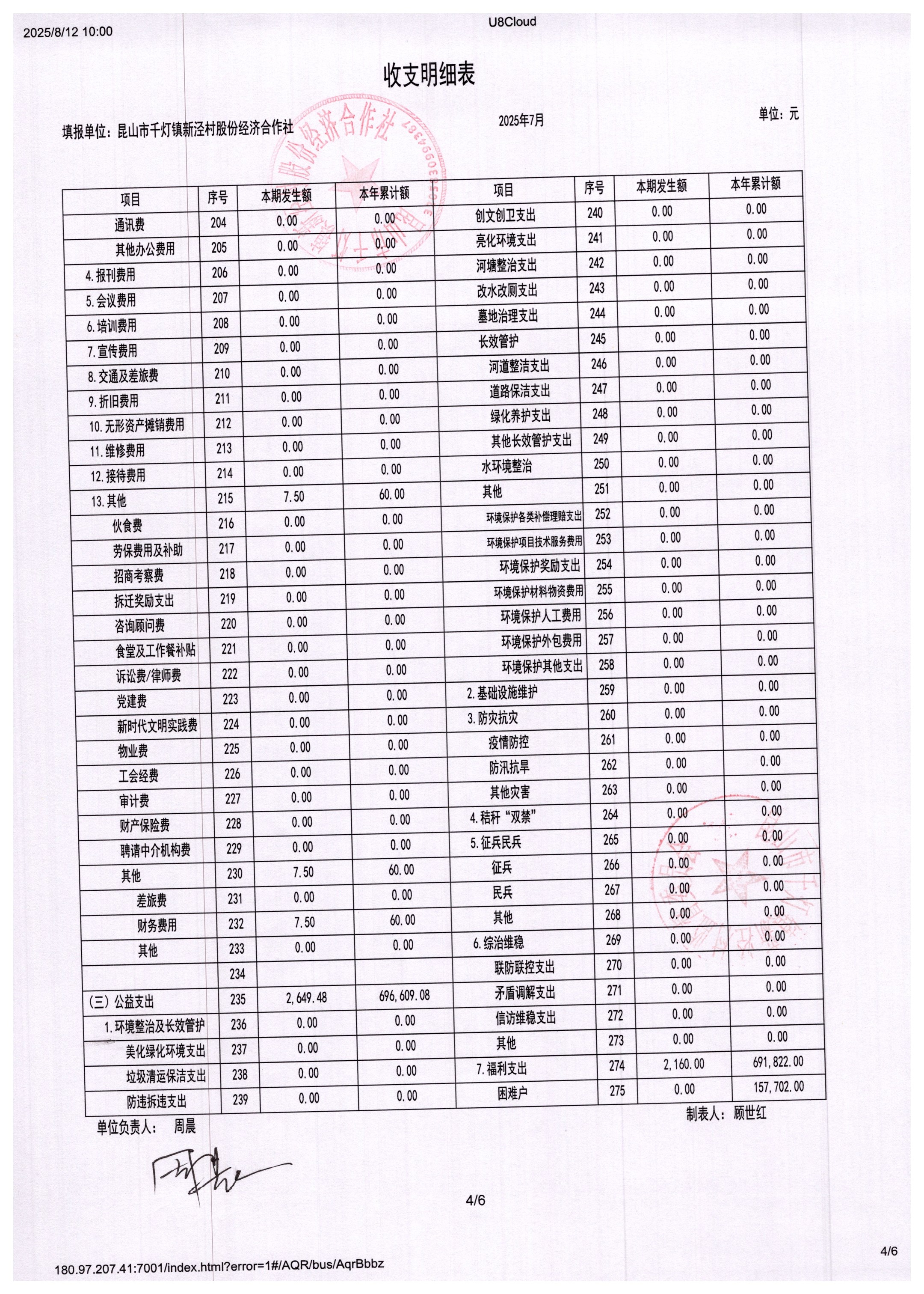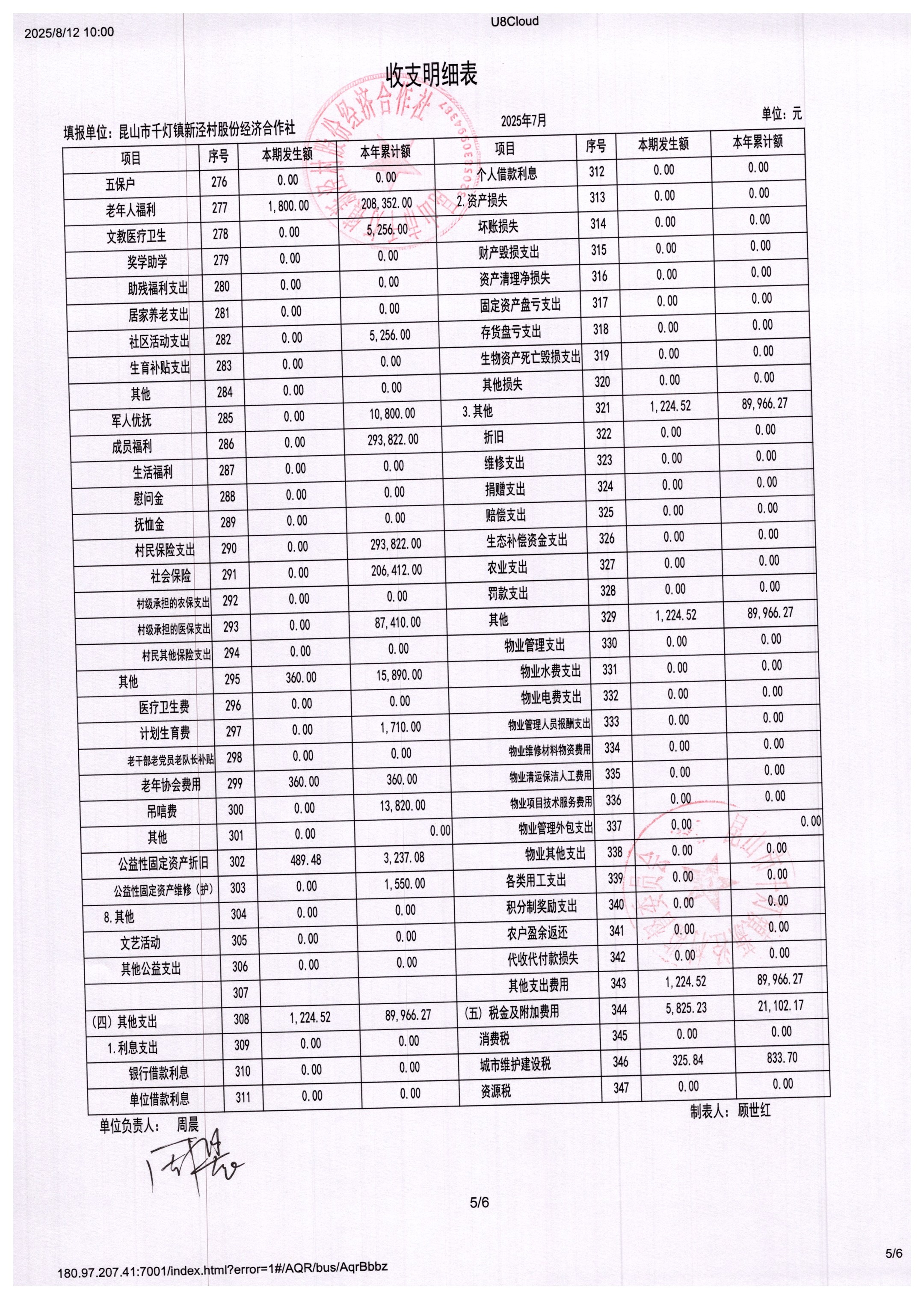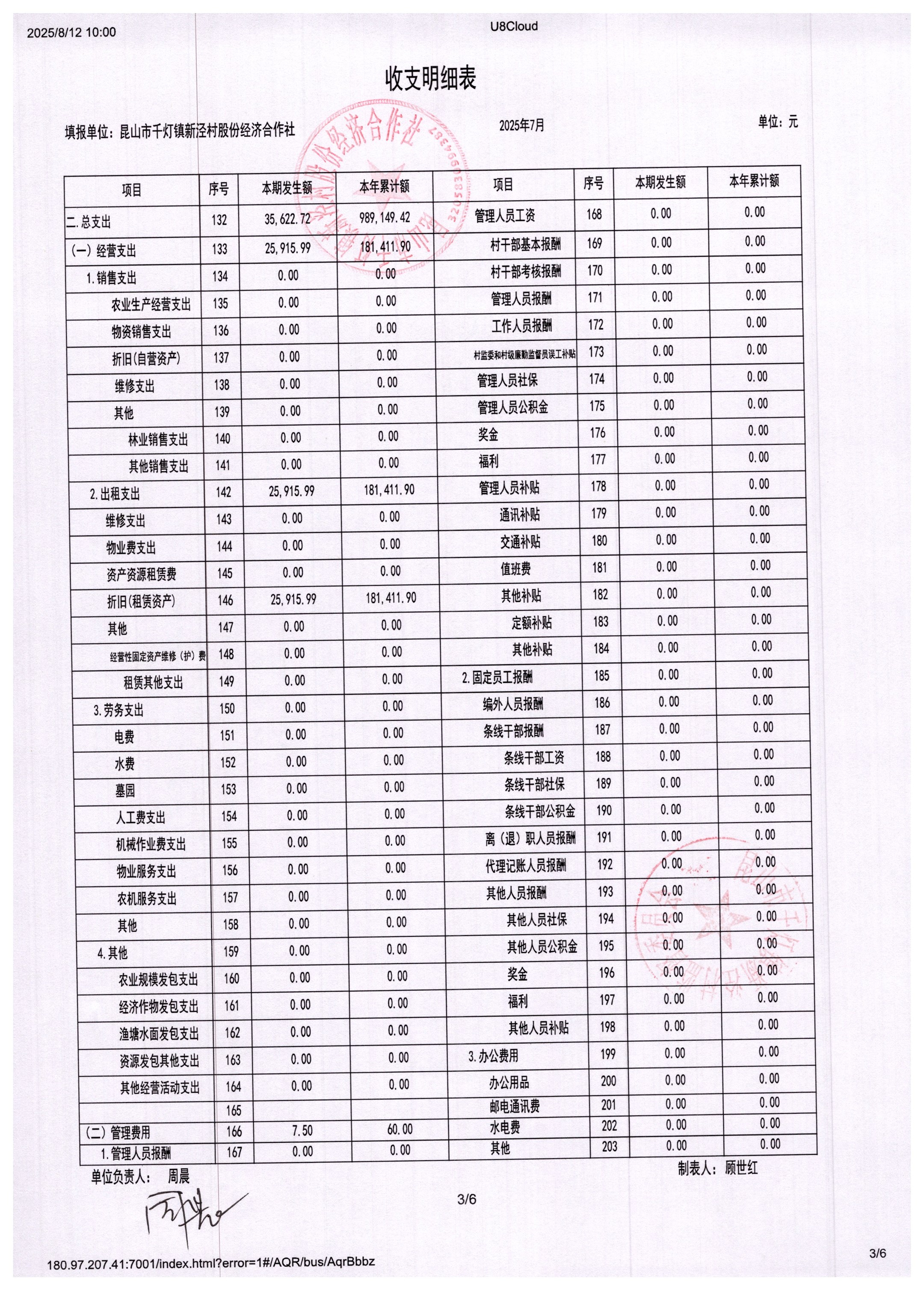 新涇村股份經(jīng)濟(jì)合作社7月財(cái)務(wù)公開