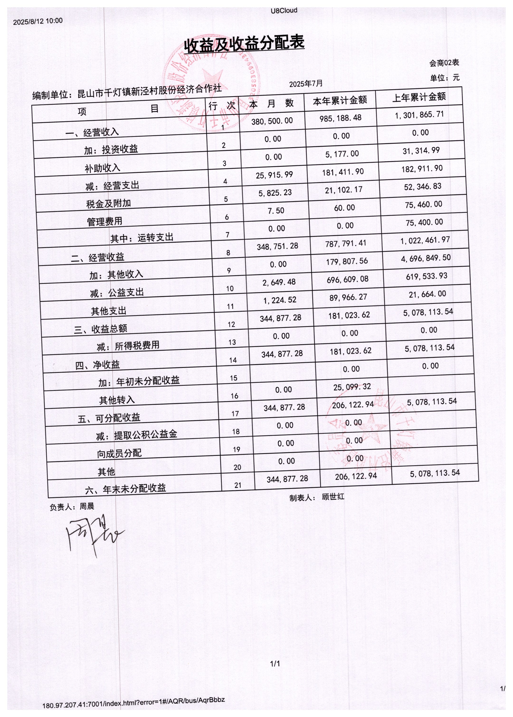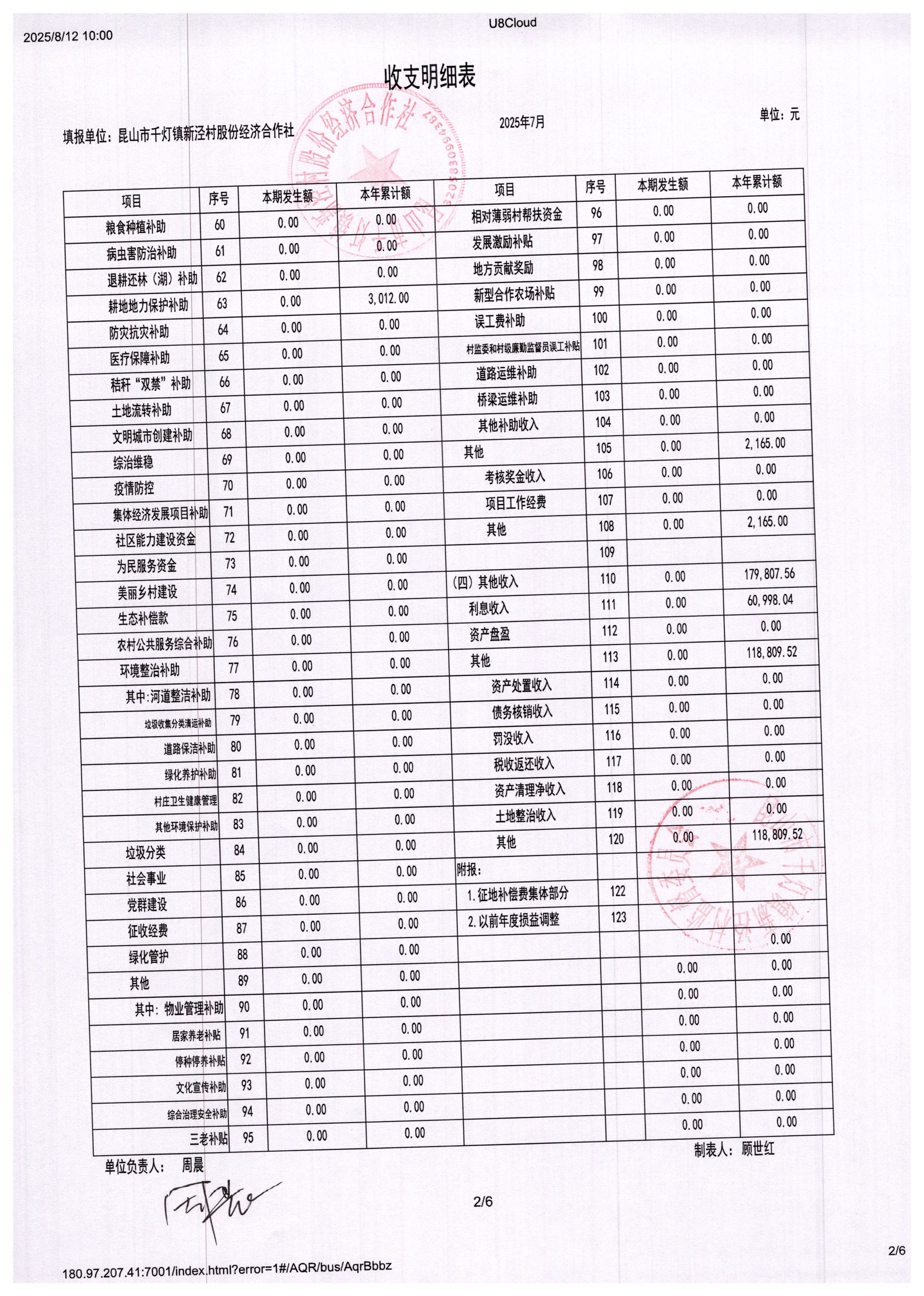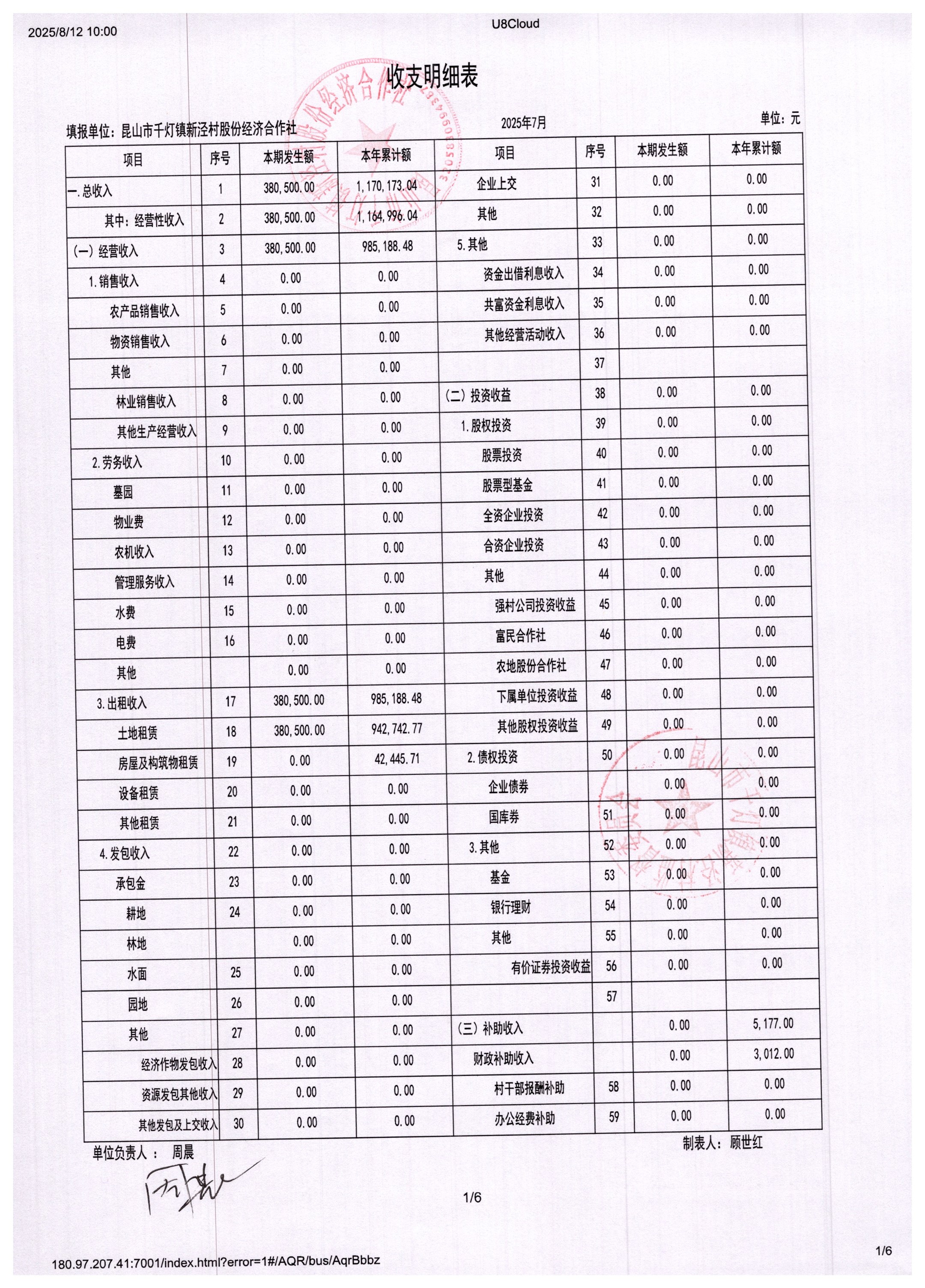新涇村股份經(jīng)濟(jì)合作社7月財(cái)務(wù)公開