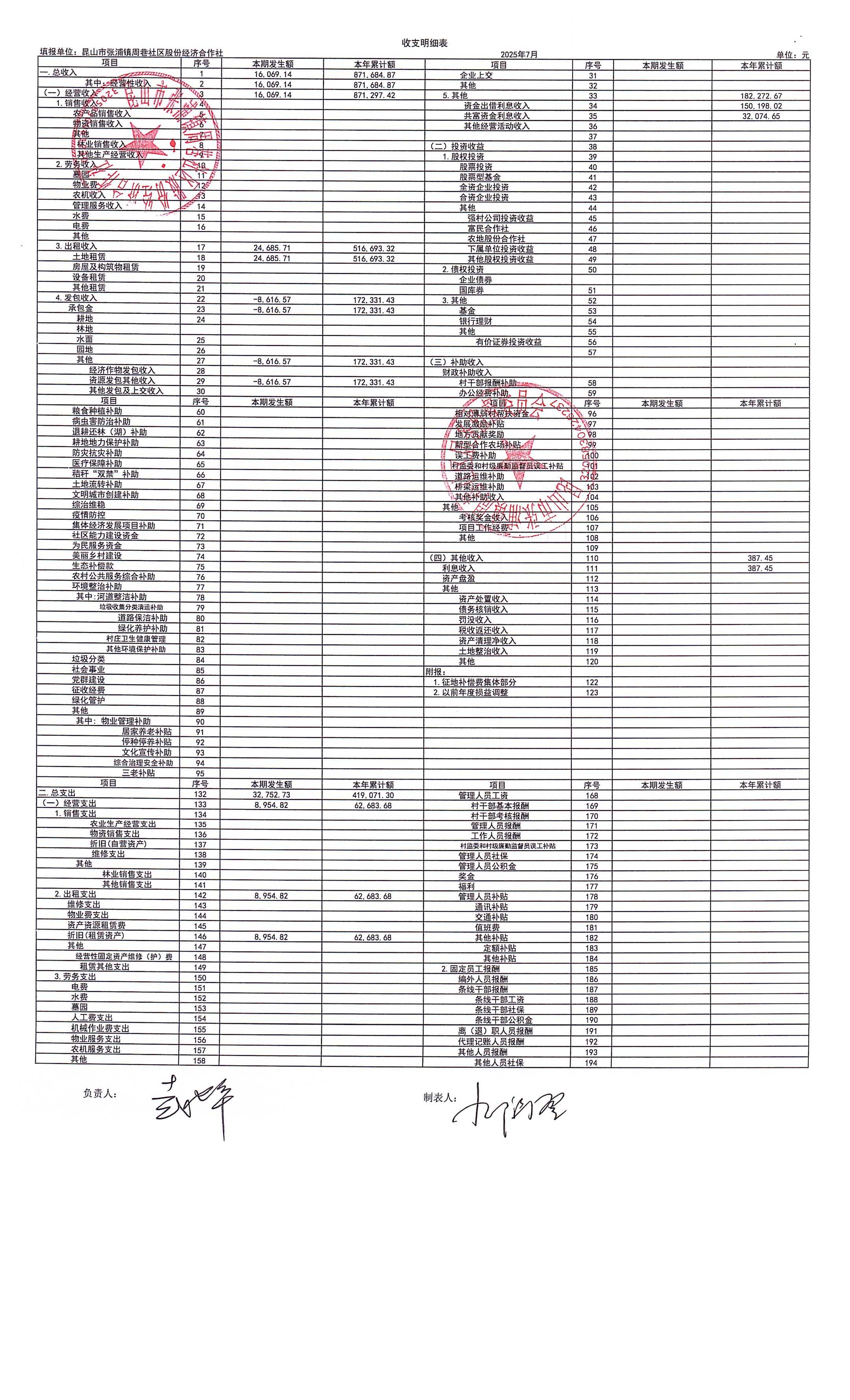 2025年7月財務(wù)定期公開