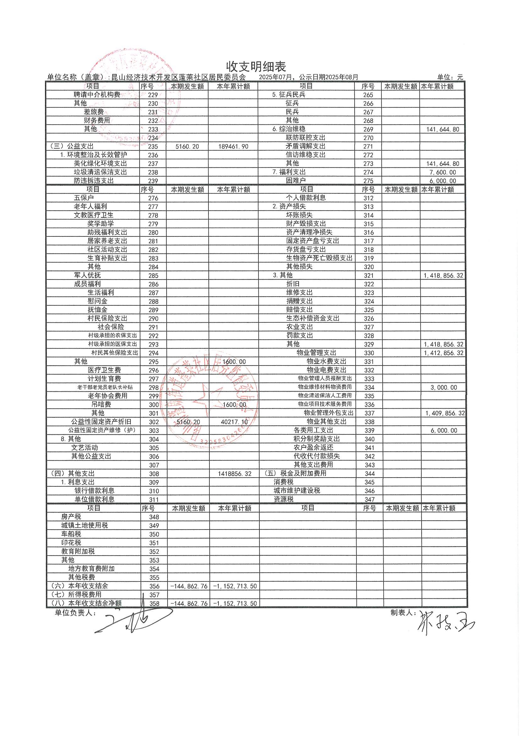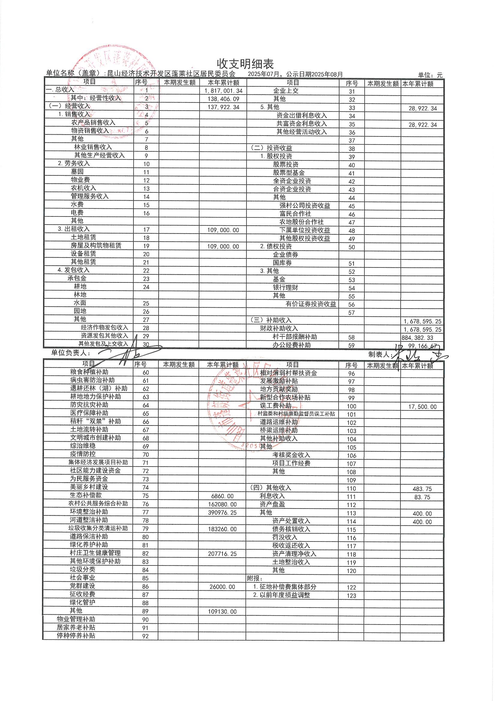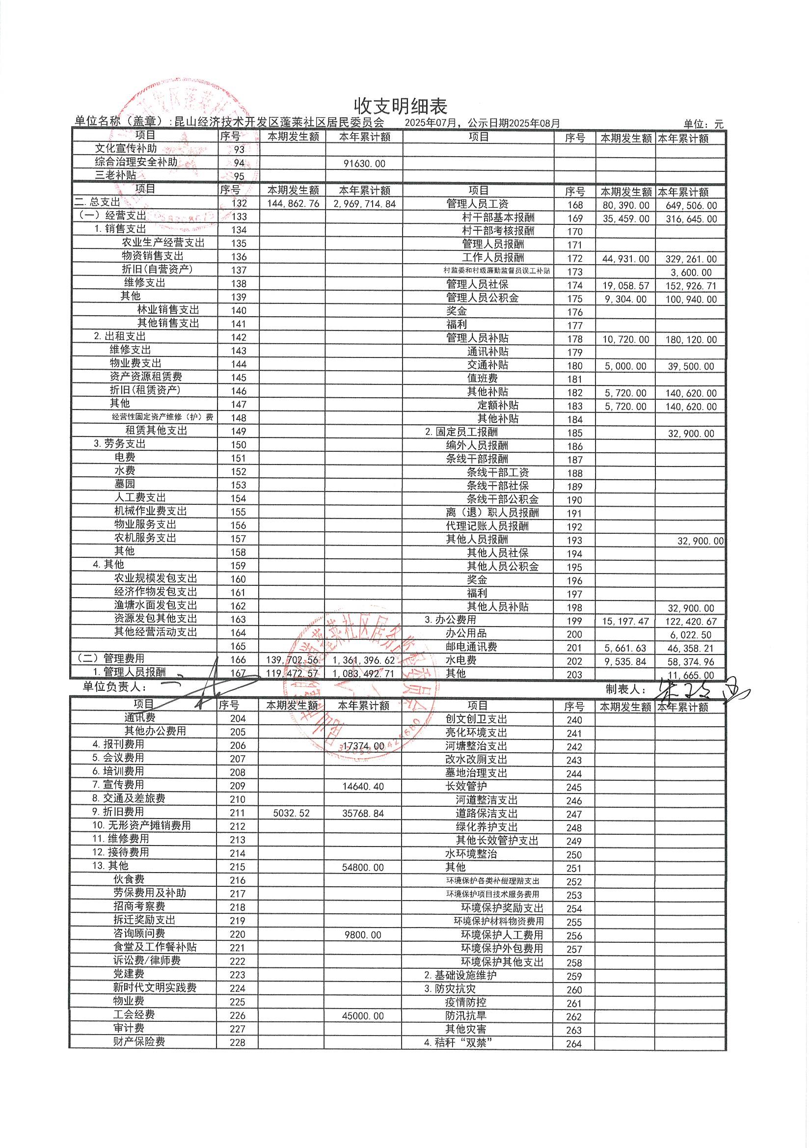 2025年7月財務(wù)公開(蓬萊社區(qū)居委會)