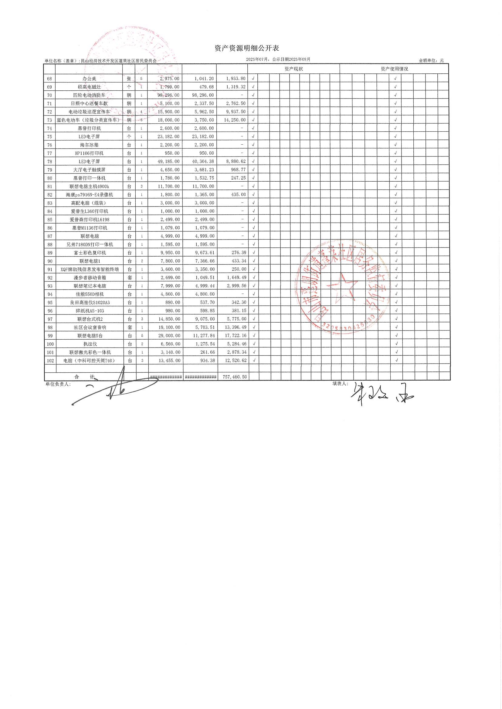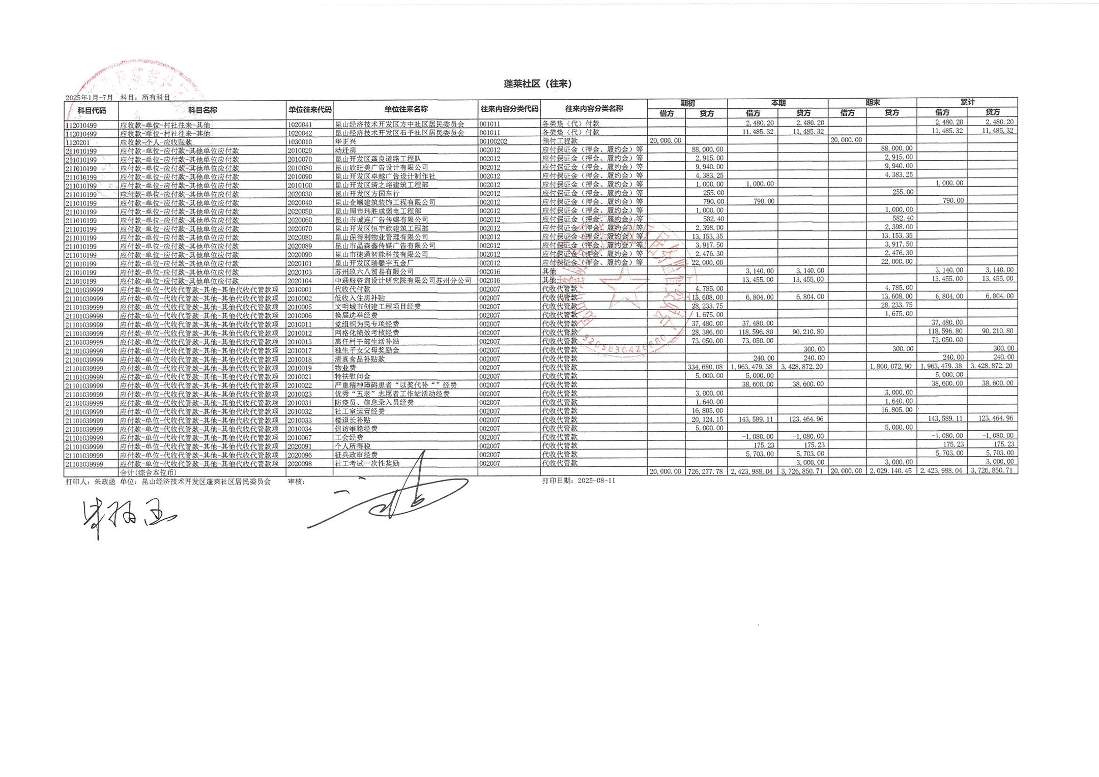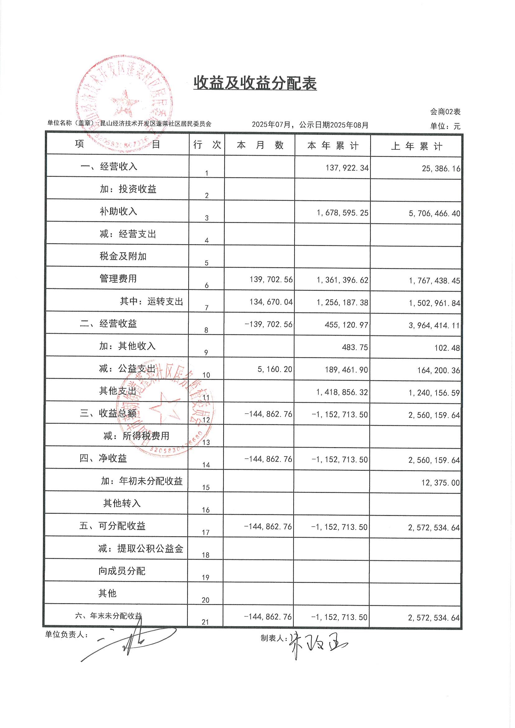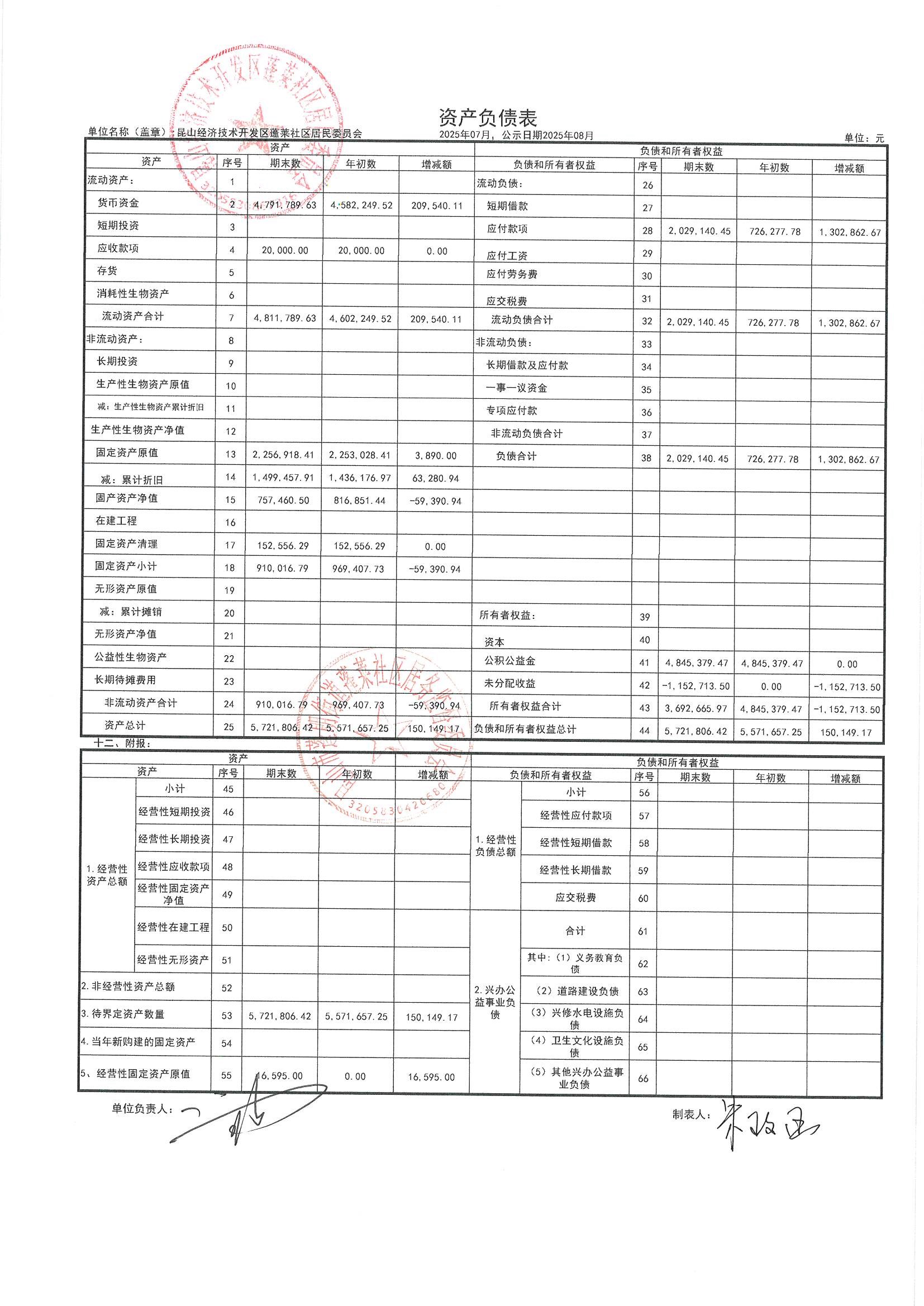 2025年7月財務(wù)公開(蓬萊社區(qū)居委會)