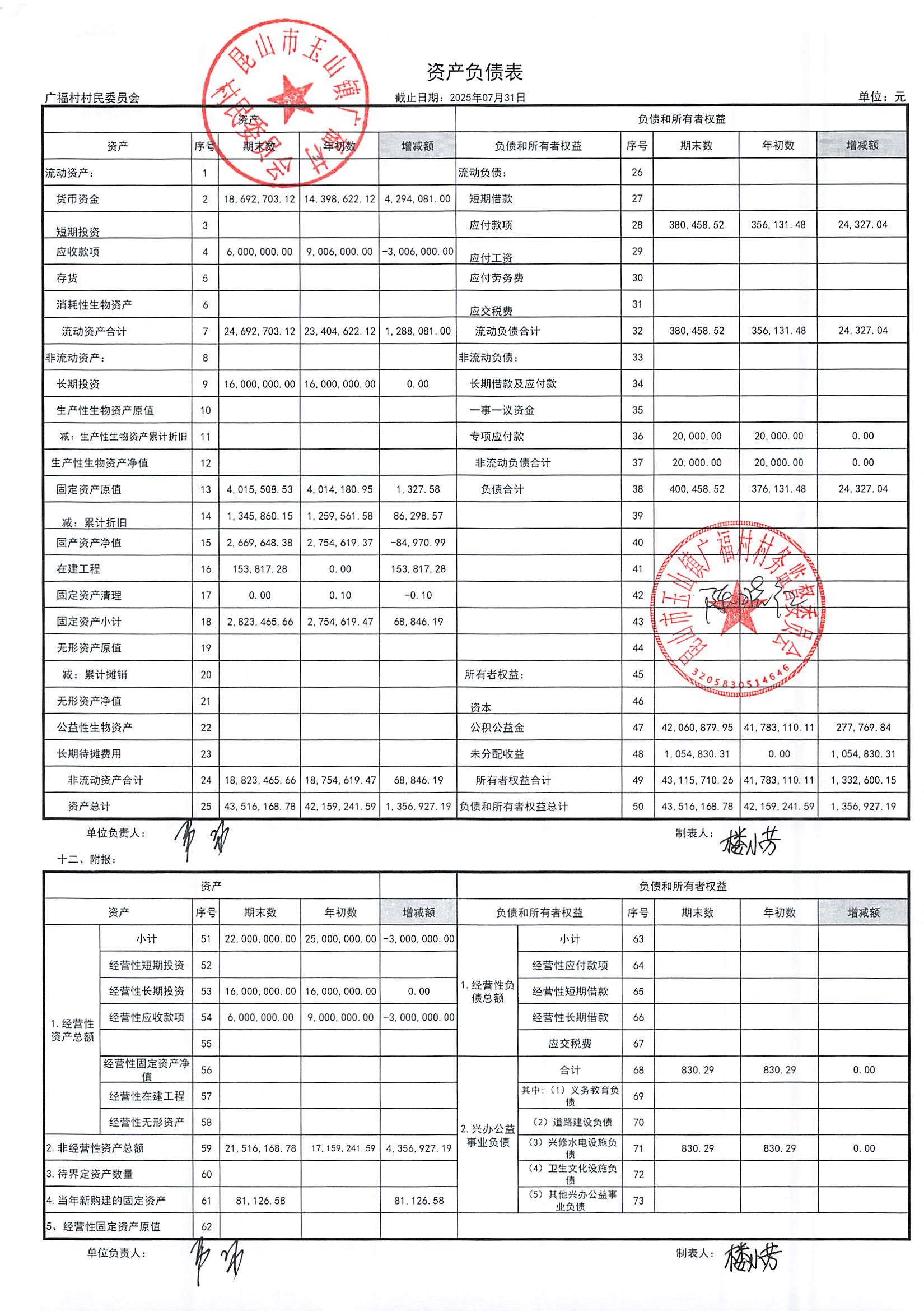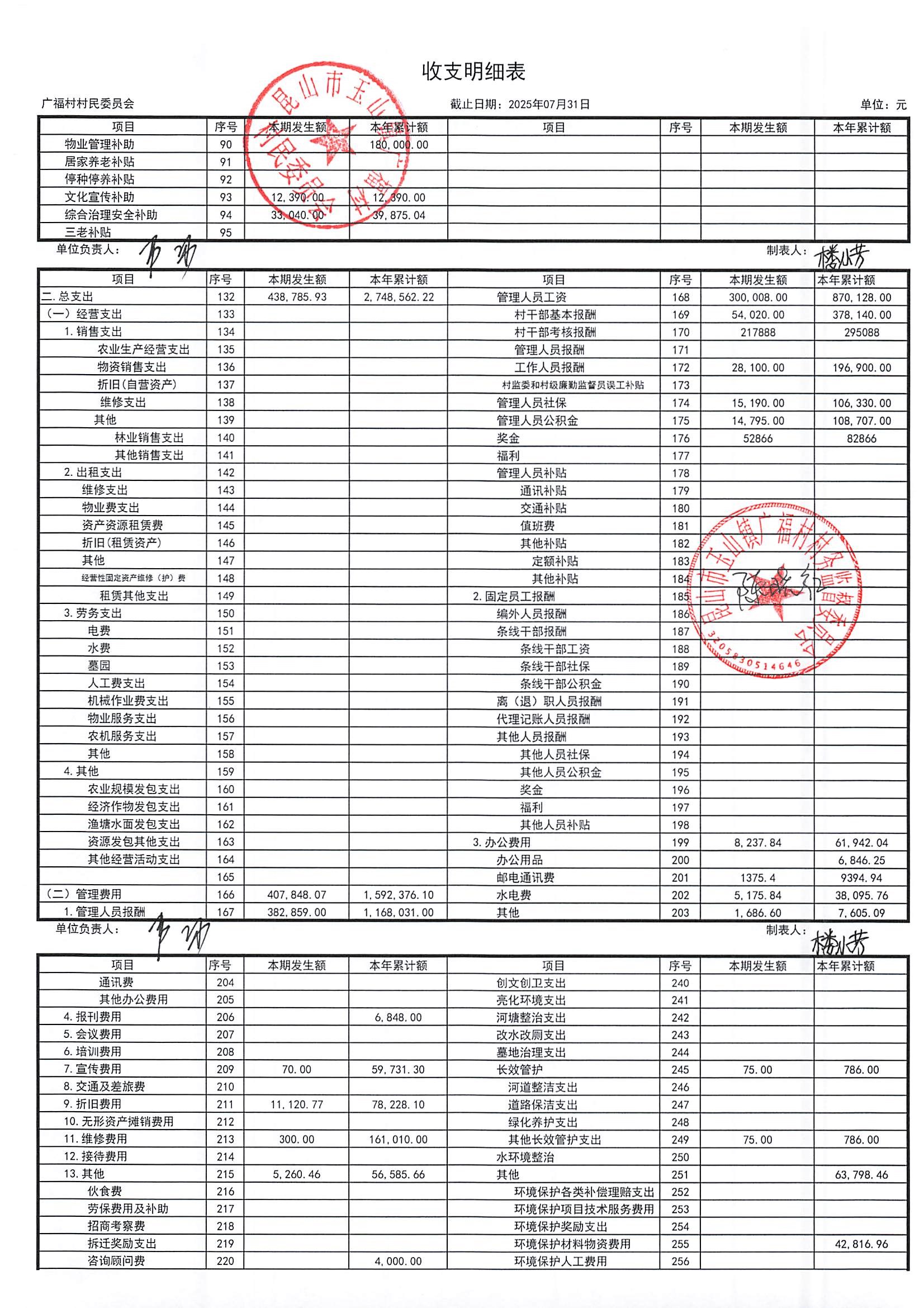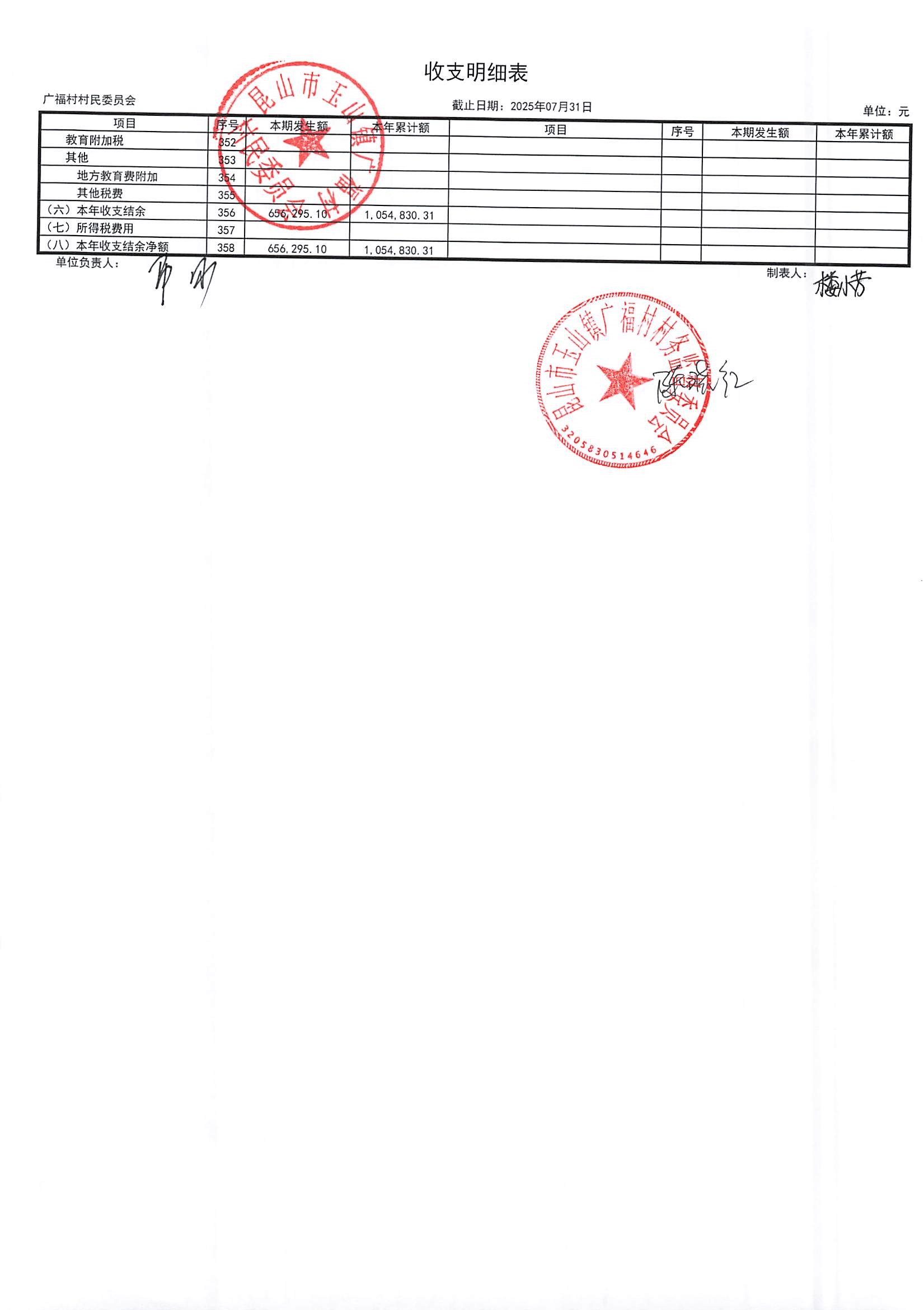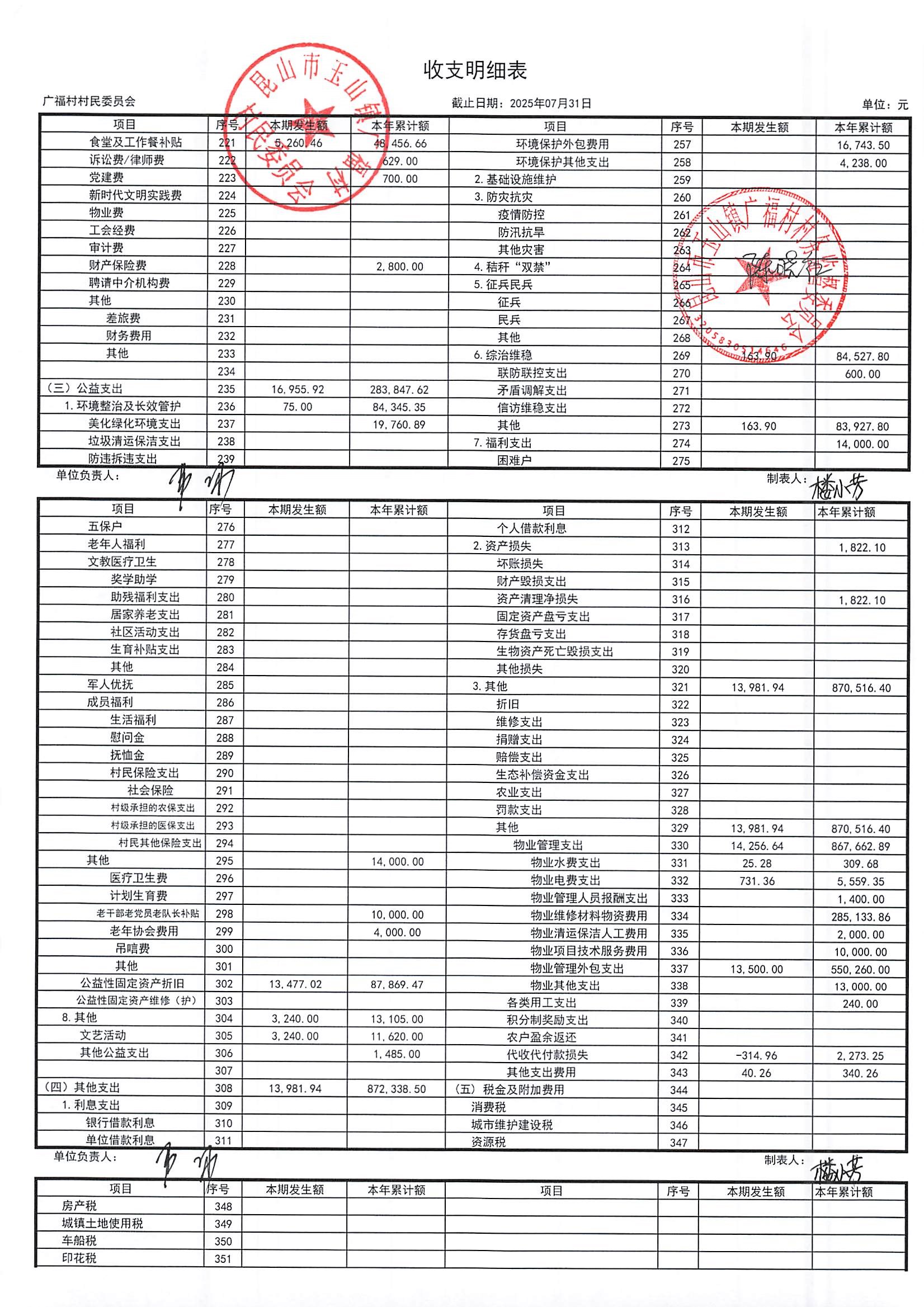 2025年廣福村村委會8月份財務公開內(nèi)容