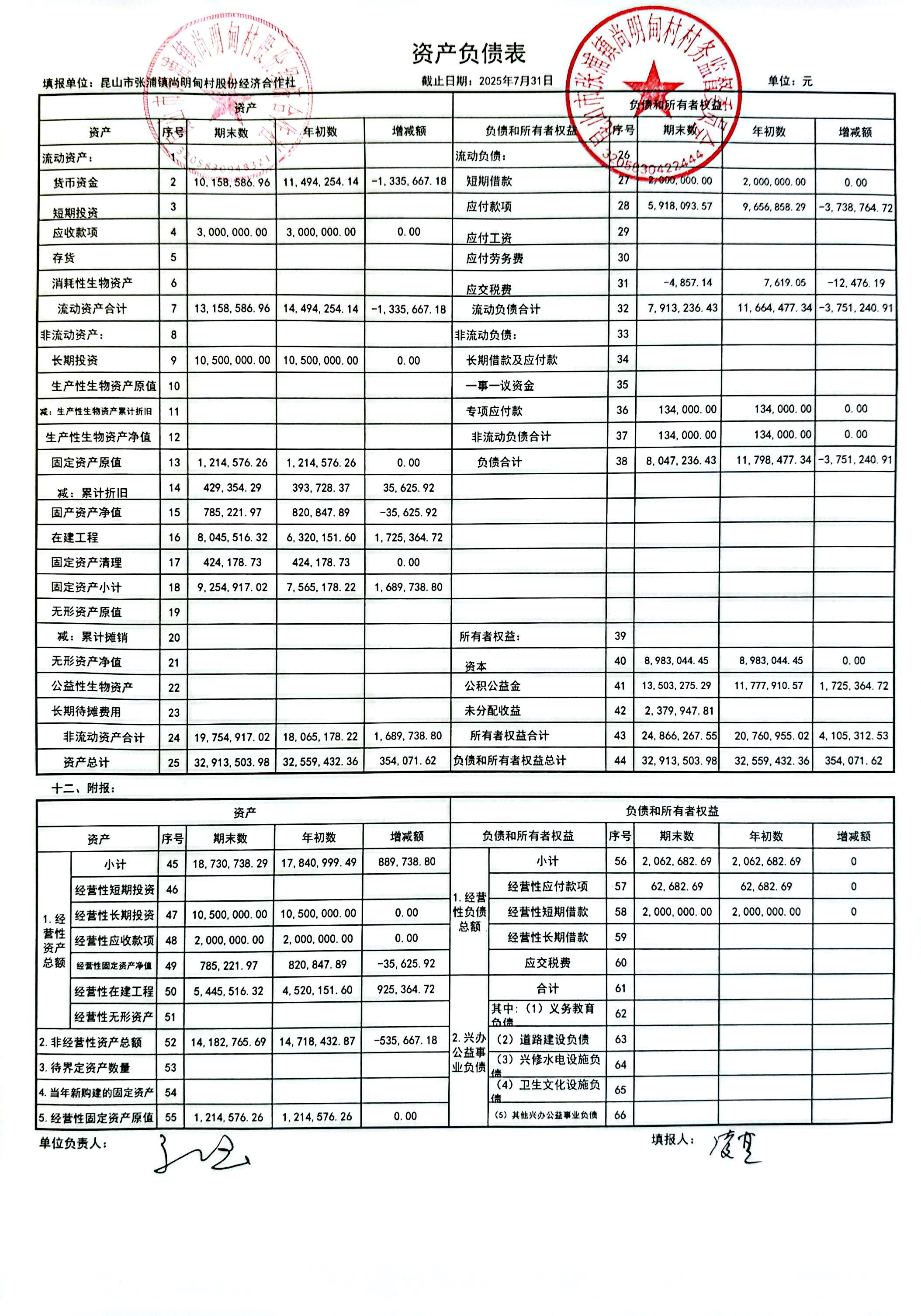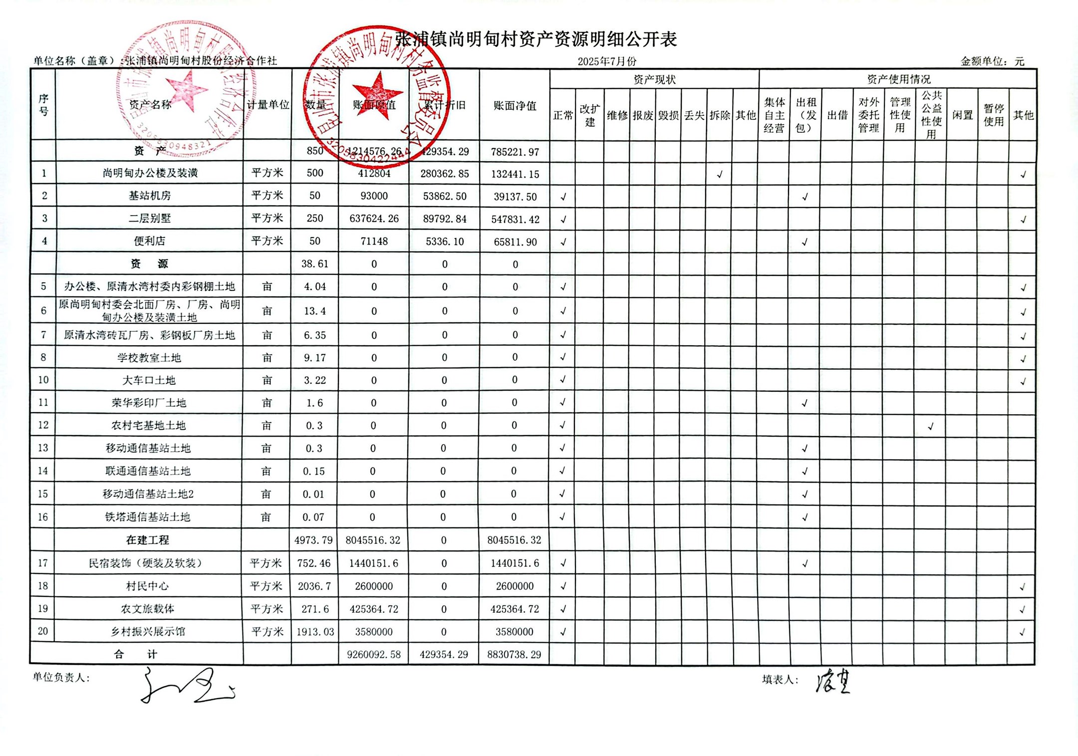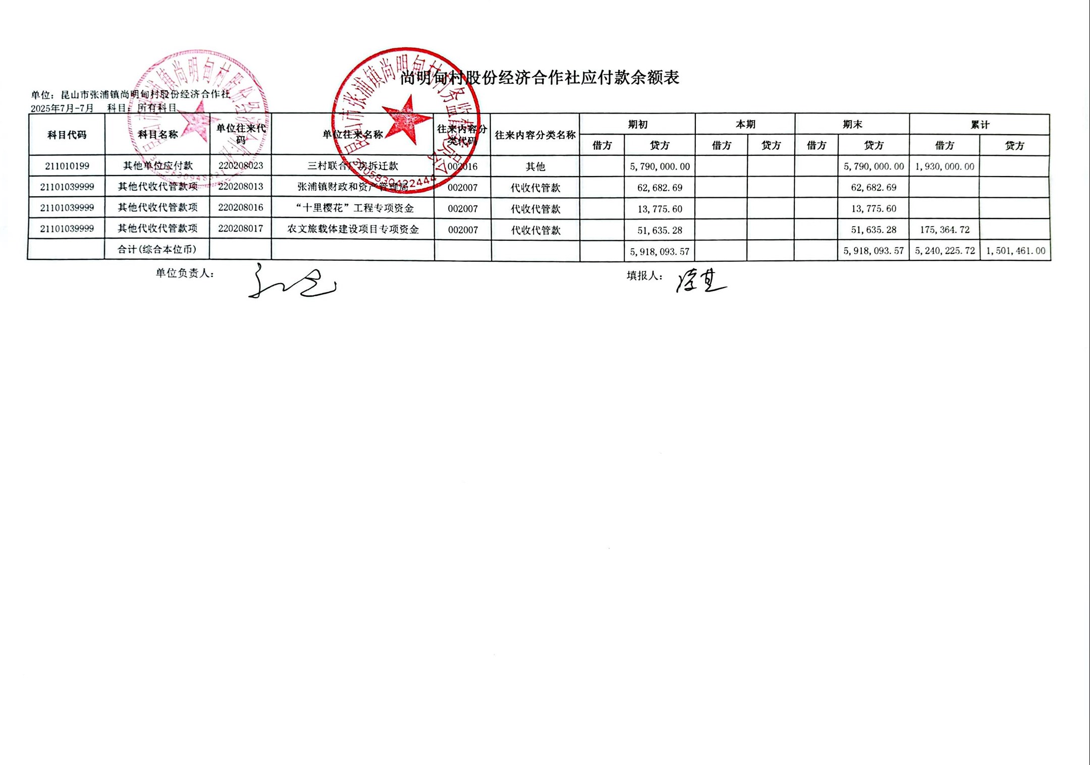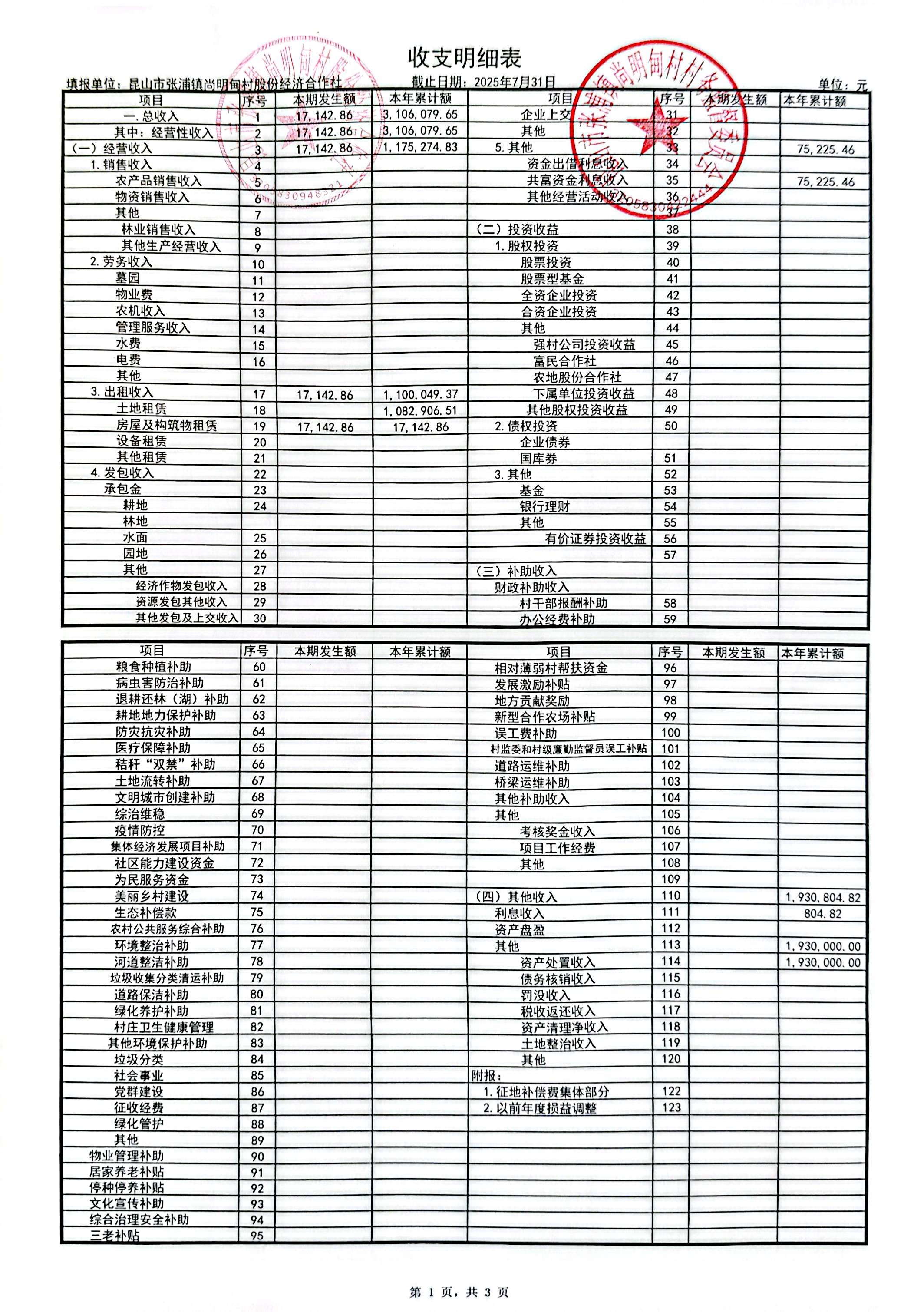 尚明甸村股份經(jīng)濟(jì)合作社2025年7月財(cái)務(wù)公開