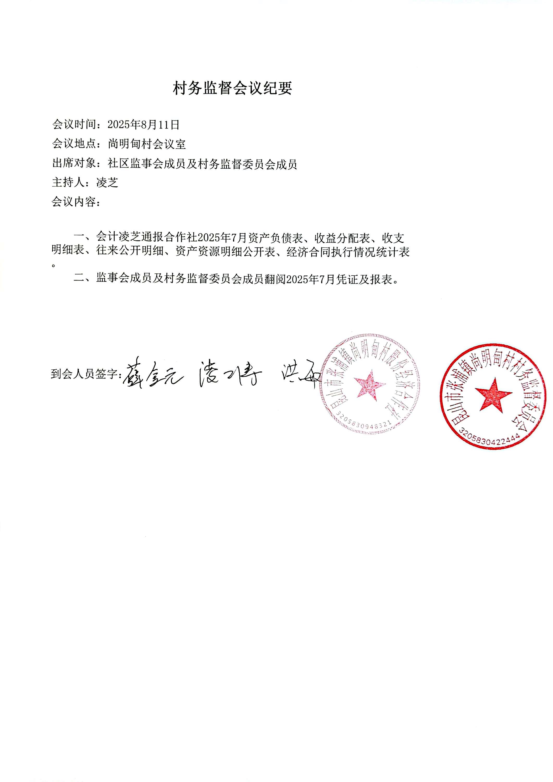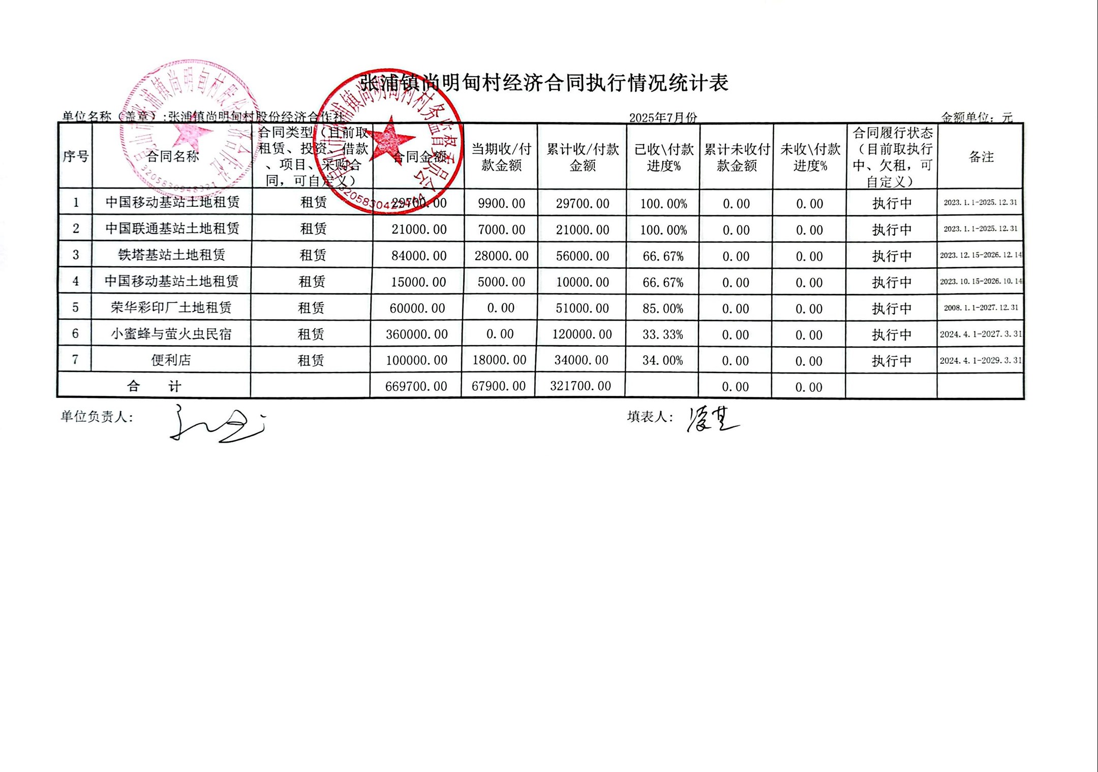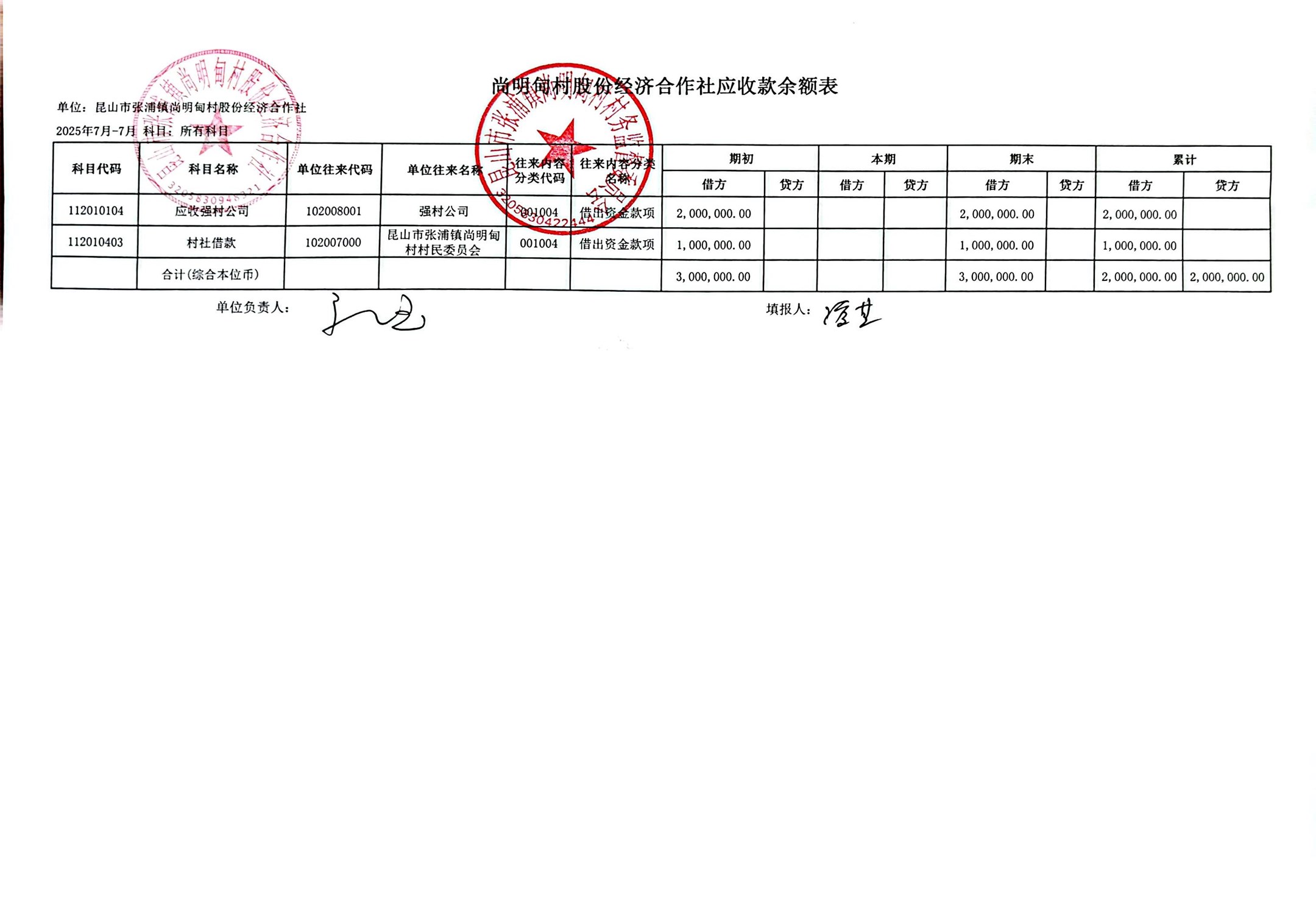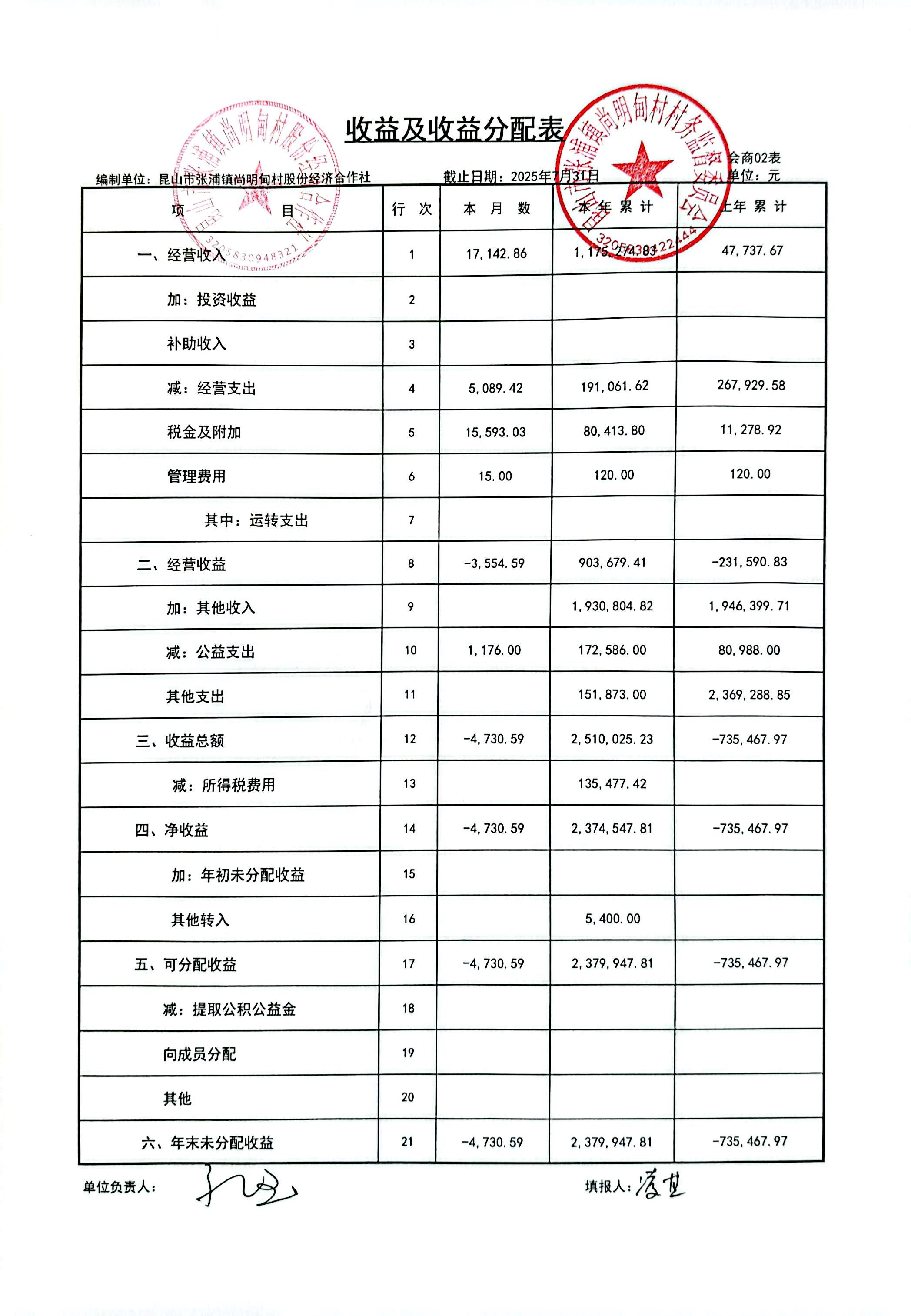 尚明甸村股份經(jīng)濟(jì)合作社2025年7月財(cái)務(wù)公開