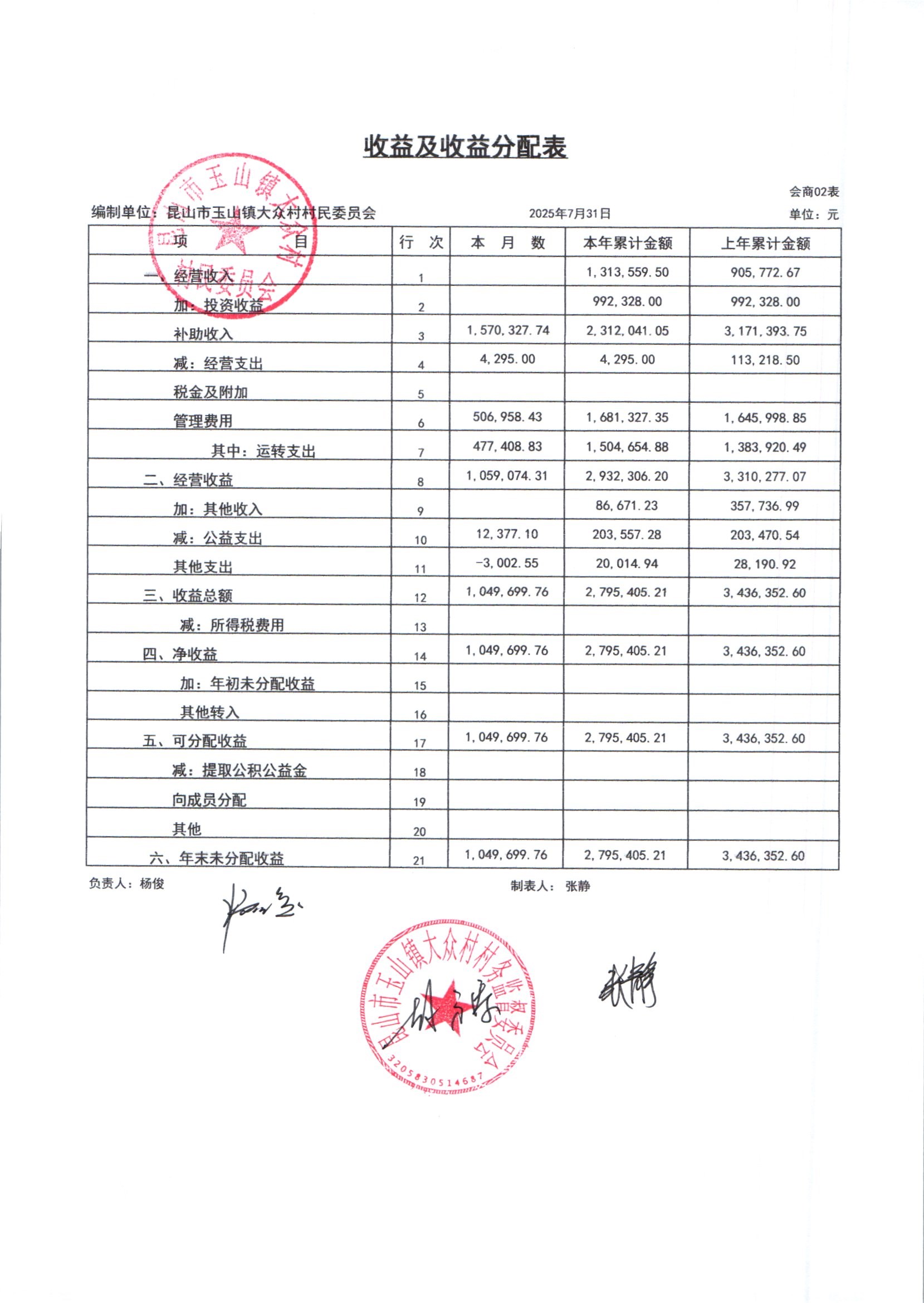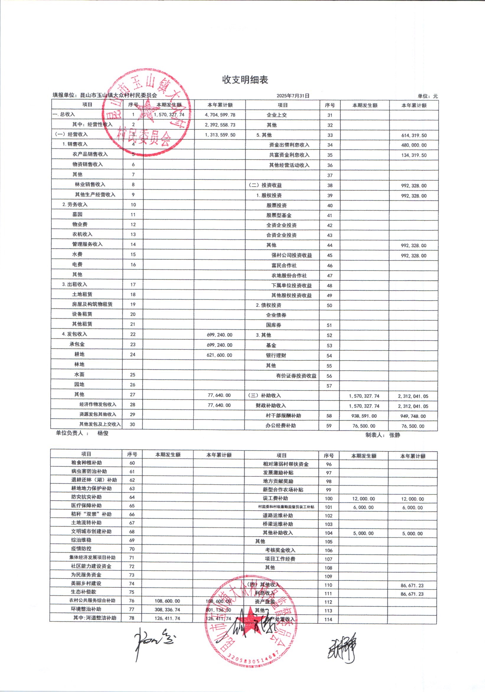 大眾村2025年8月份村委會(huì)財(cái)務(wù)公開