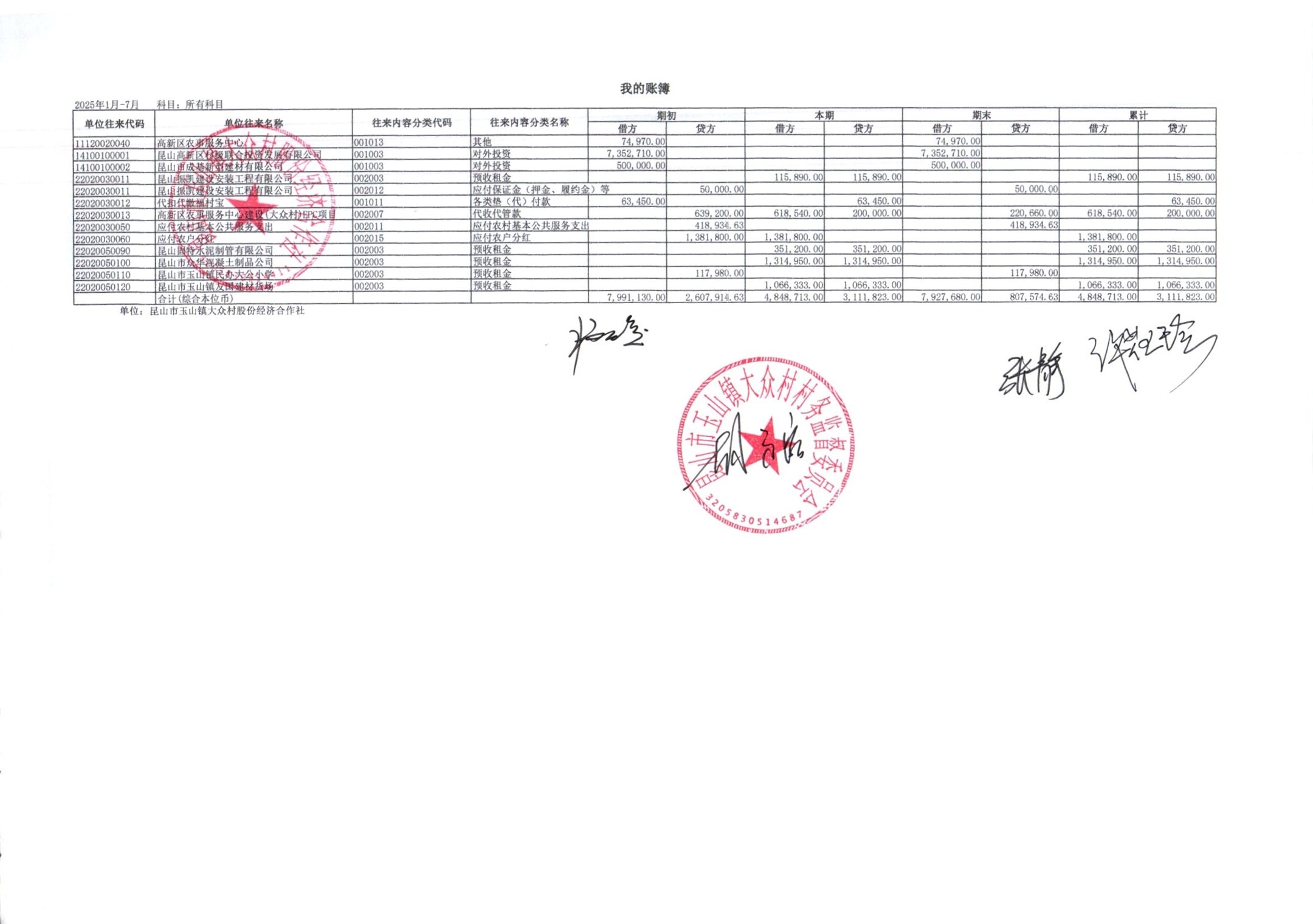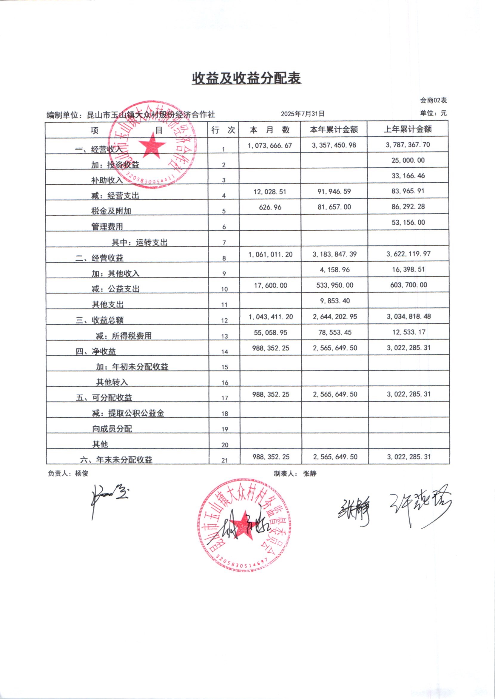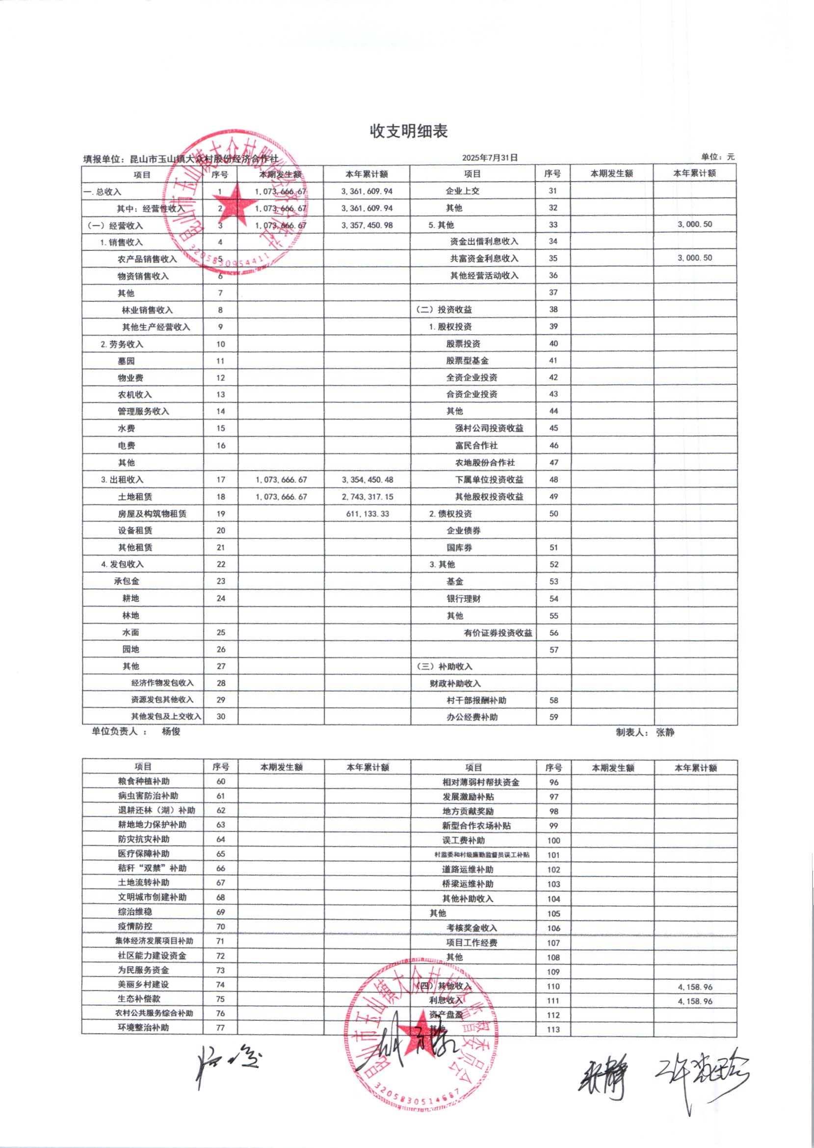 大眾村2025年8月份股份經(jīng)濟(jì)合作社財(cái)務(wù)公開