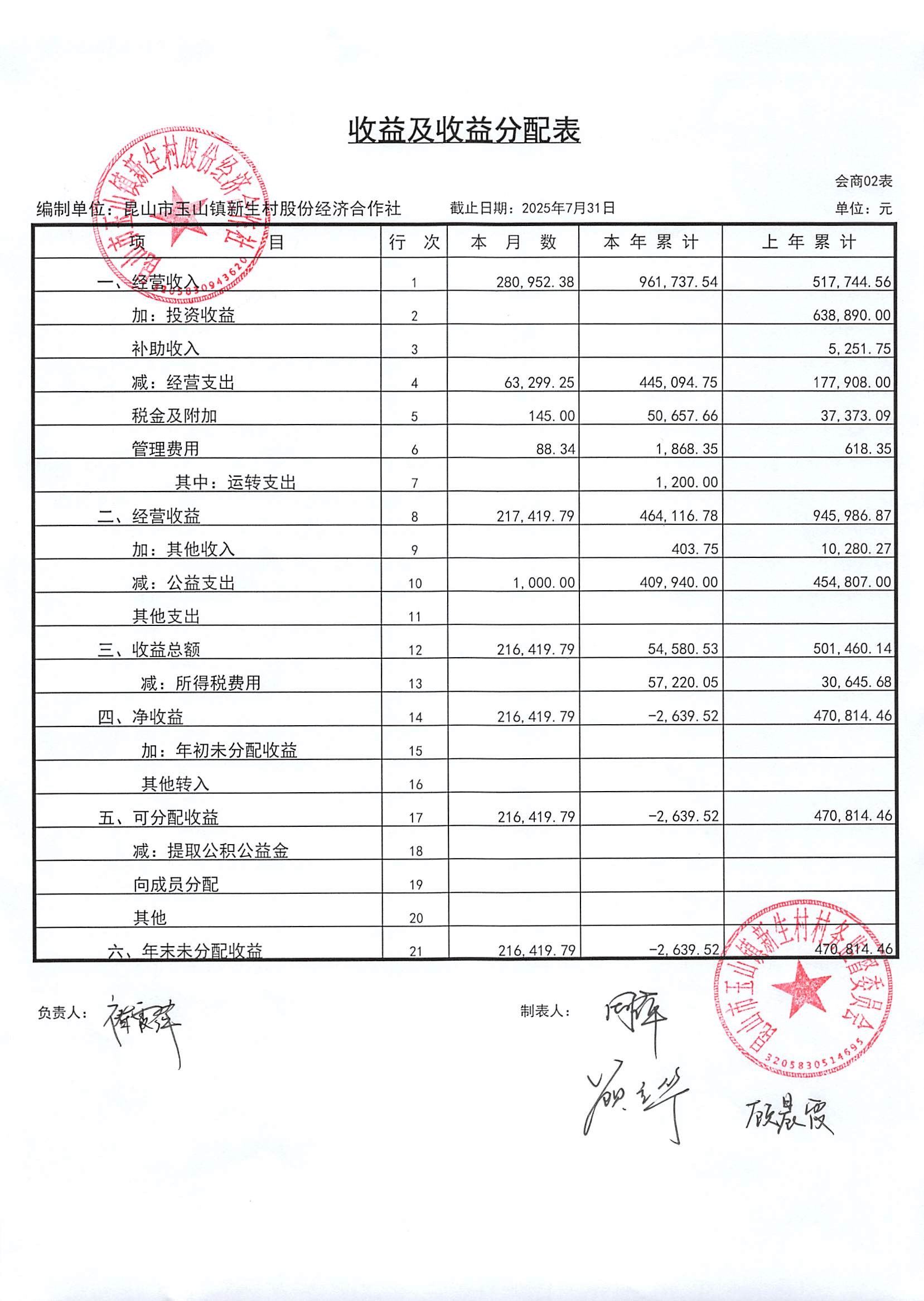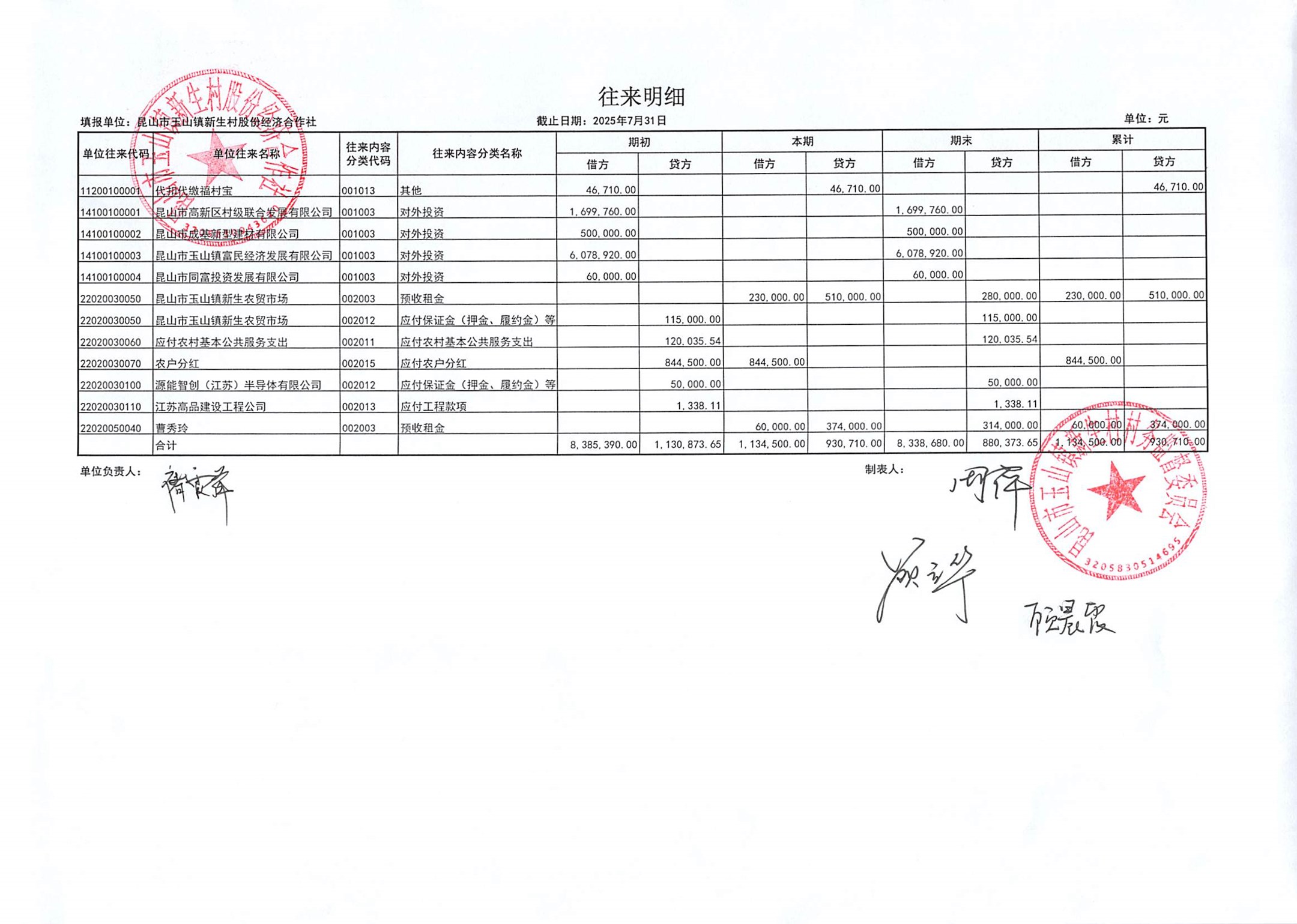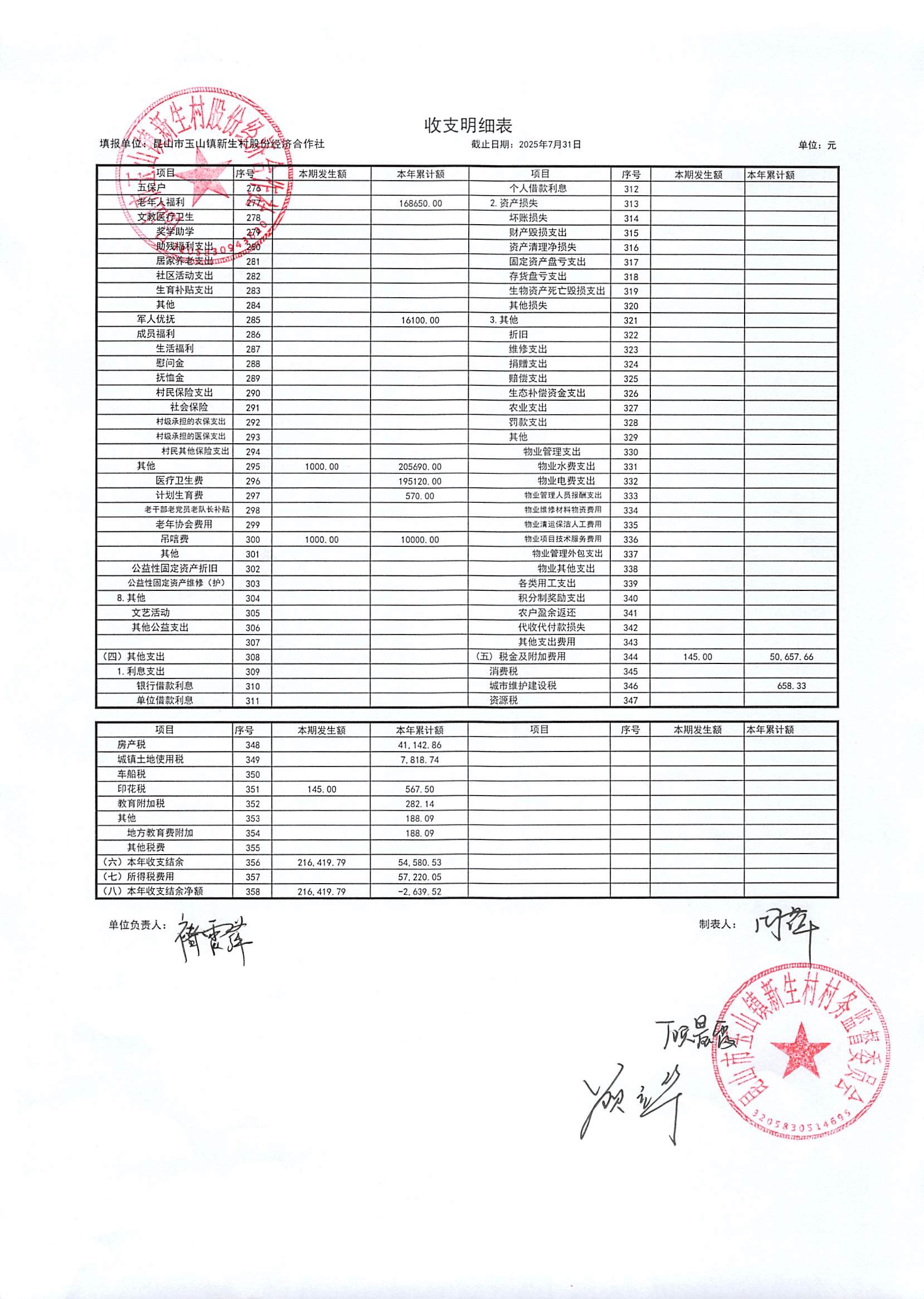 2025年8月新生村股份經(jīng)濟(jì)合作社財務(wù)公開