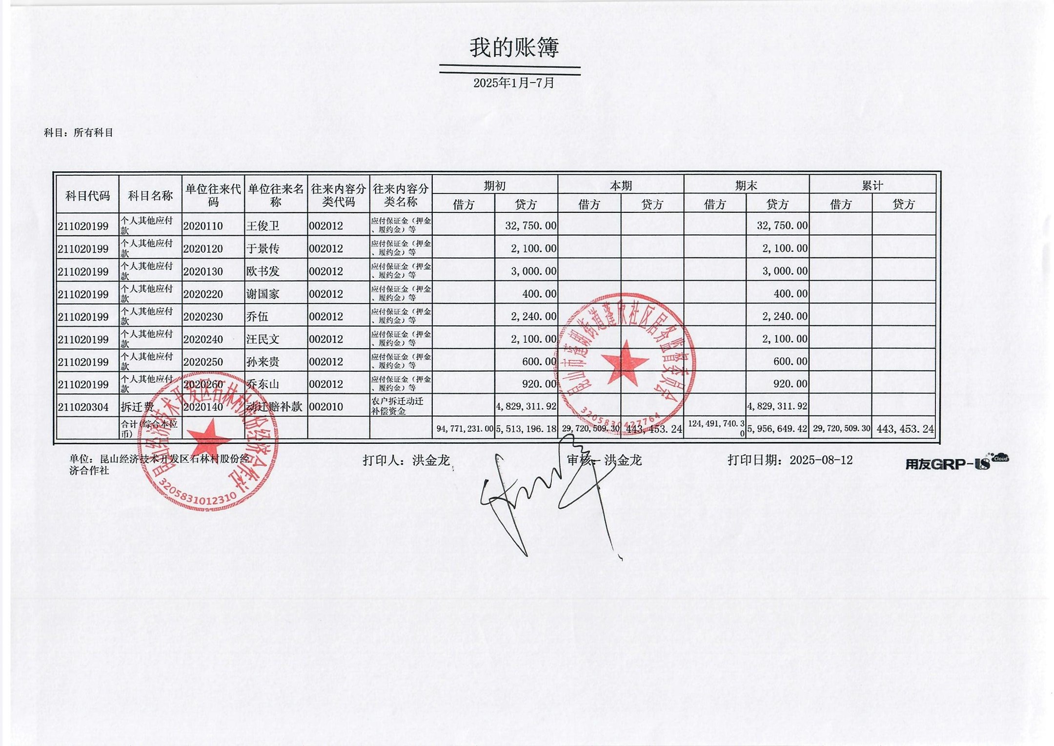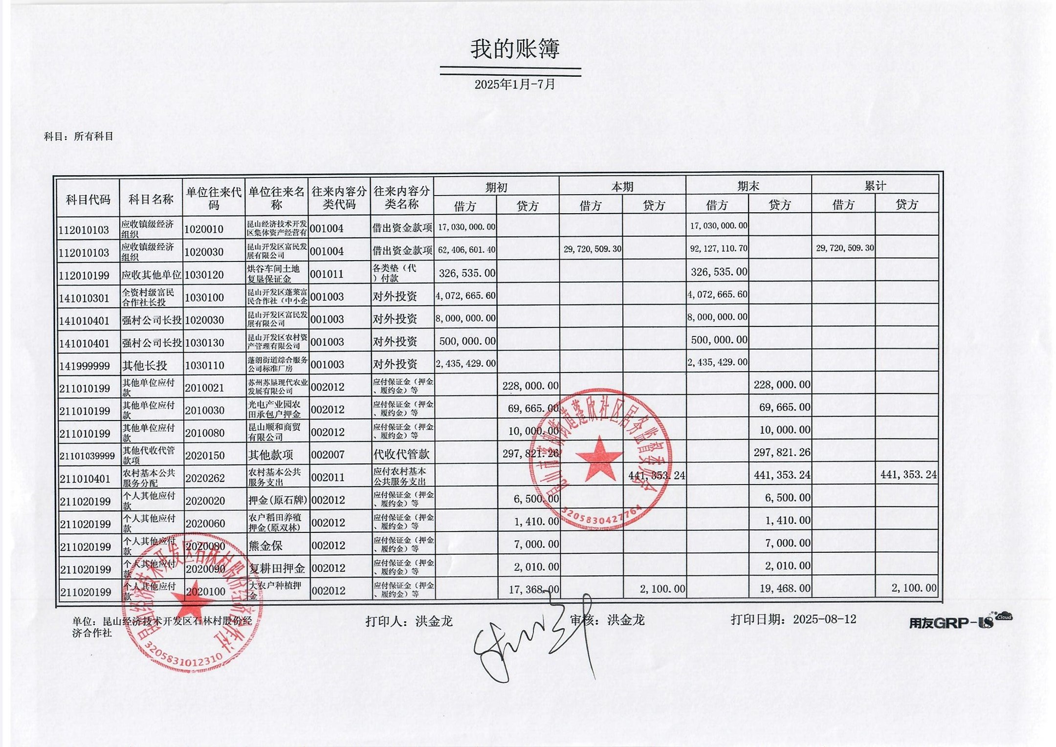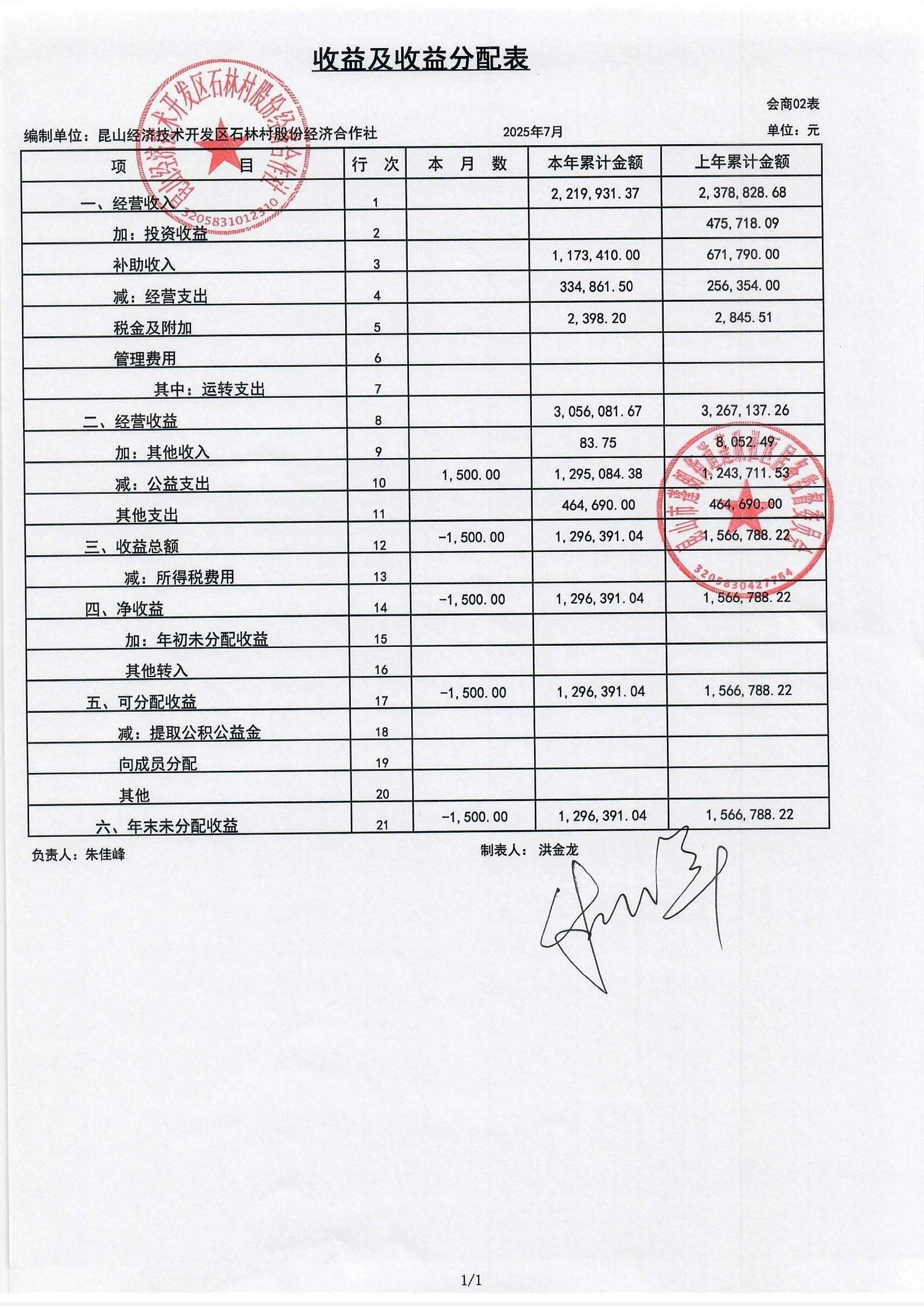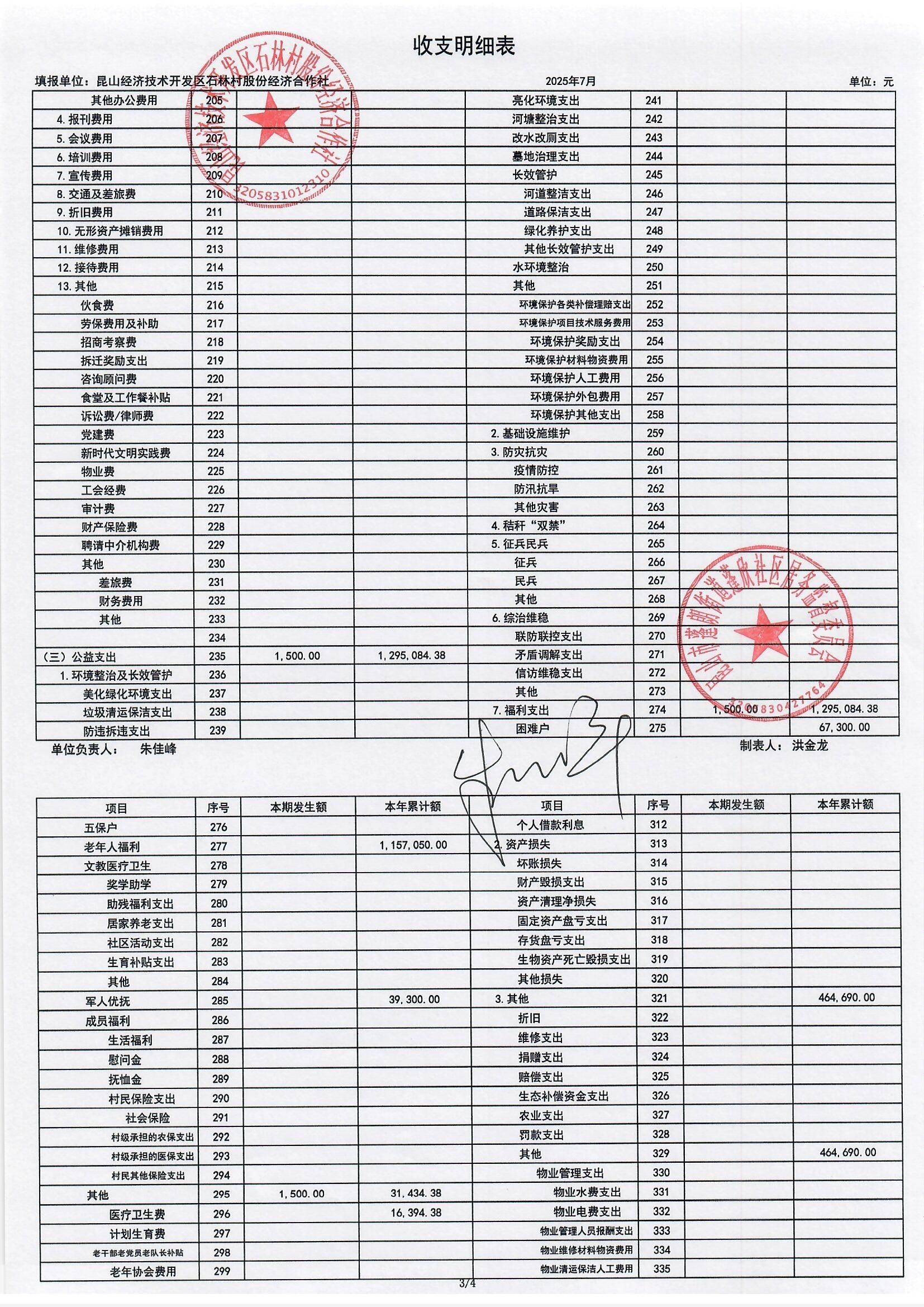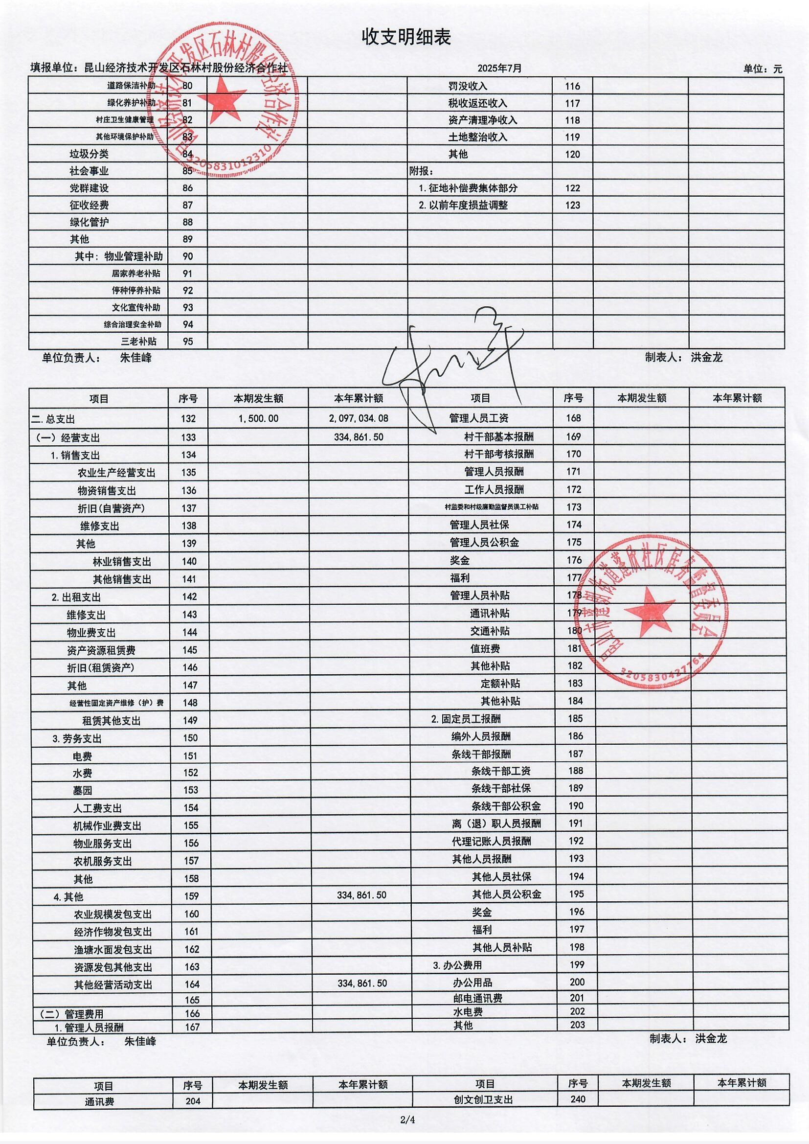 2025年7月份石林村股份經(jīng)濟合作社財務(wù)公開