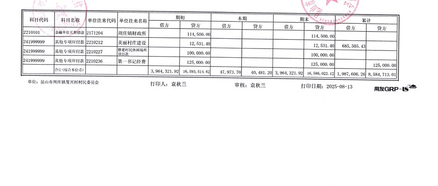復(fù)興村2025年7月財(cái)務(wù)公開(kāi)