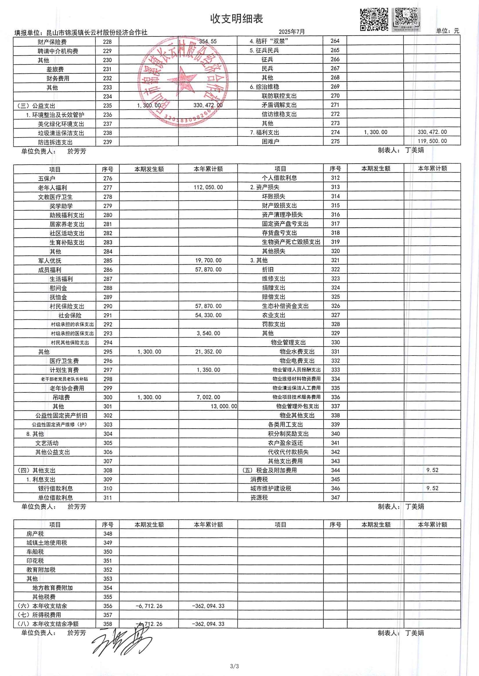 2025年第三季度財(cái)務(wù)公開(kāi)定期公開(kāi)(社區(qū))(7月份)