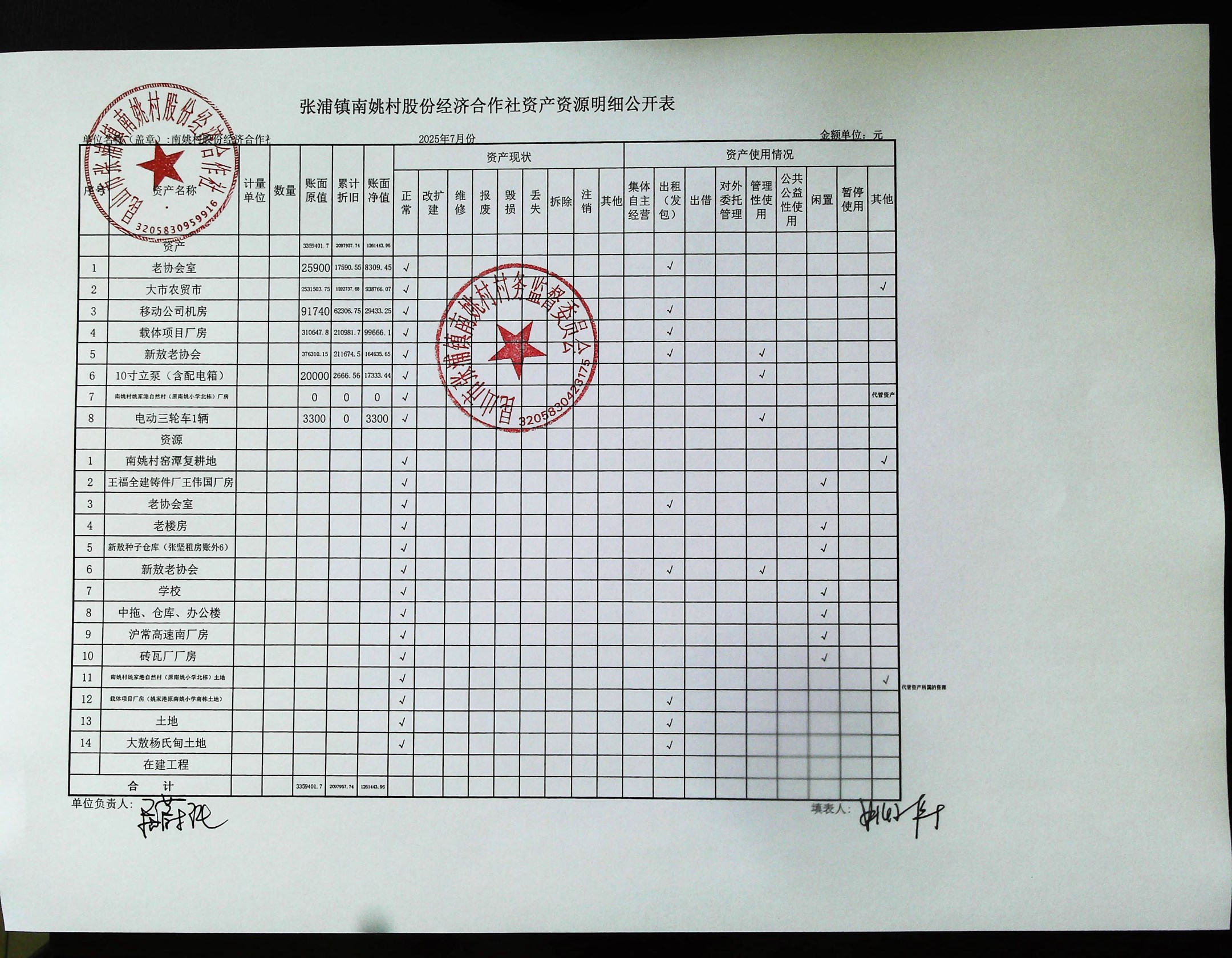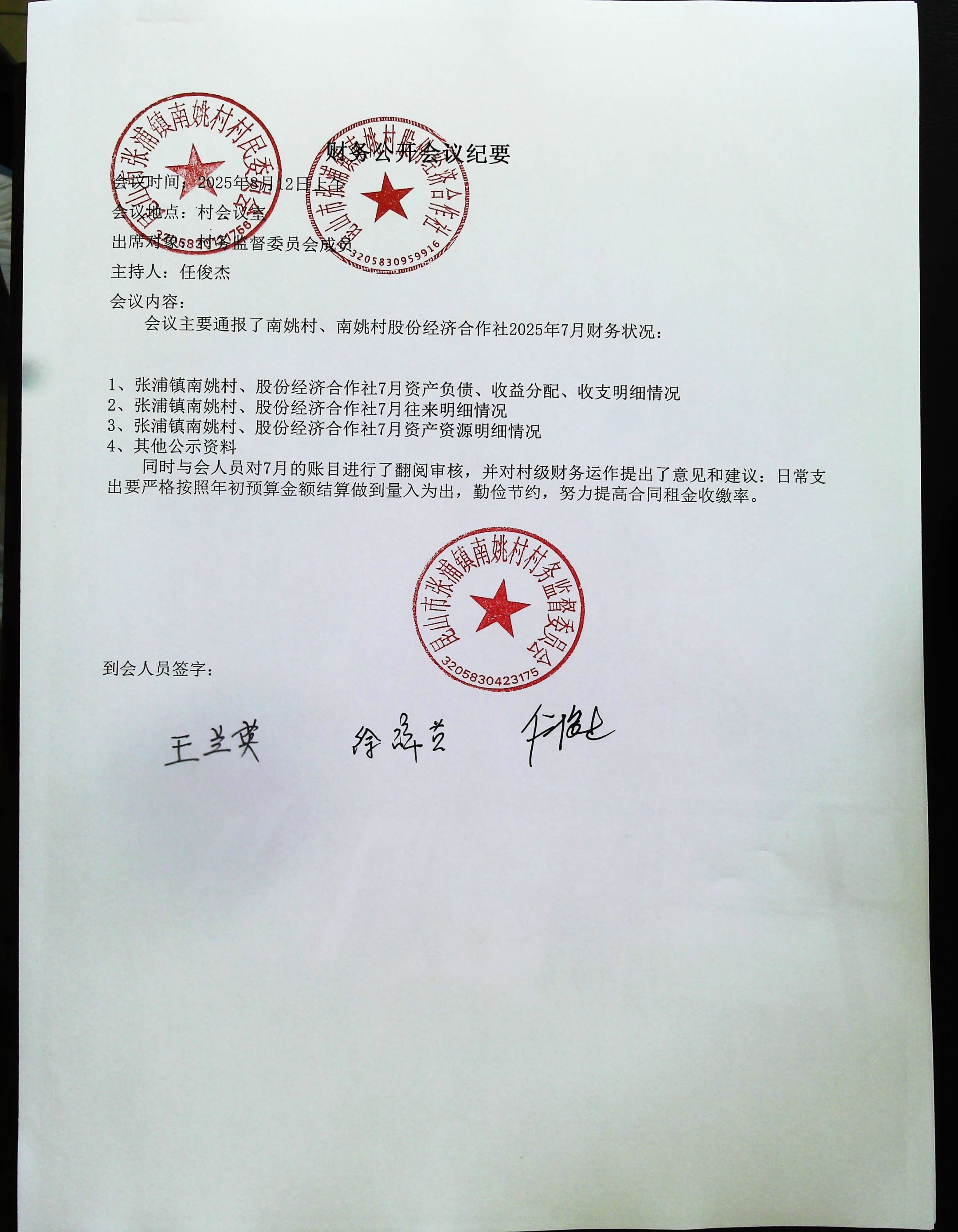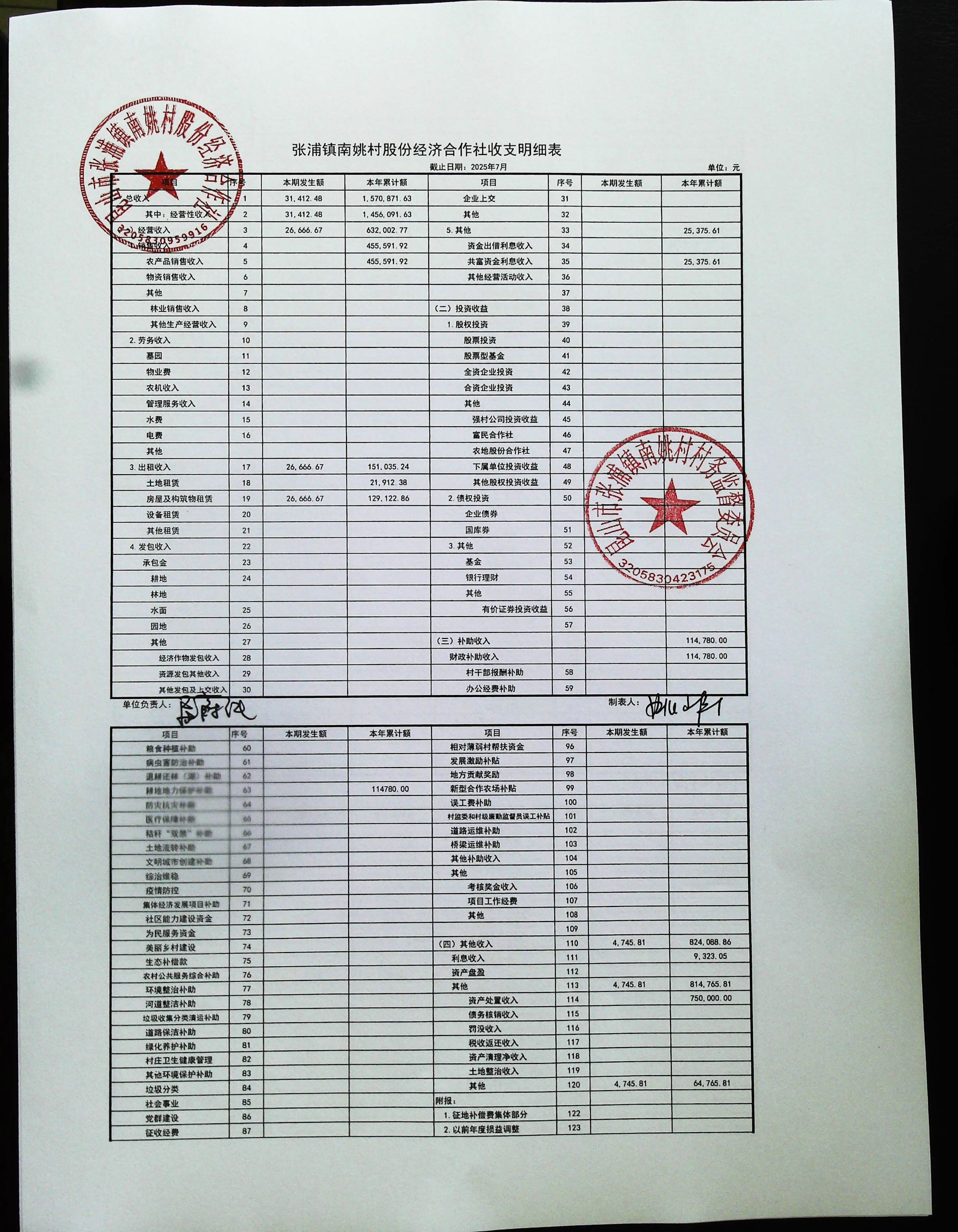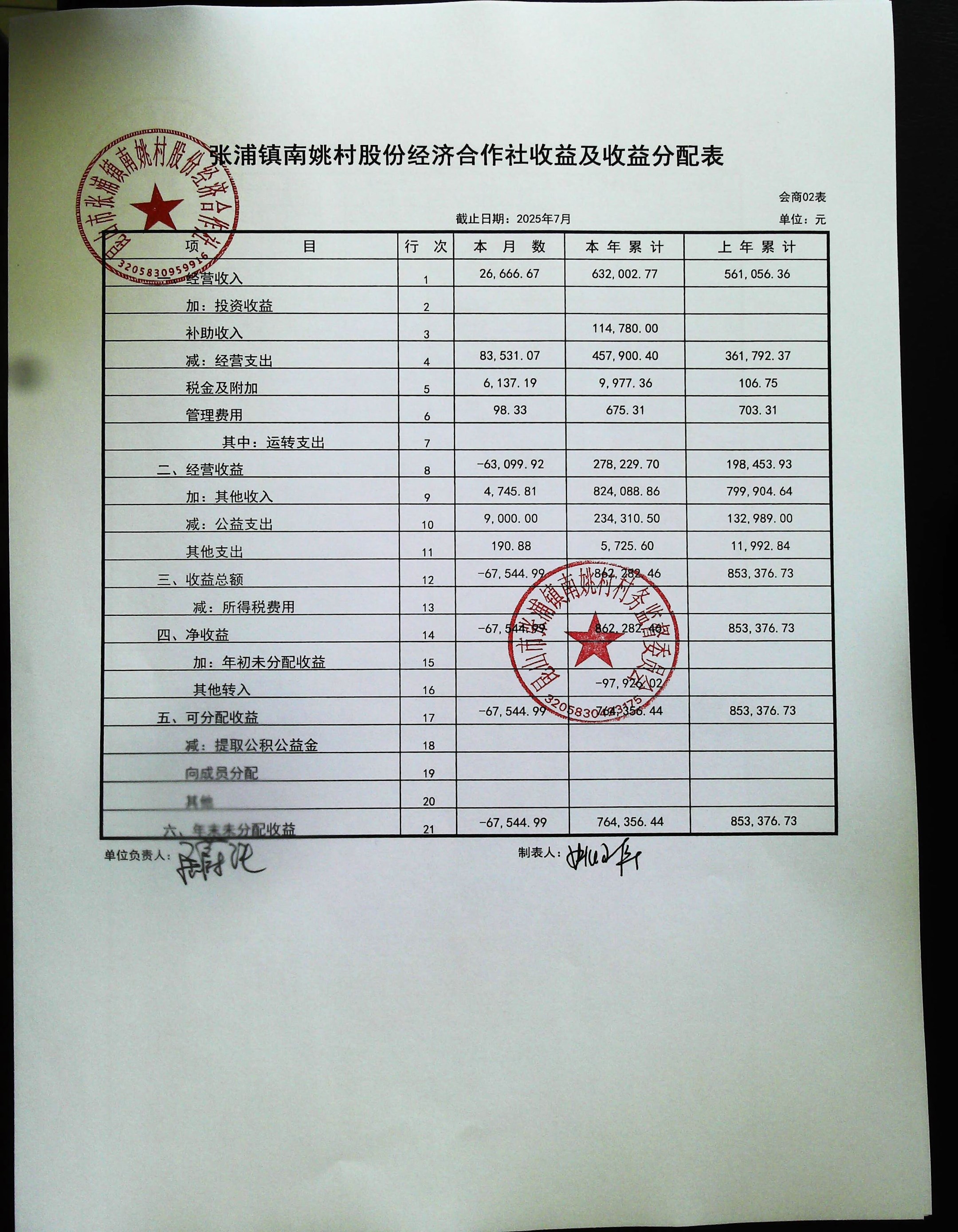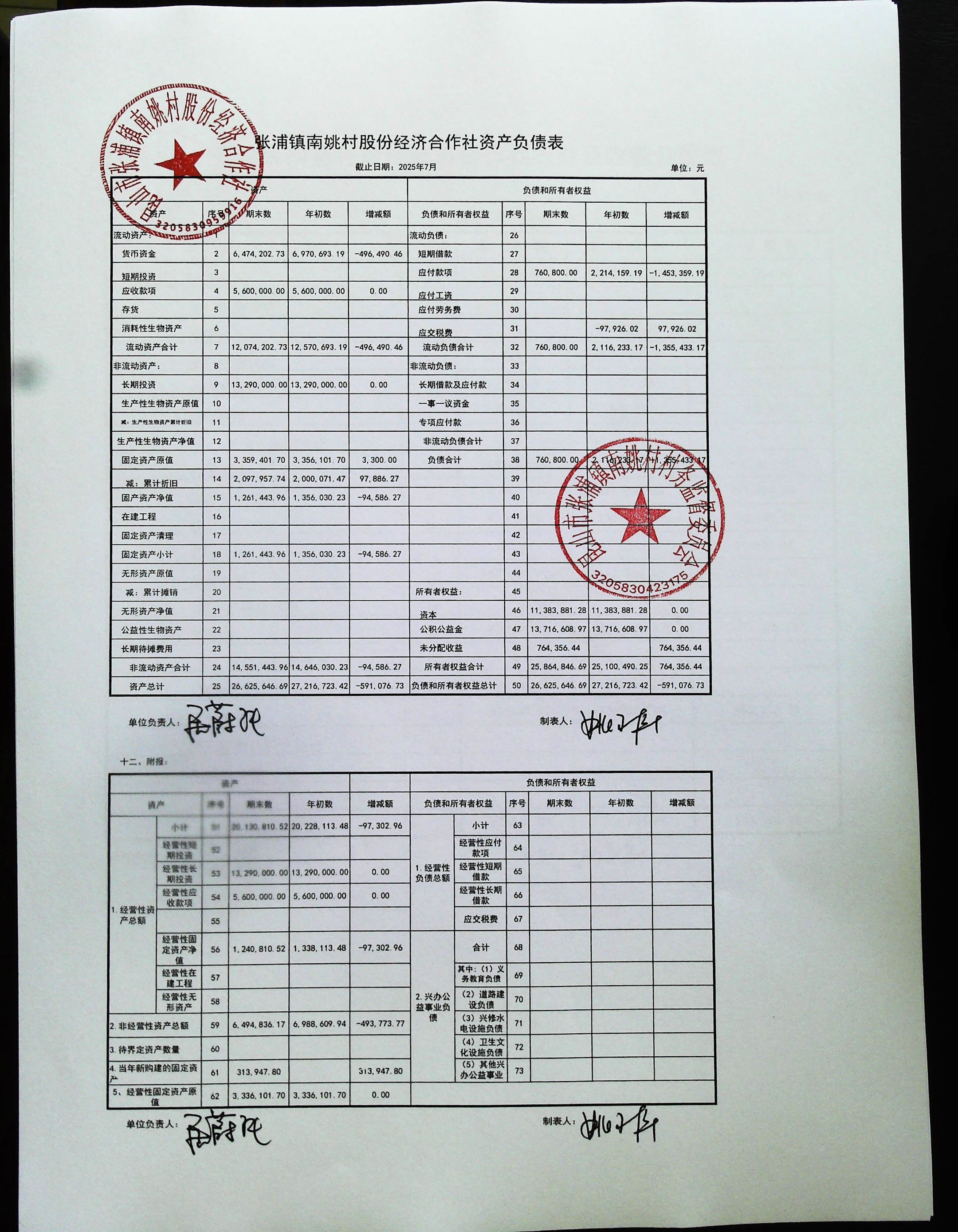 2025年7月南姚村股份經(jīng)濟(jì)財務(wù)公開