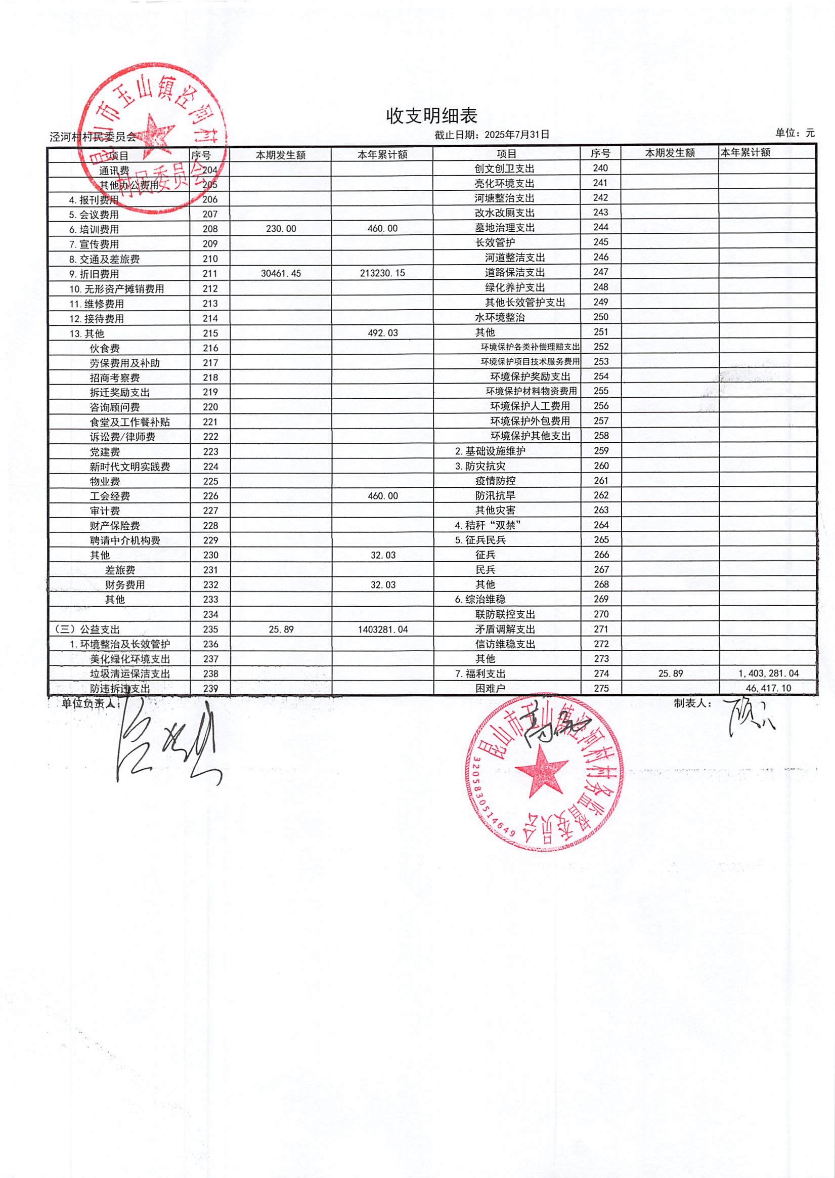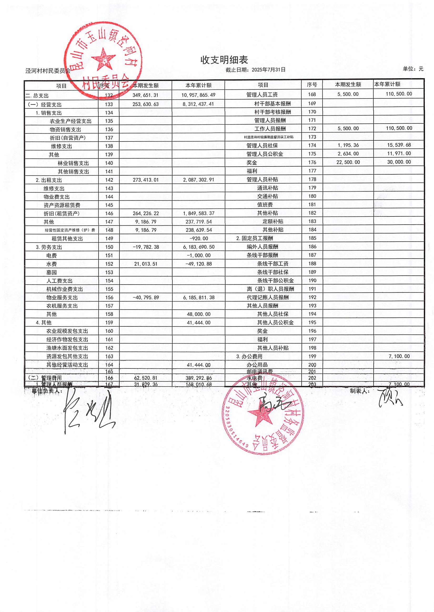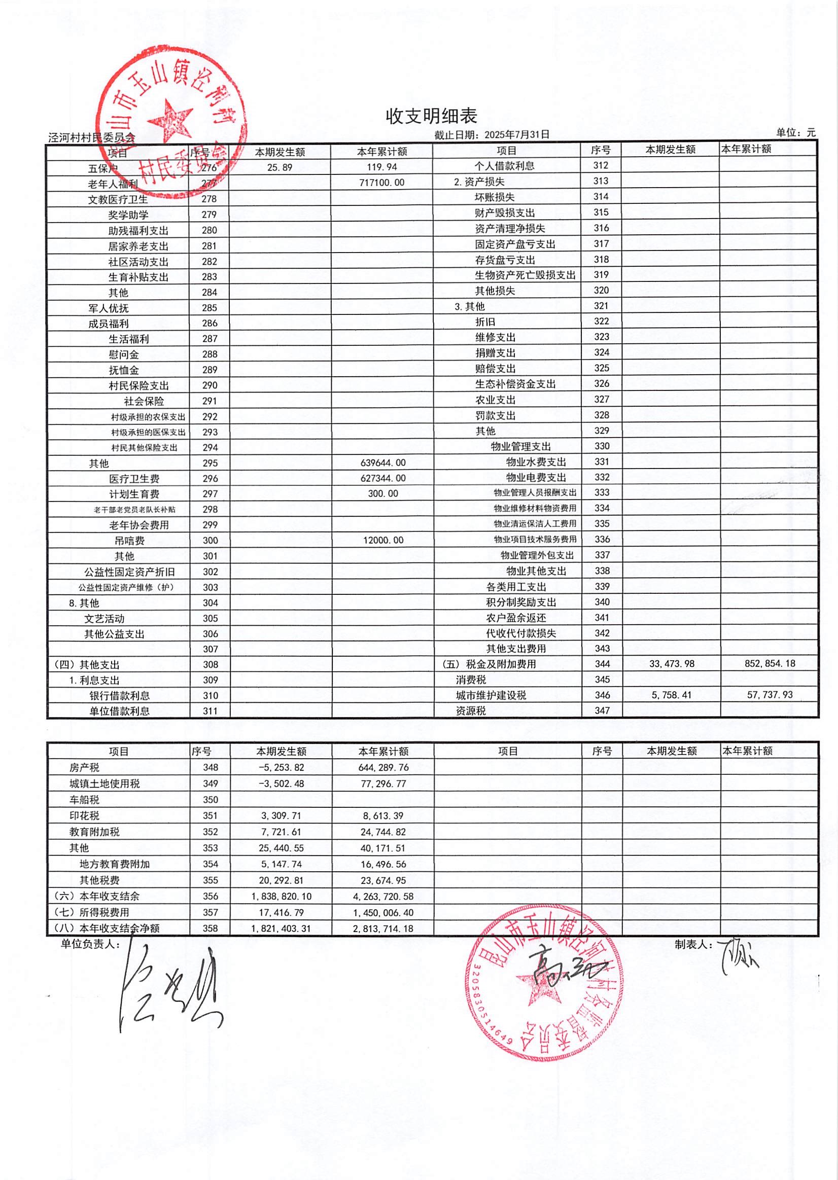 2025年八月份涇河村財(cái)務(wù)公開(村委會(huì))