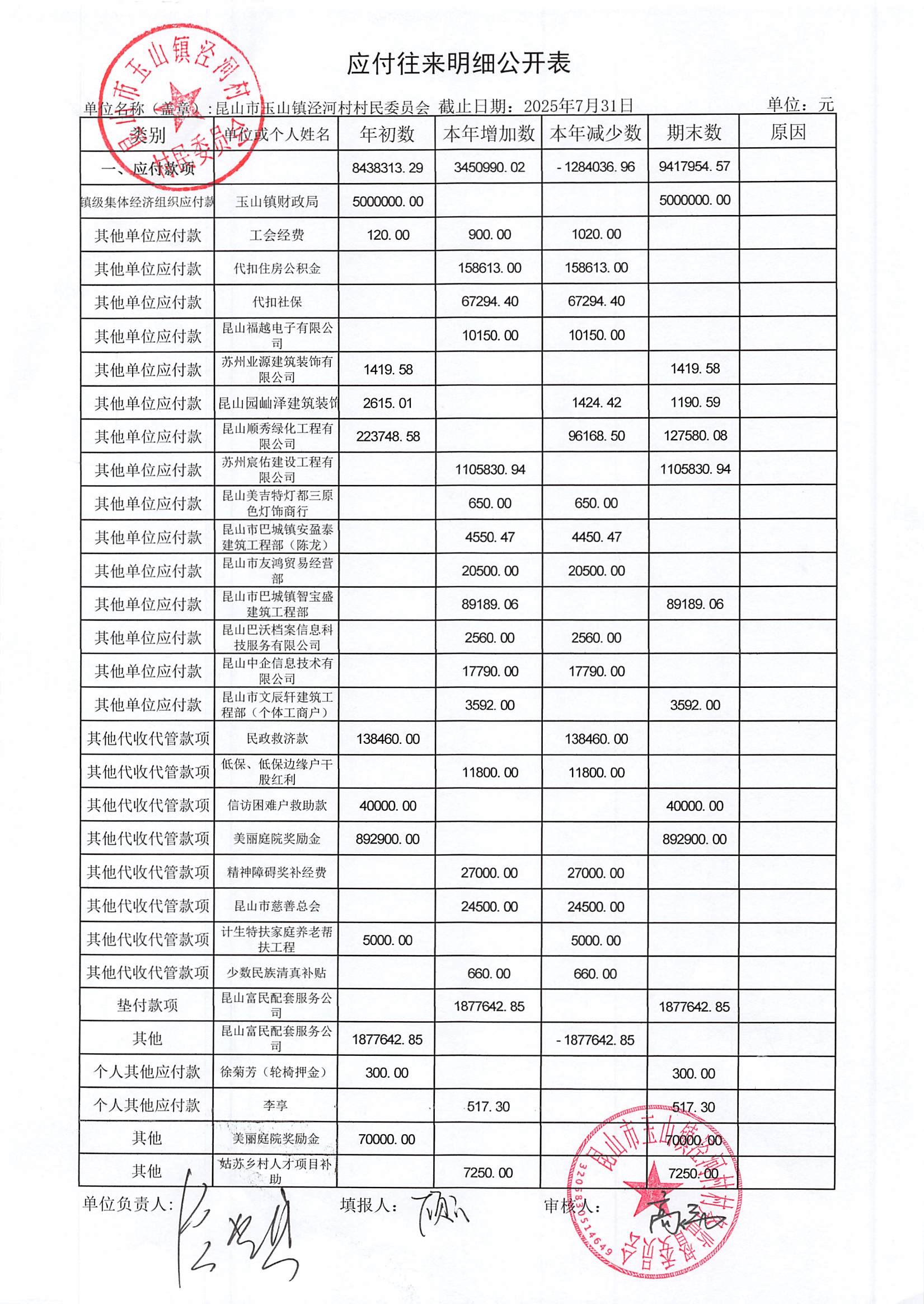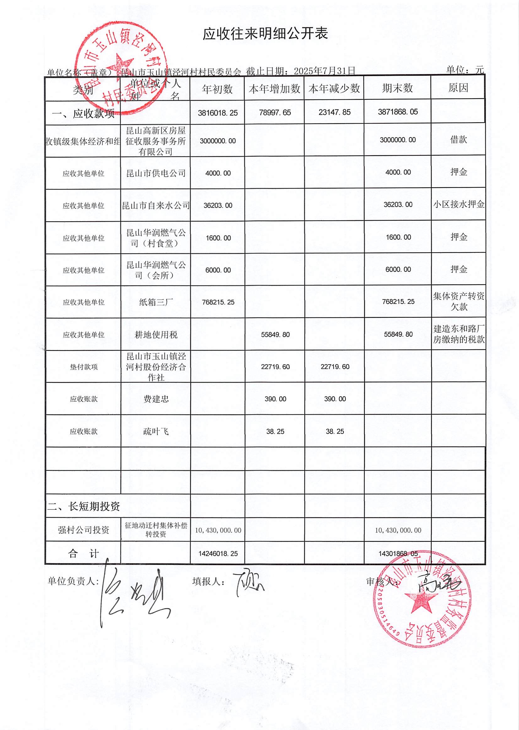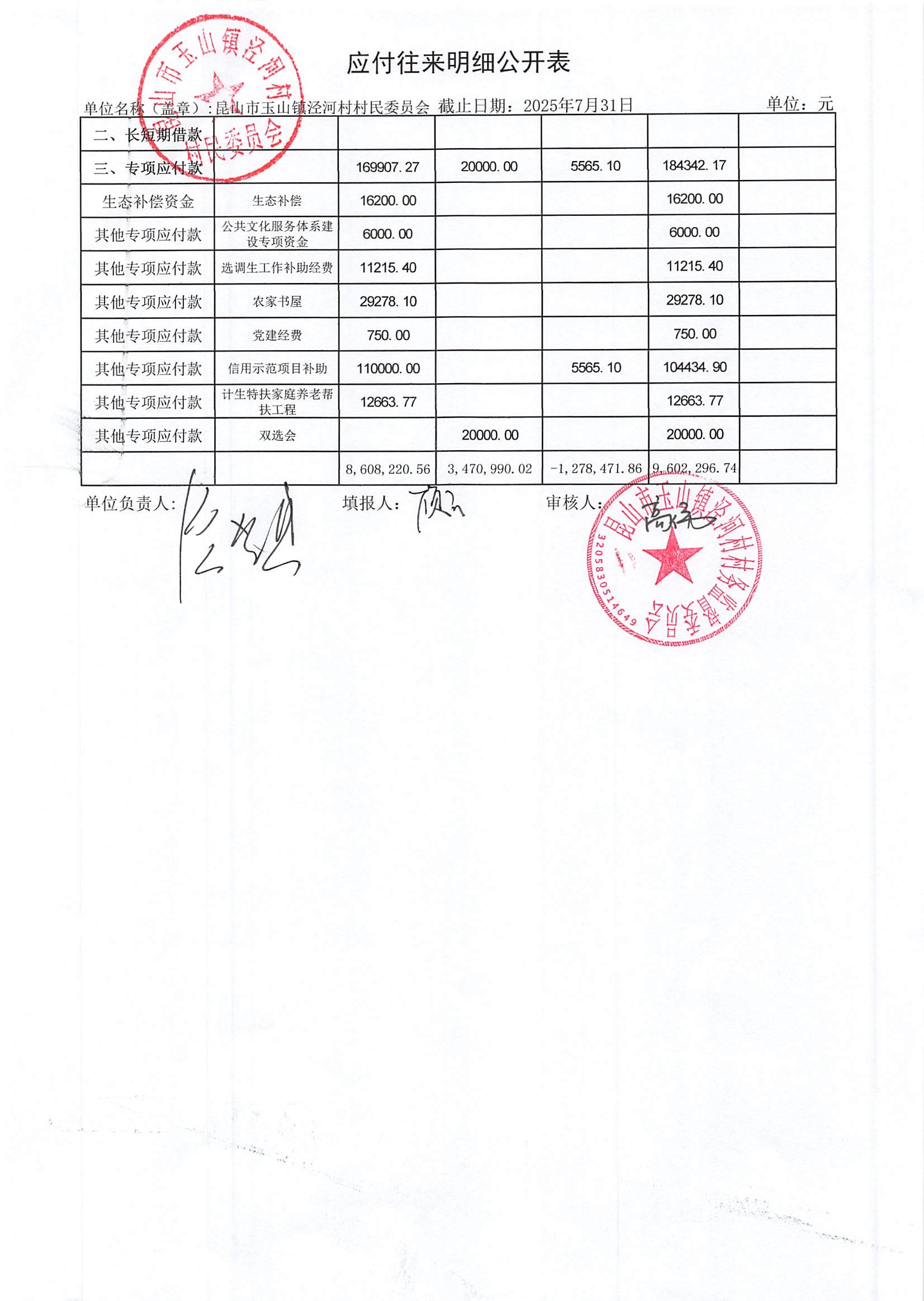 2025年八月份涇河村財(cái)務(wù)公開(村委會(huì))