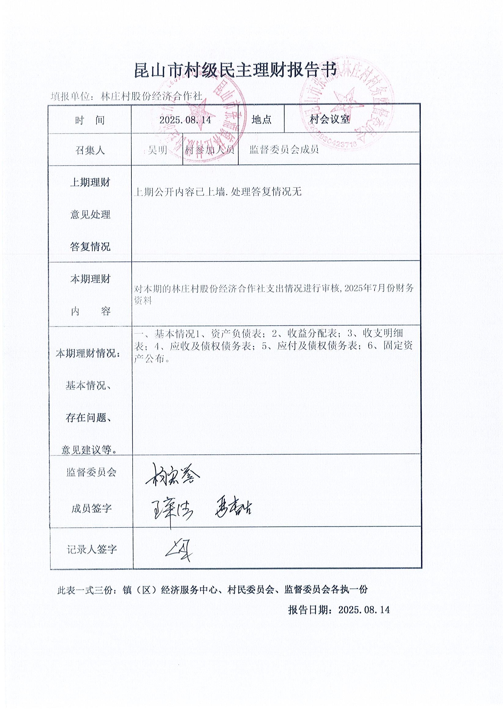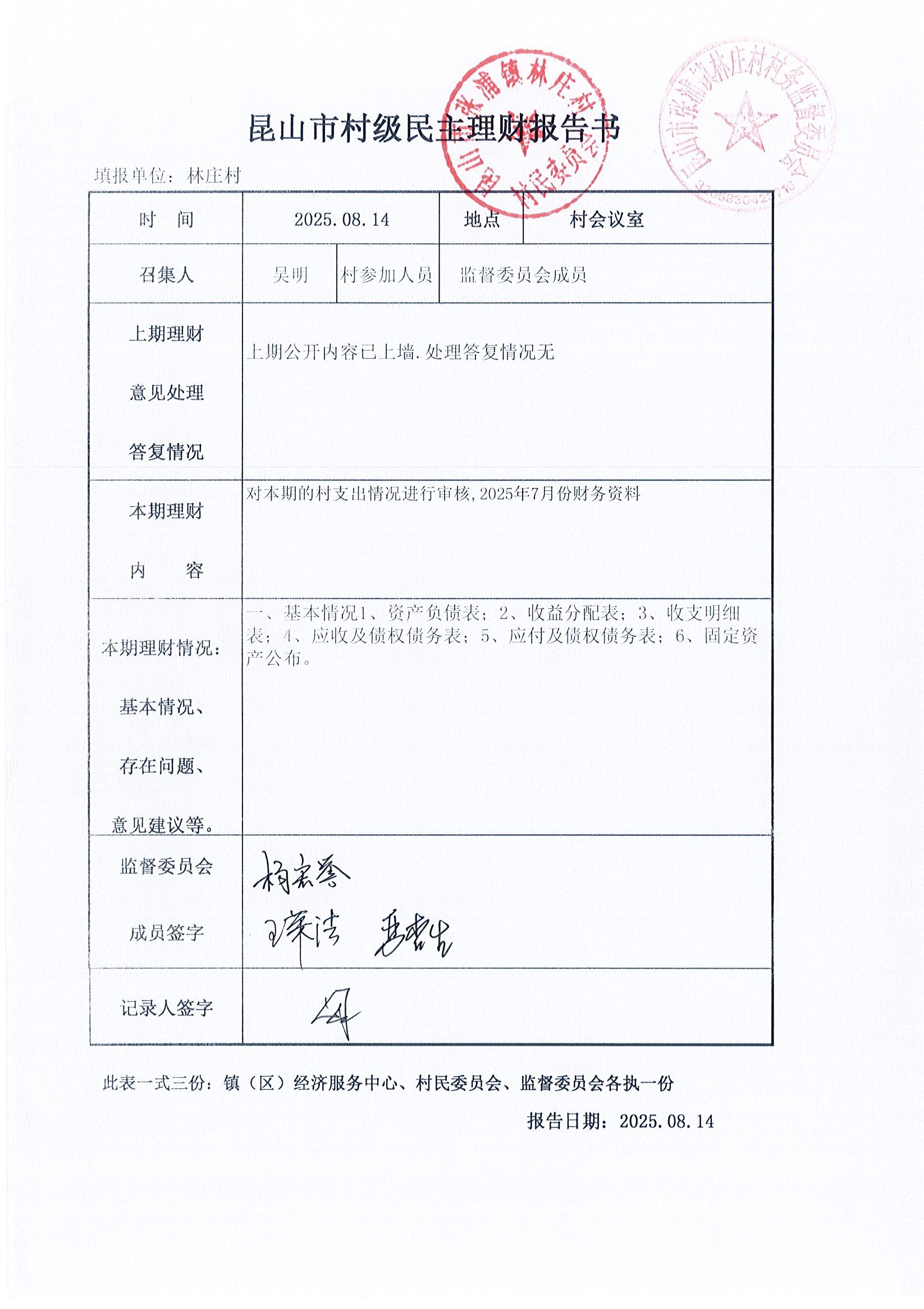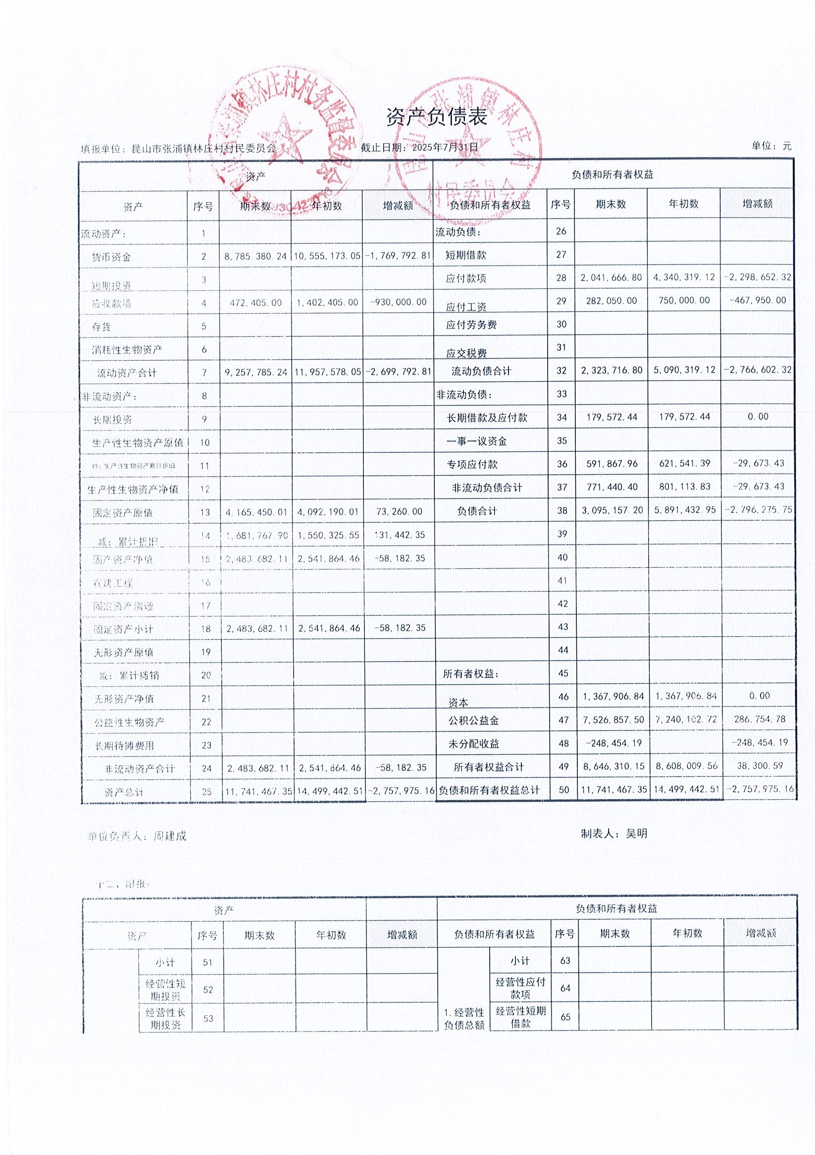 2025年林莊村及股份經(jīng)濟(jì)合作社7月財(cái)務(wù)公開