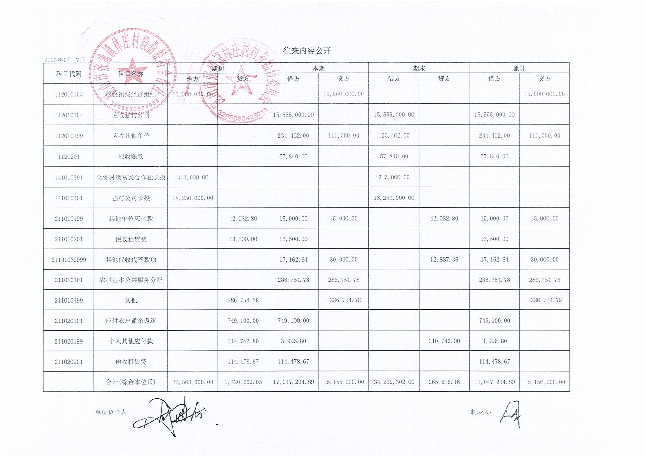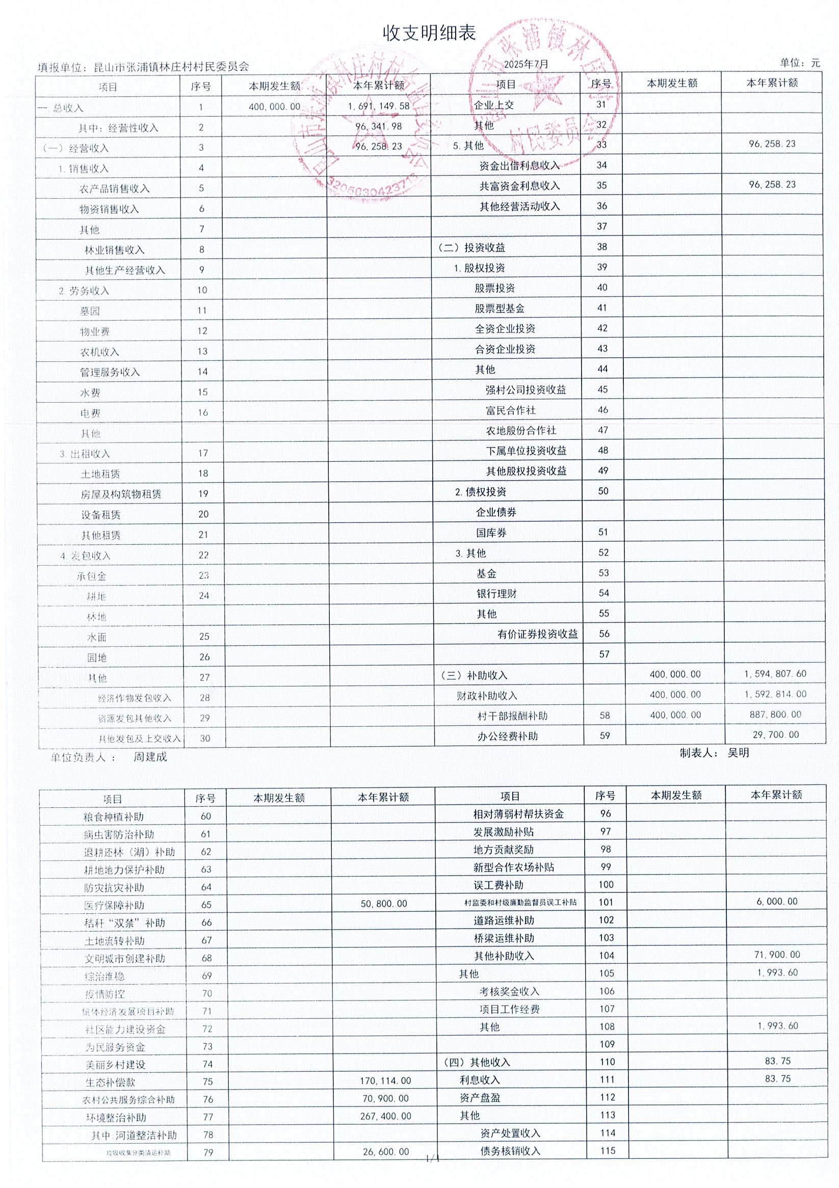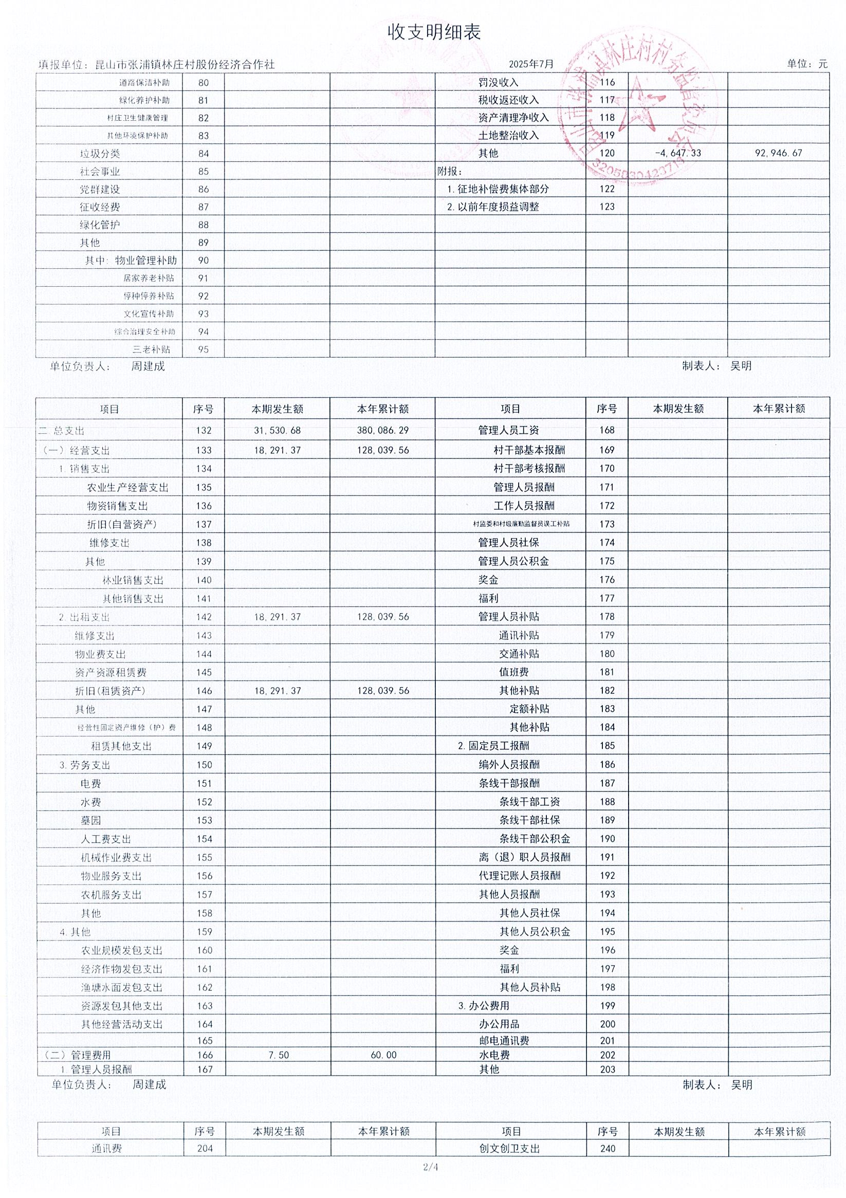 2025年林莊村及股份經(jīng)濟(jì)合作社7月財(cái)務(wù)公開