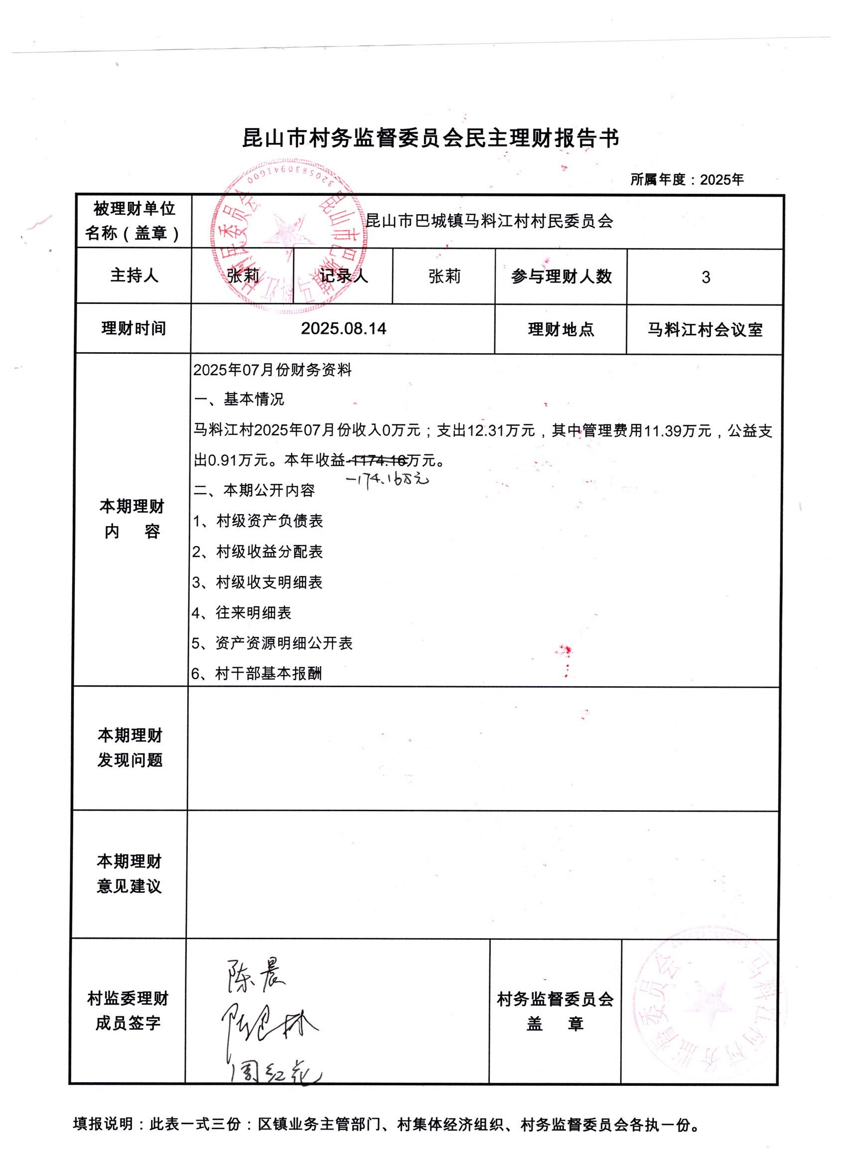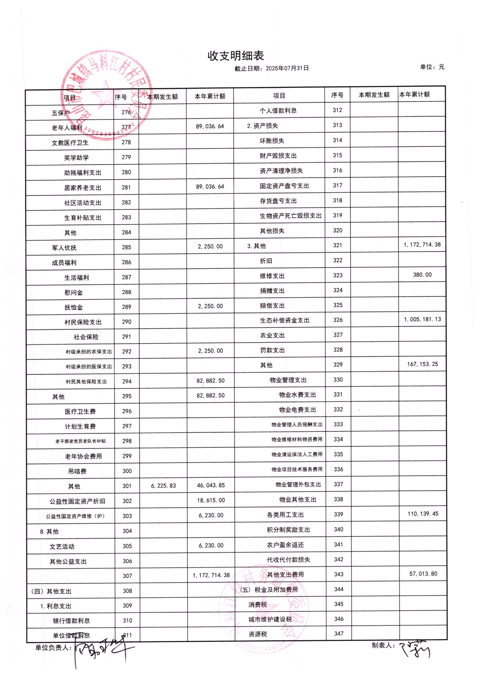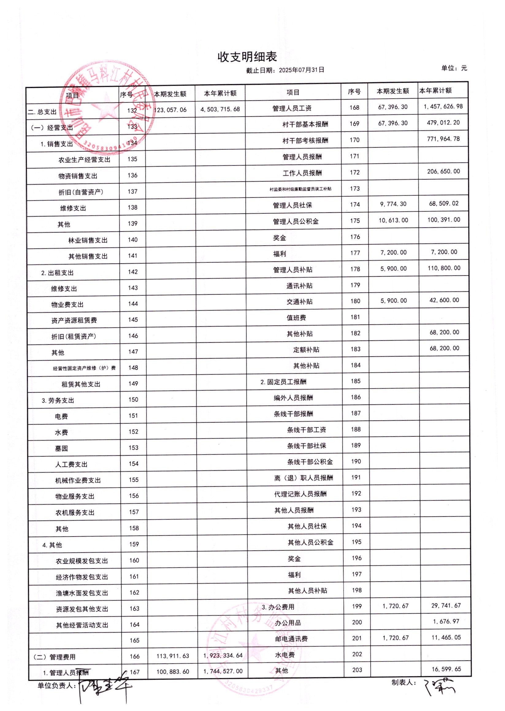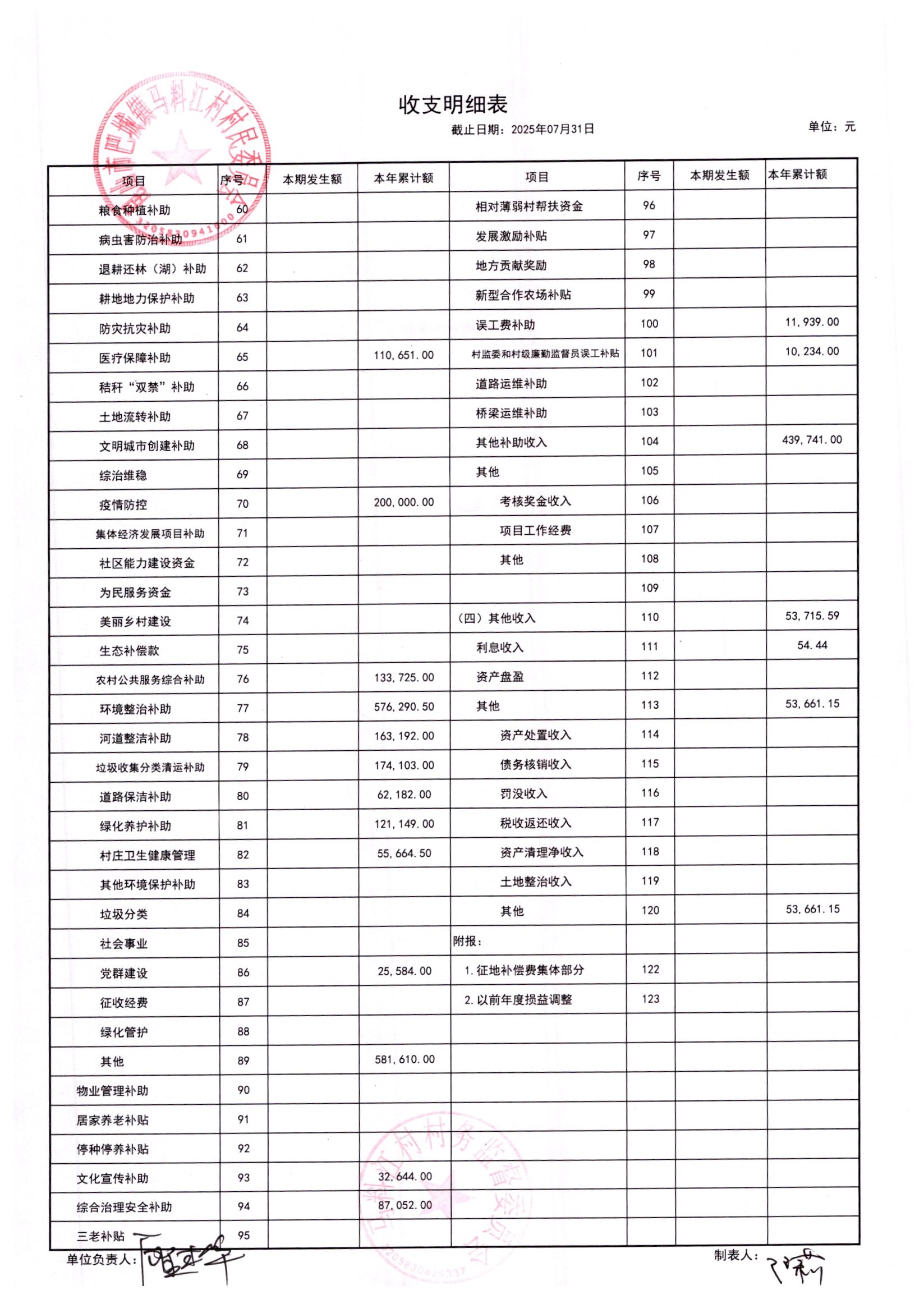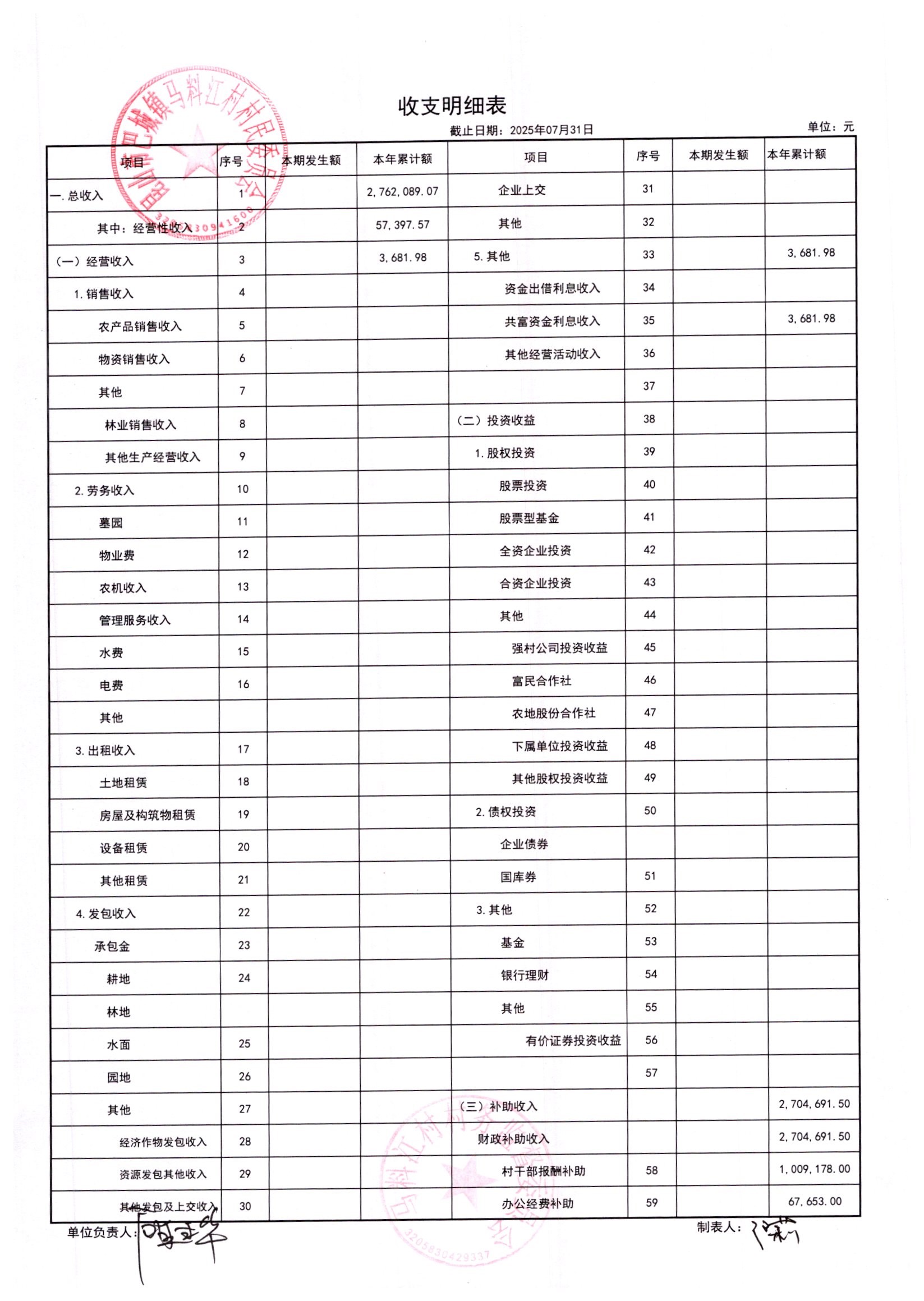 馬料江村-2025年08月份財(cái)務(wù)公開內(nèi)容