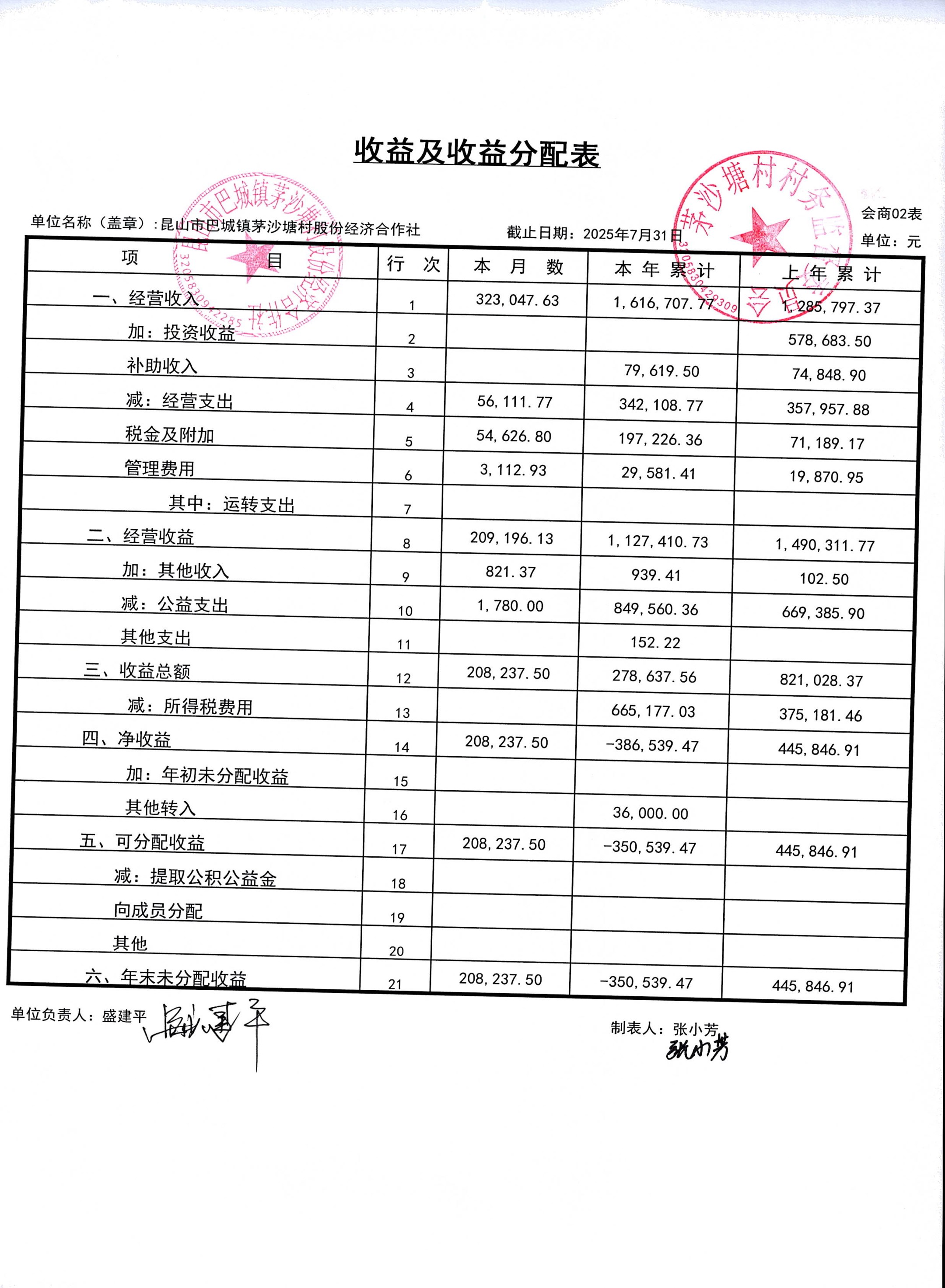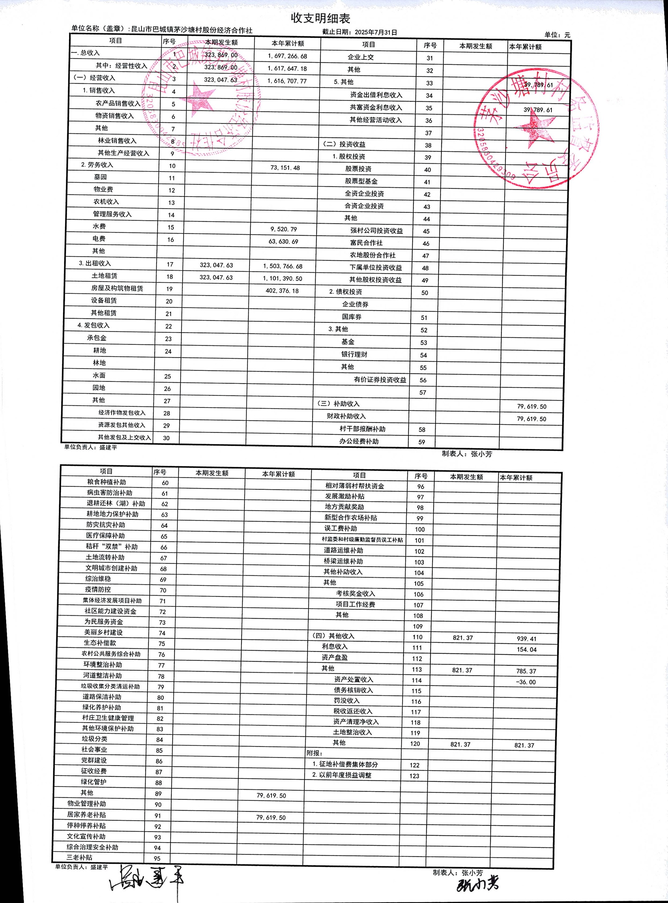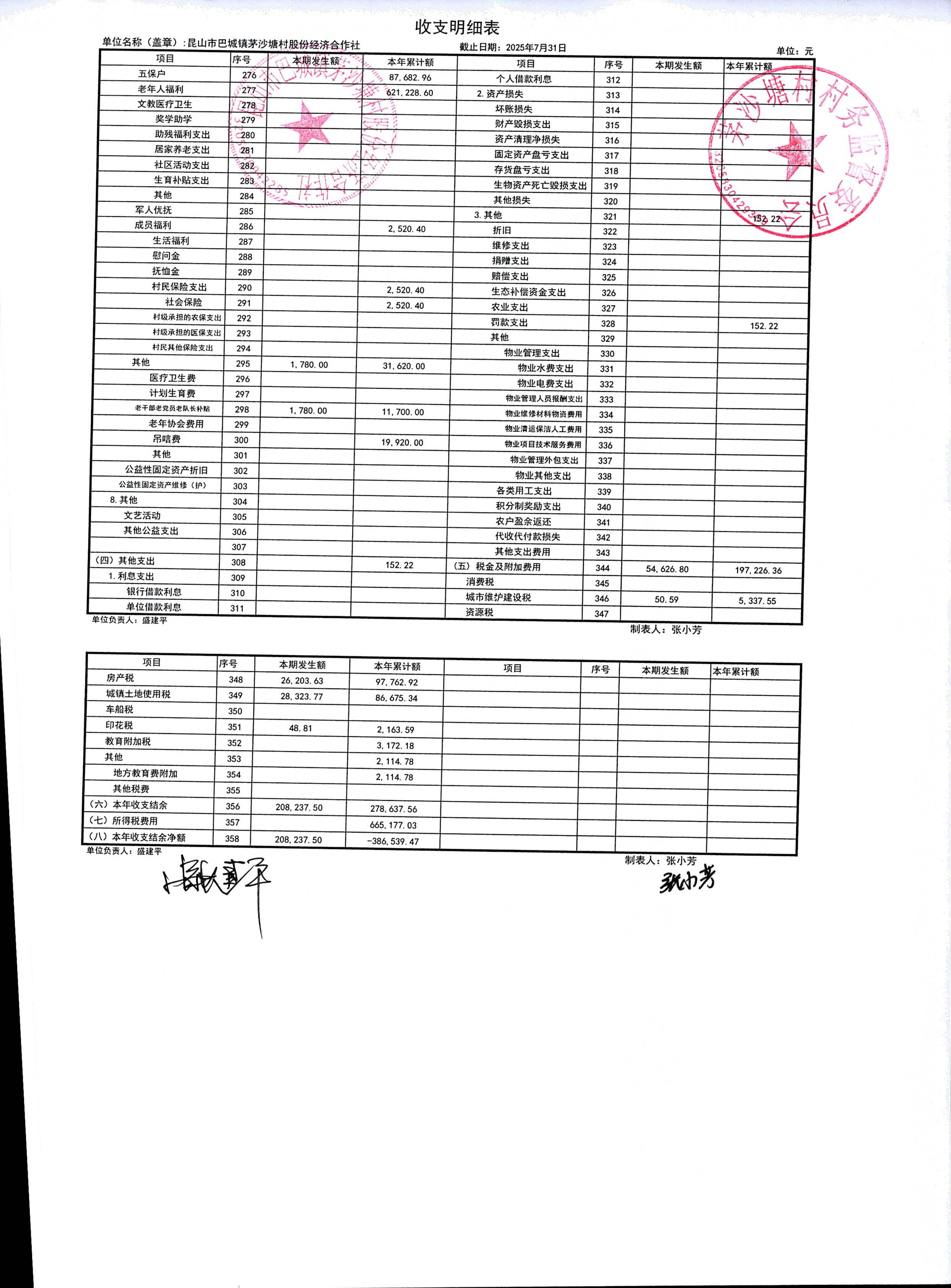 2025年8月份財務公開(股份經(jīng)濟合作社)