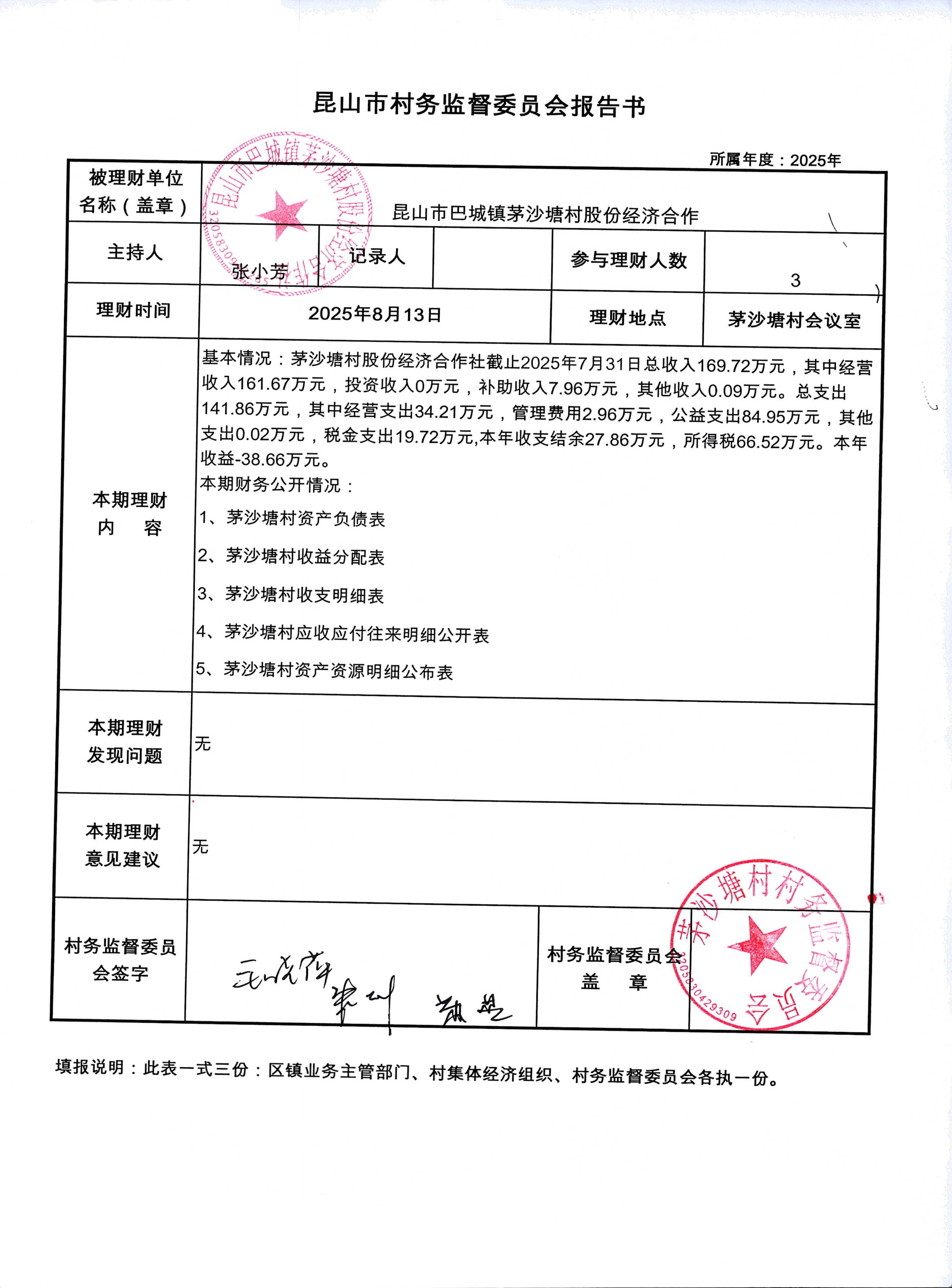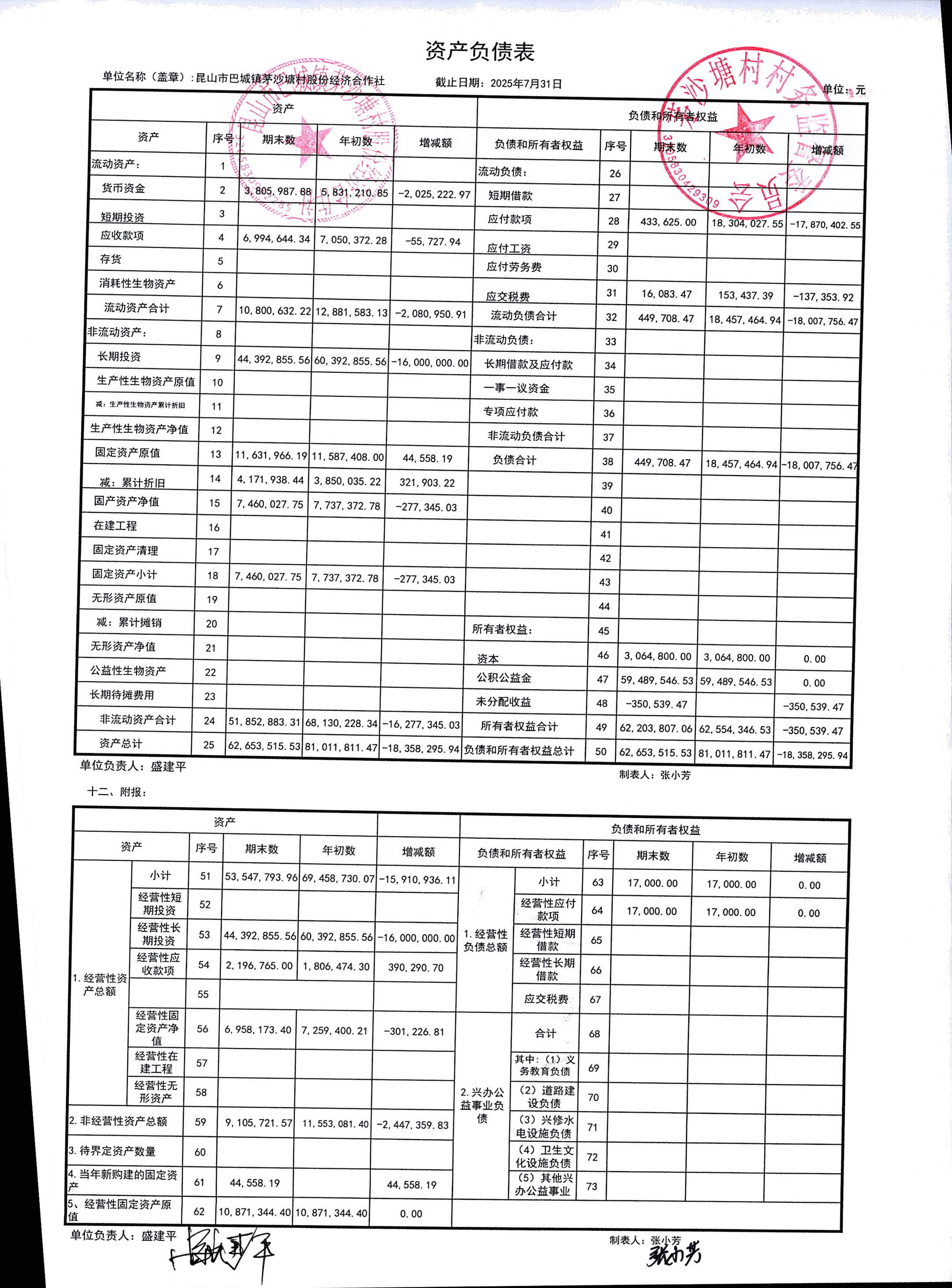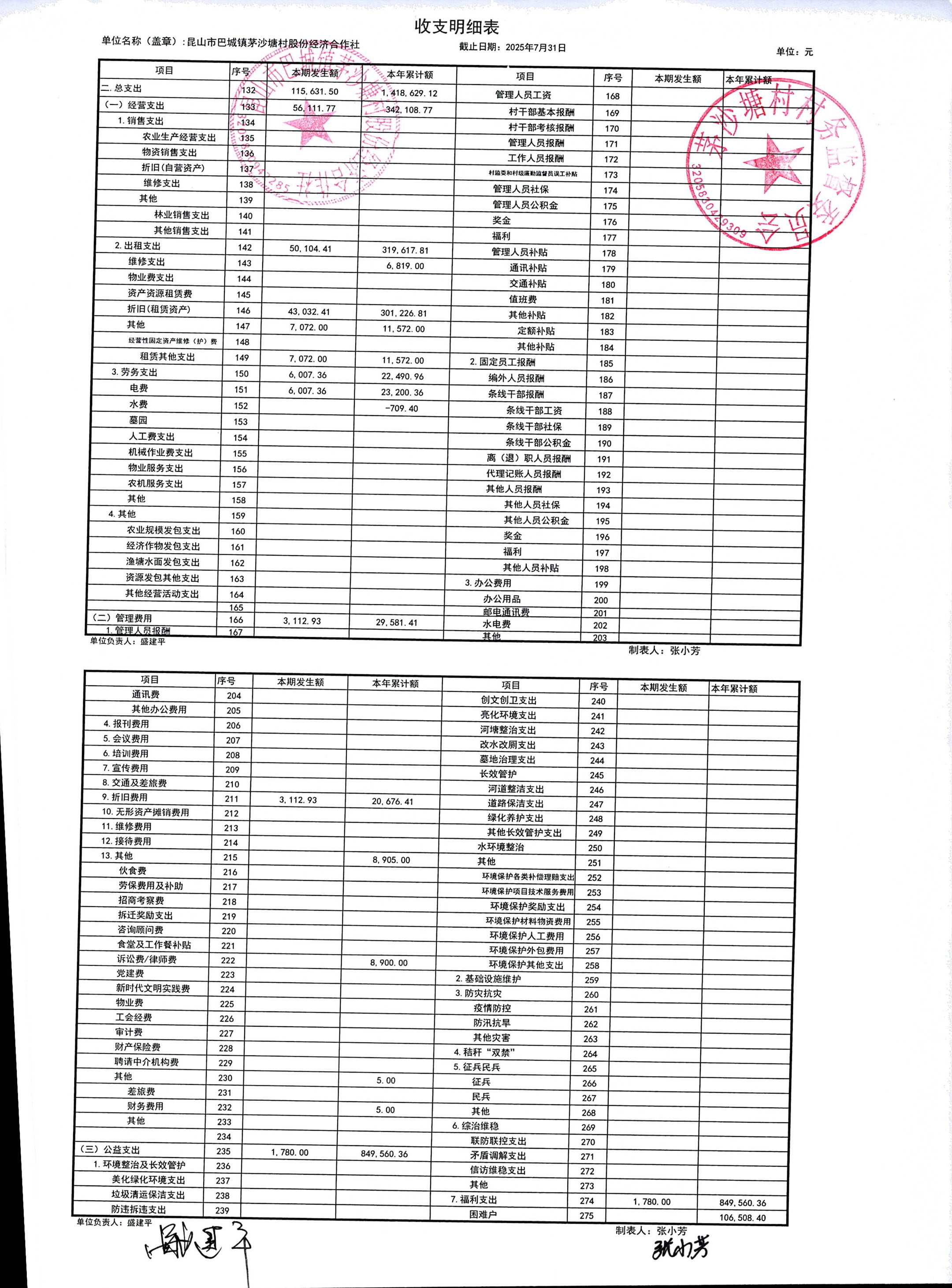2025年8月份財務公開(股份經(jīng)濟合作社)