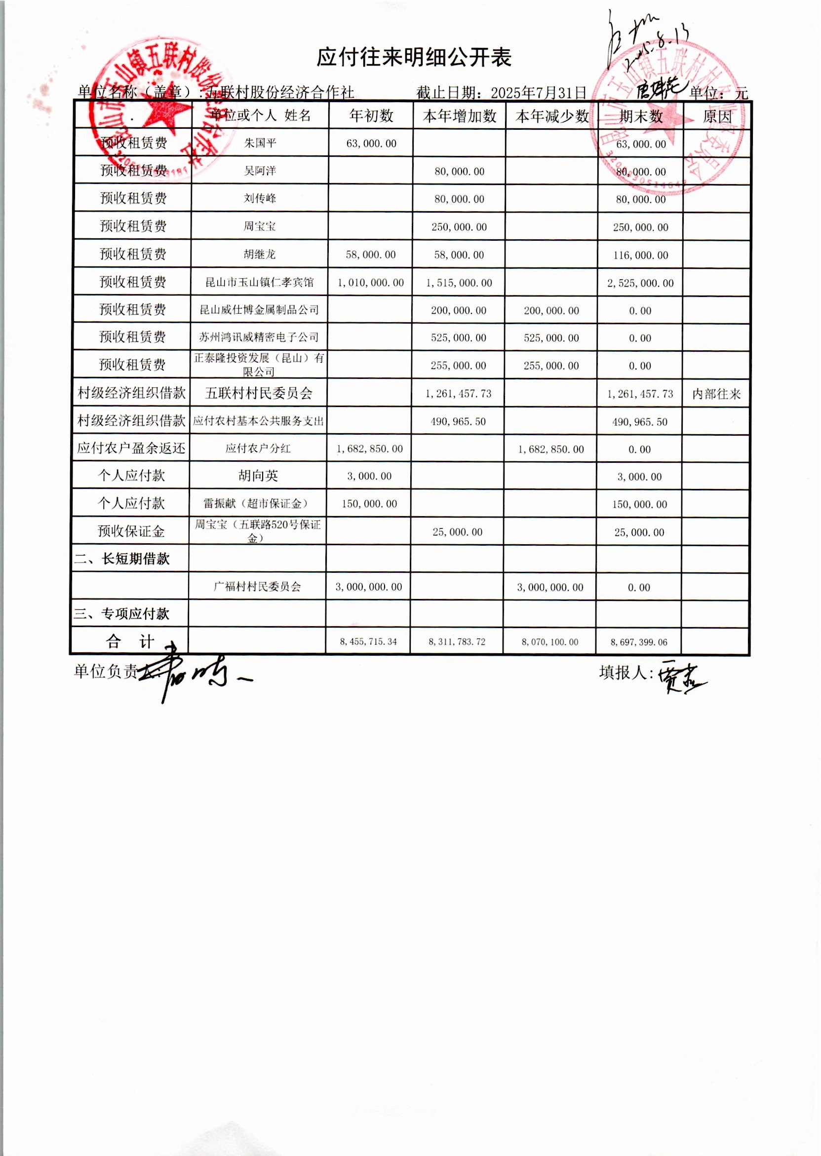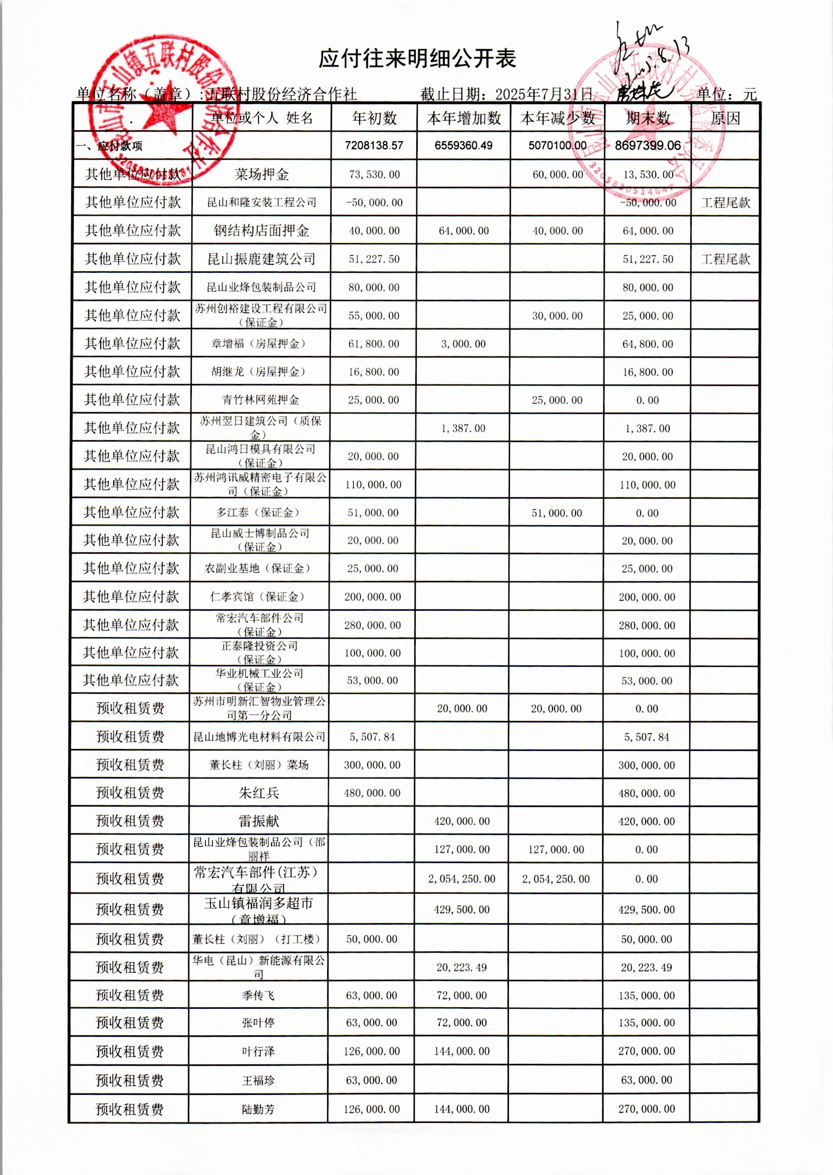 2025年8月股份經(jīng)濟(jì)合作社財(cái)務(wù)定期公開(kāi)