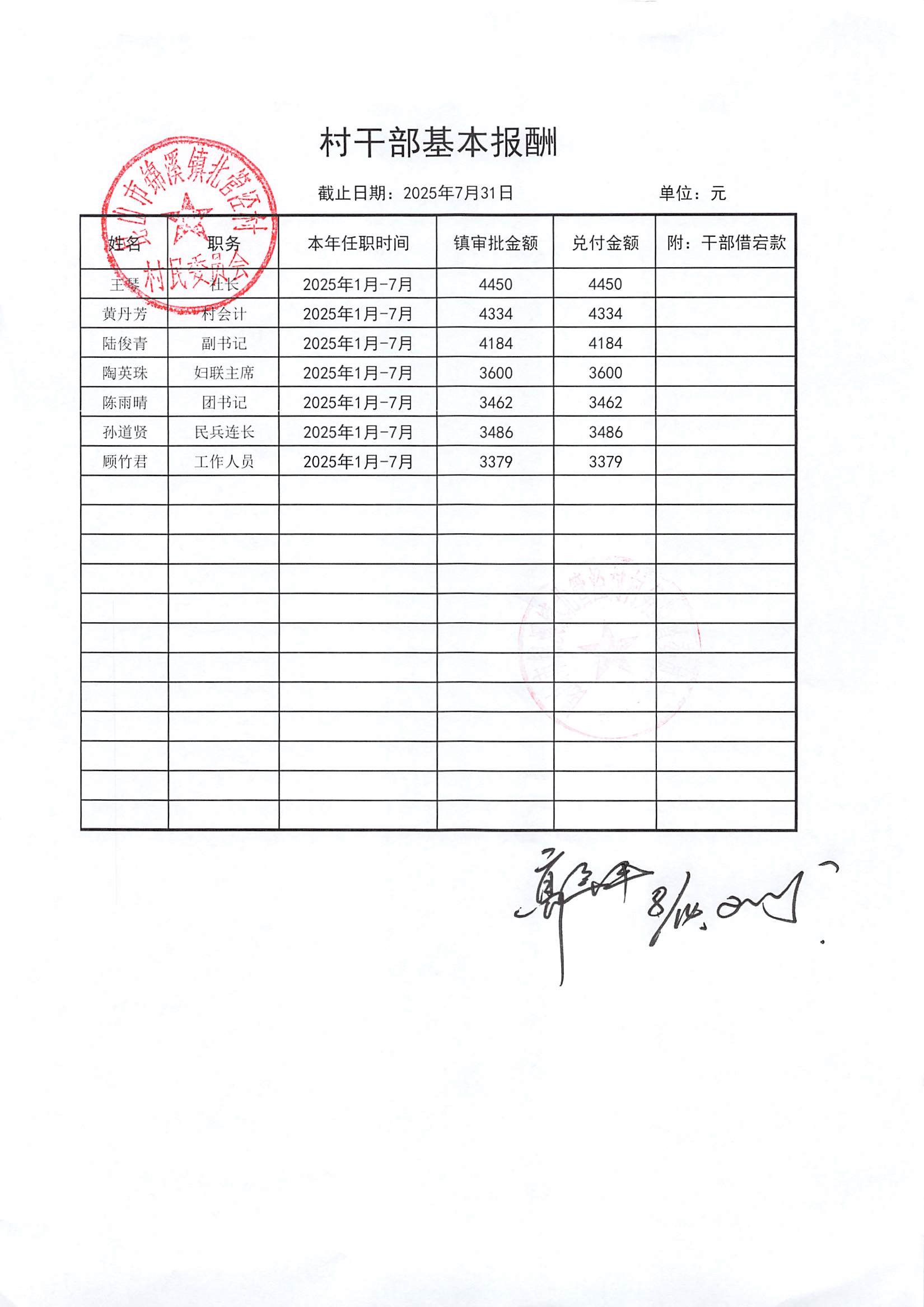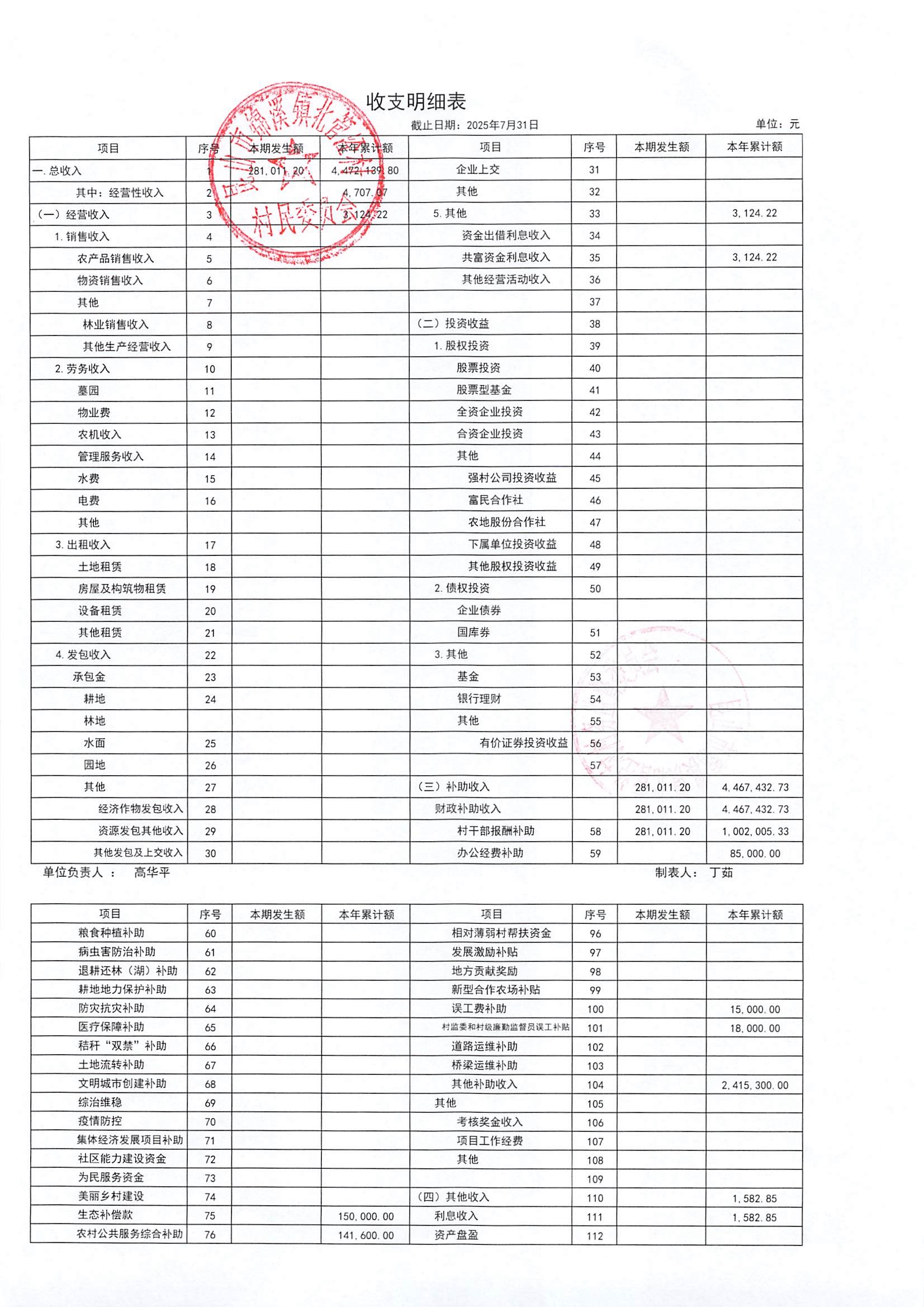 2025年7月份村委會(huì)財(cái)務(wù)公開