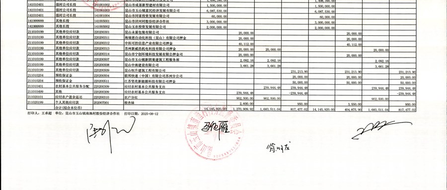 南漁村股份經(jīng)濟合作社25年8月財務(wù)公開