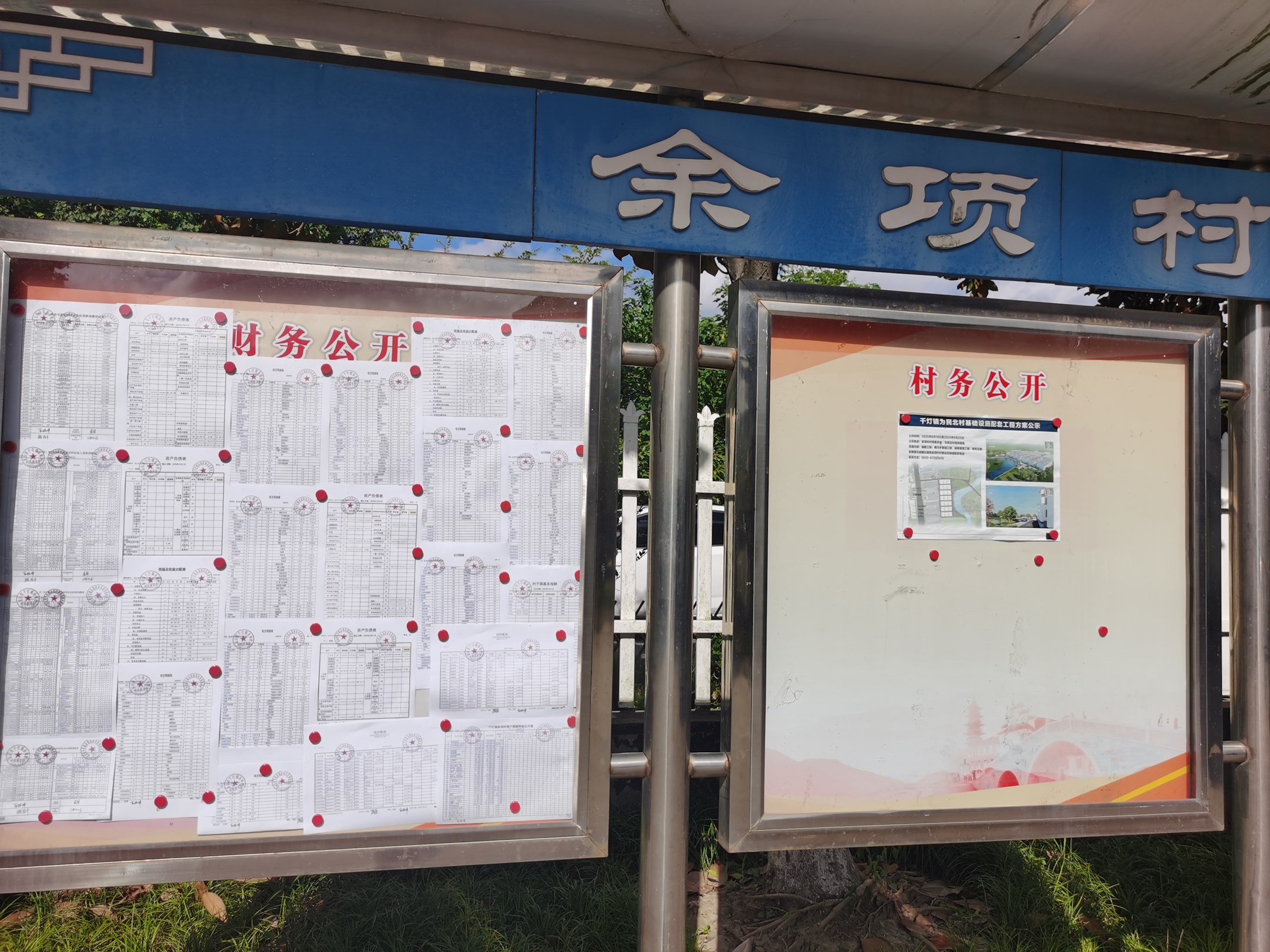 2025年7月余項(xiàng)村、股份經(jīng)濟(jì)合作社財(cái)務(wù)公開公示欄照片