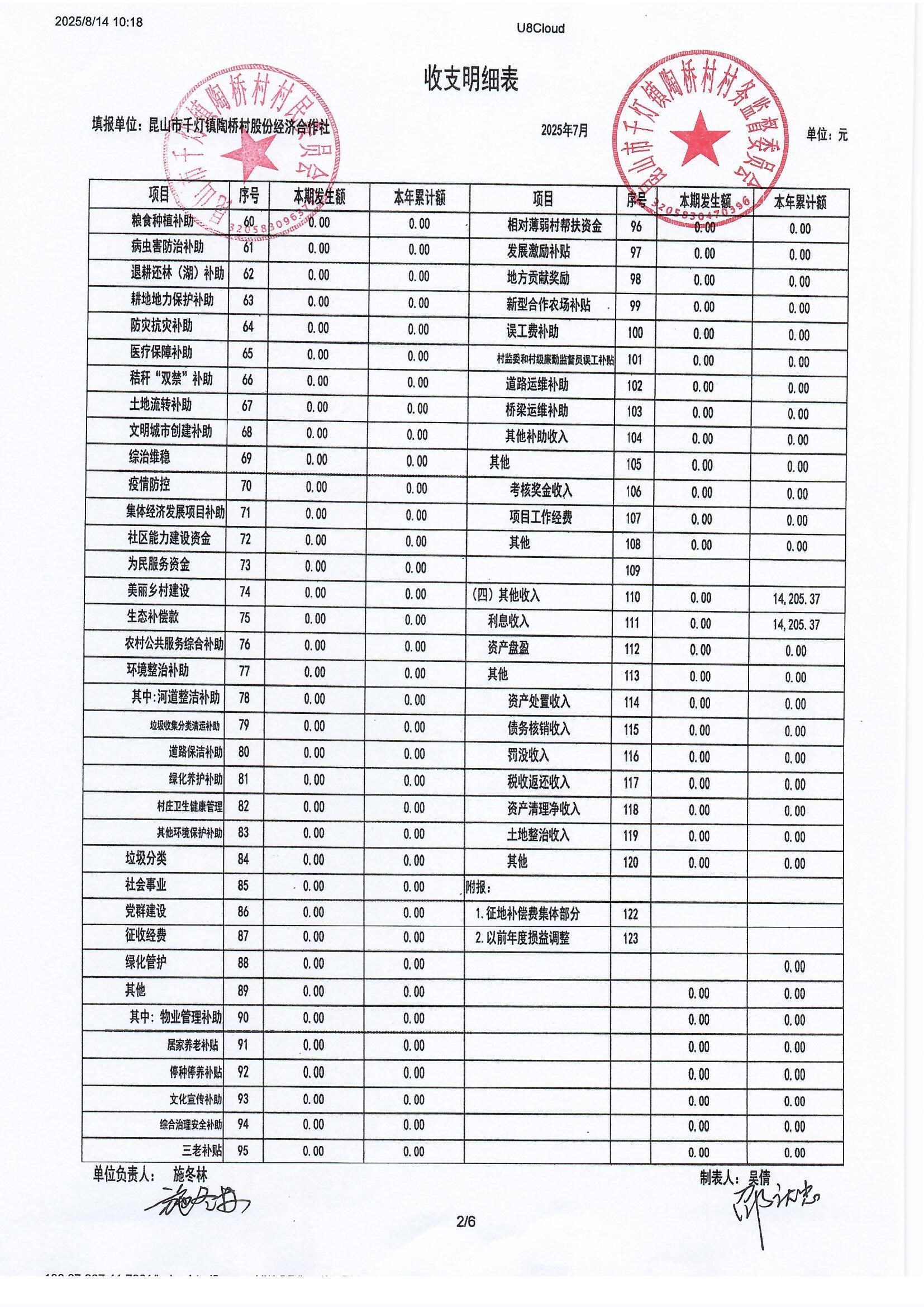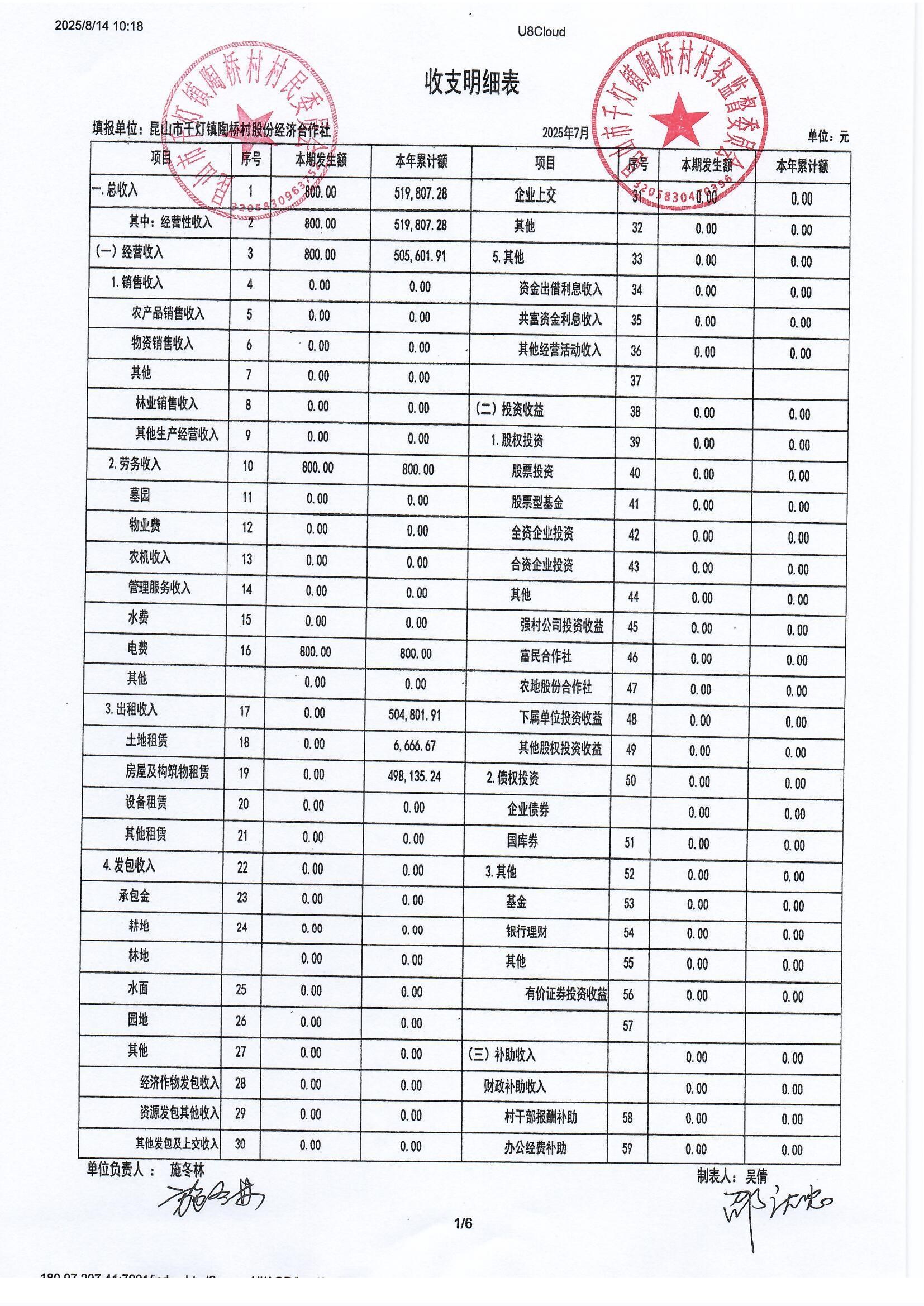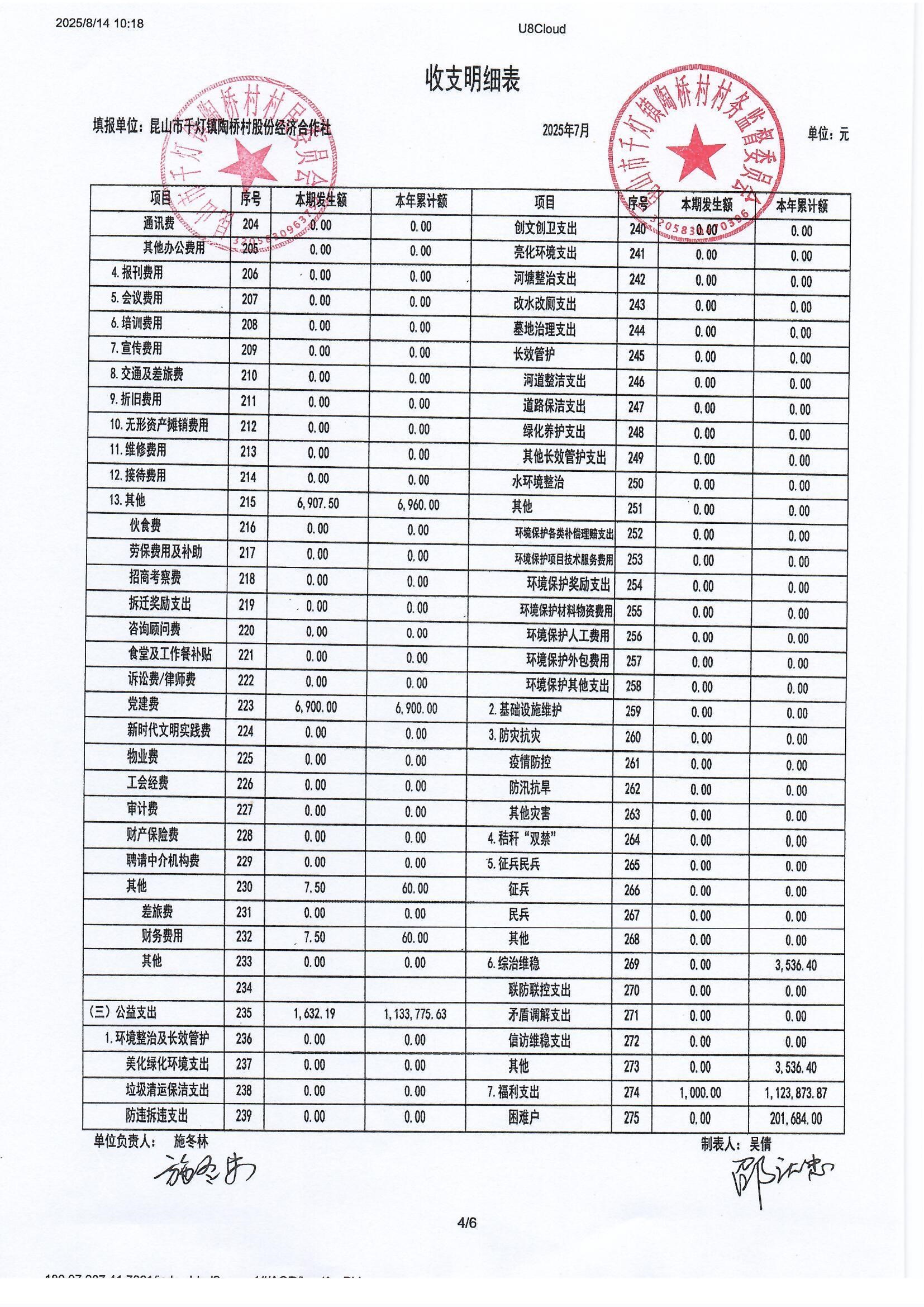 2025年7月份陶橋村股份經(jīng)濟(jì)合作社財(cái)務(wù)公開(kāi)內(nèi)容: