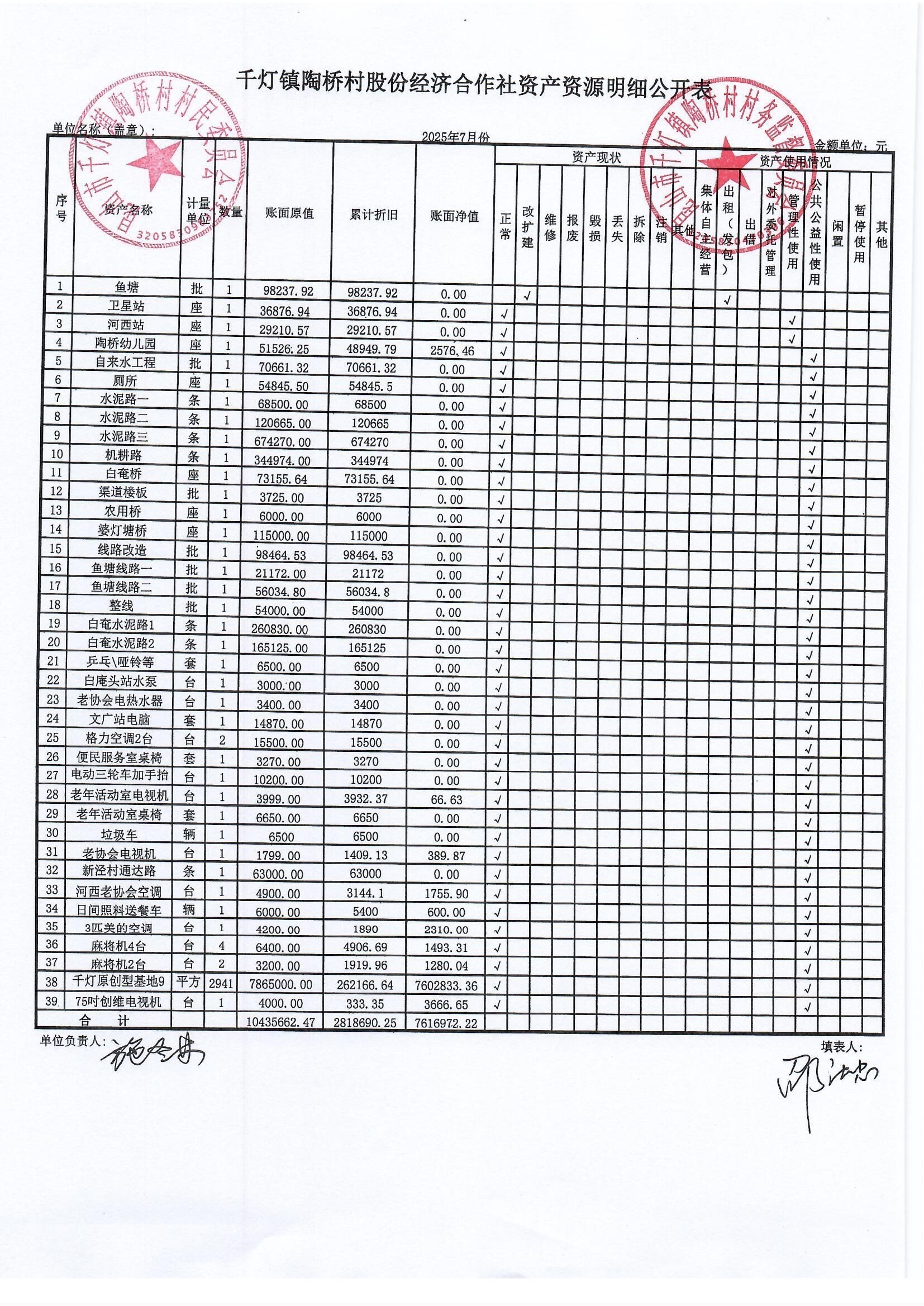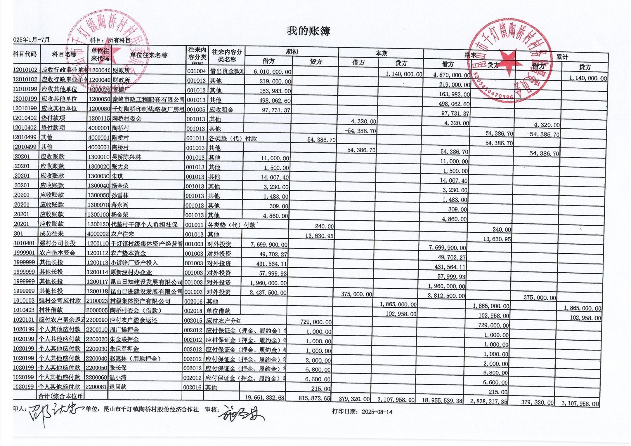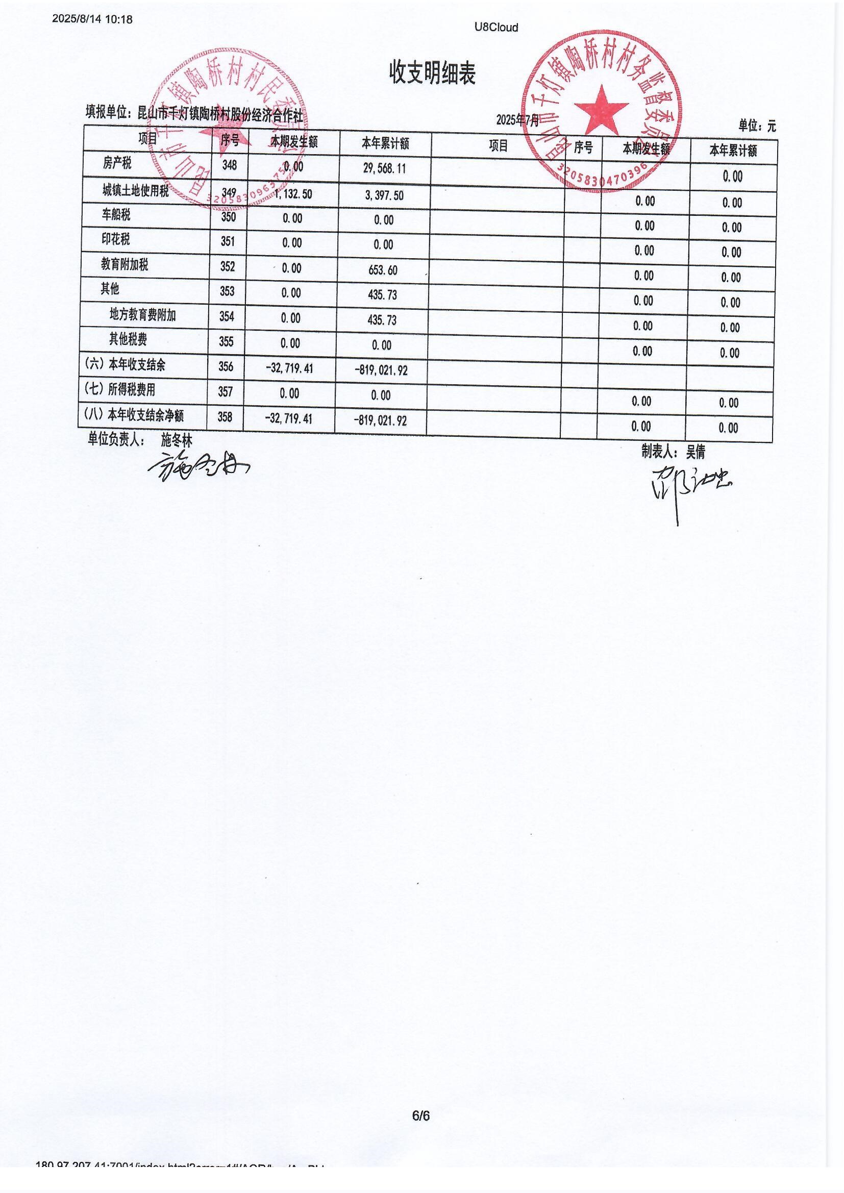 2025年7月份陶橋村股份經(jīng)濟(jì)合作社財(cái)務(wù)公開(kāi)內(nèi)容: