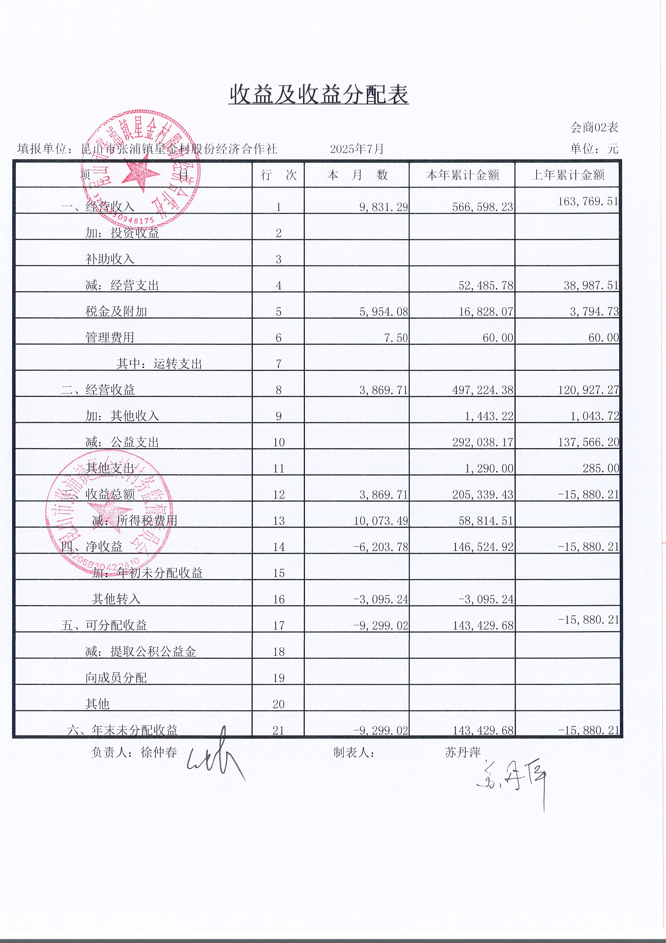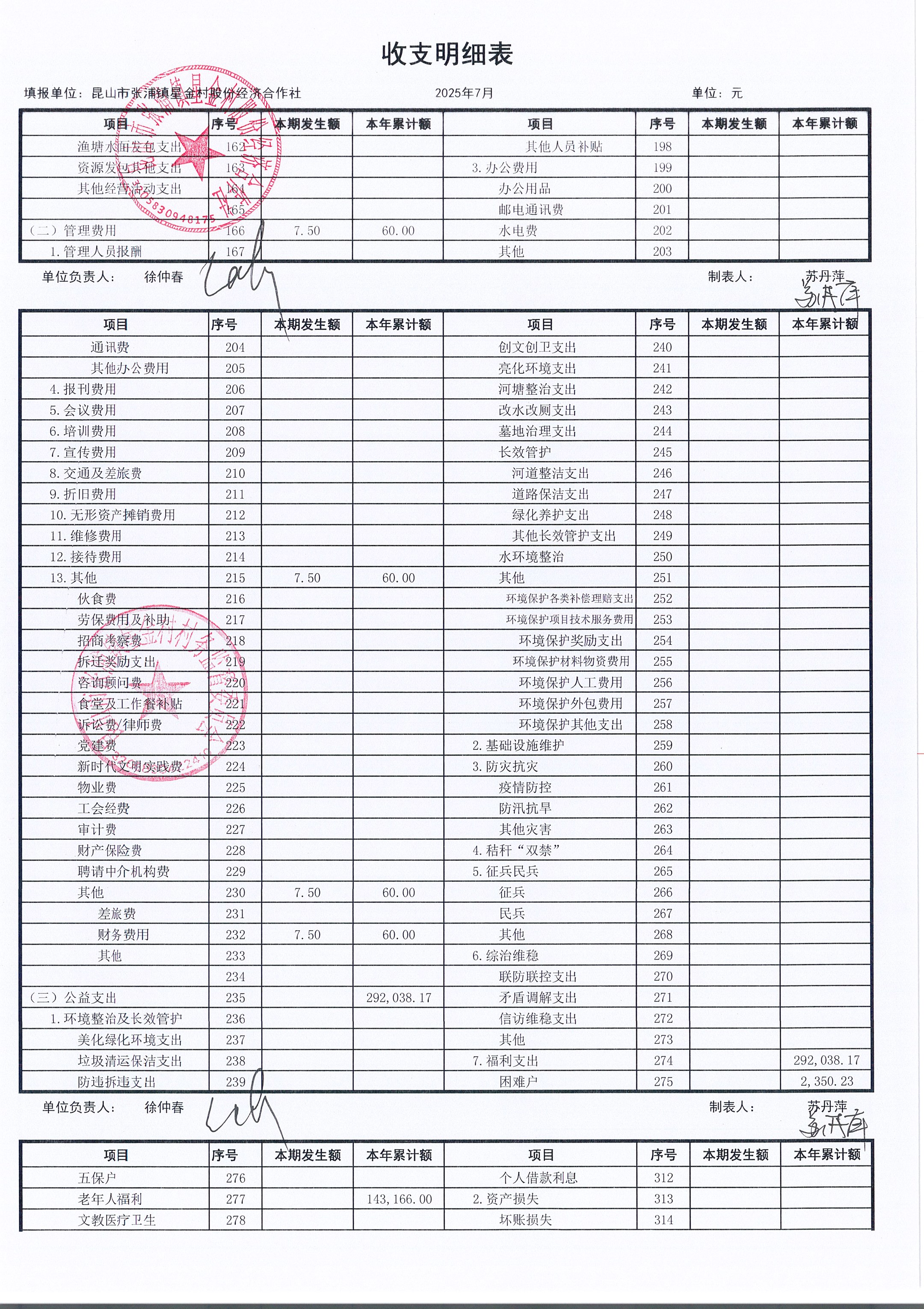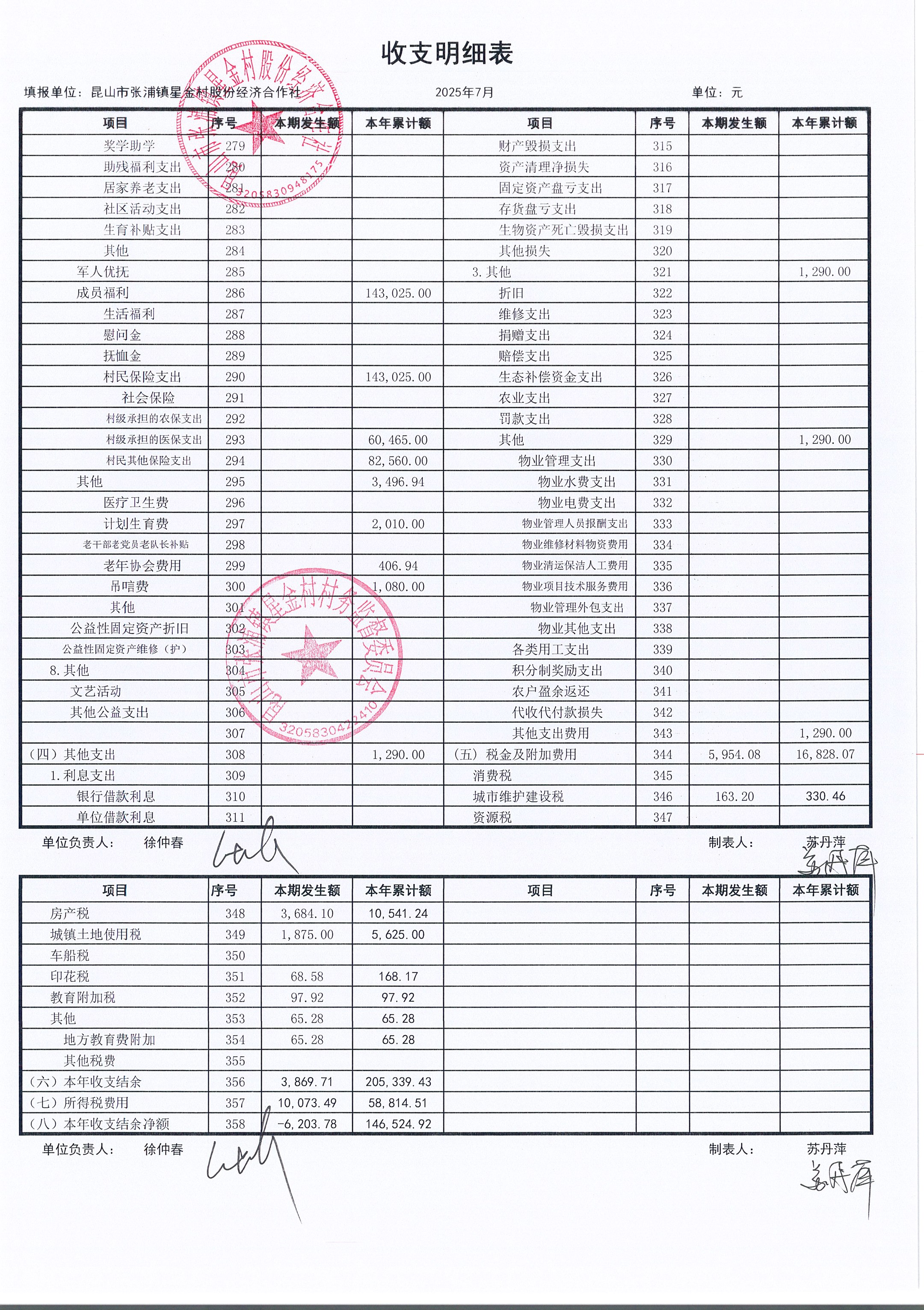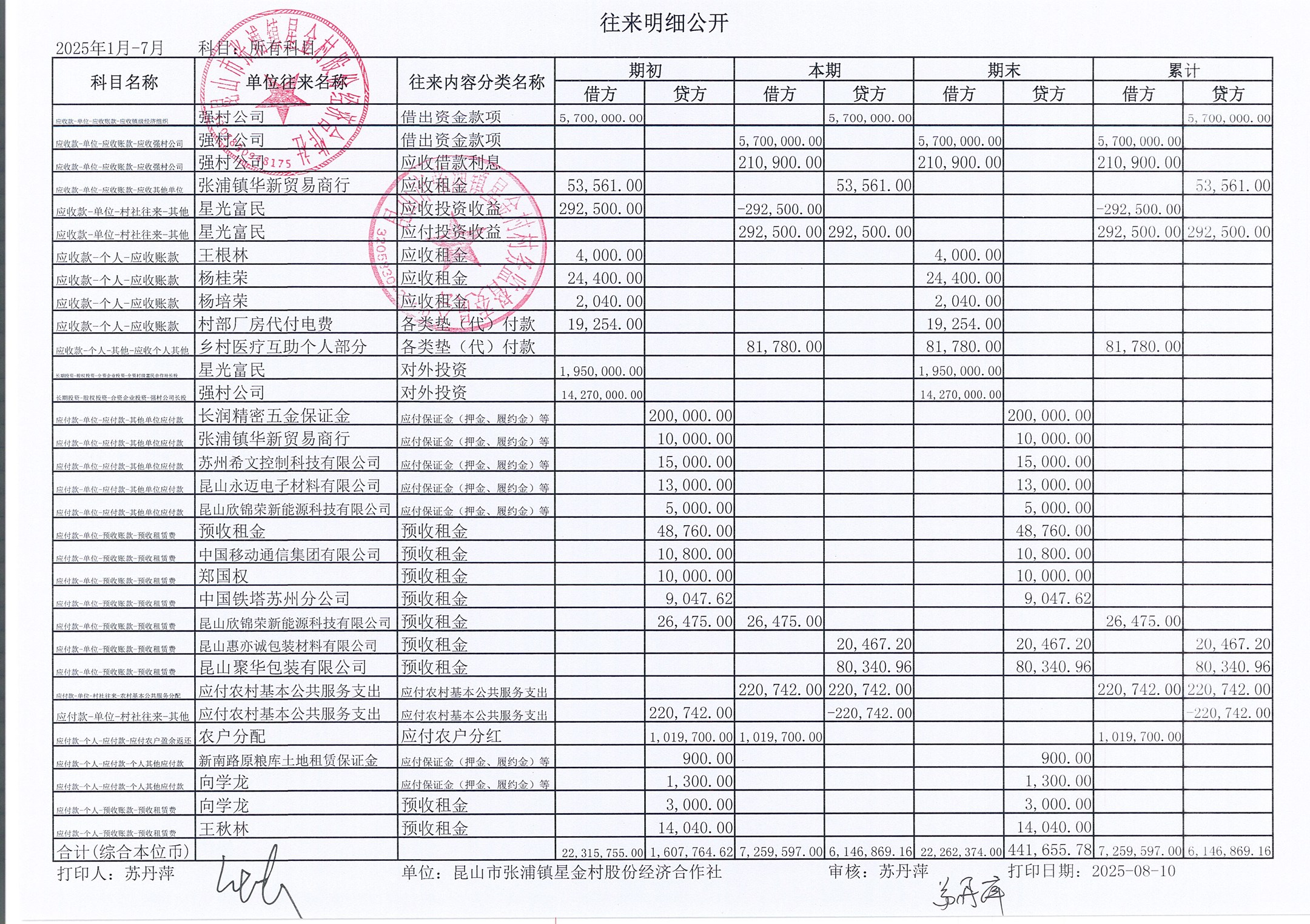 星金村股份經(jīng)濟(jì)合作社2025年07月財(cái)務(wù)公開(kāi)